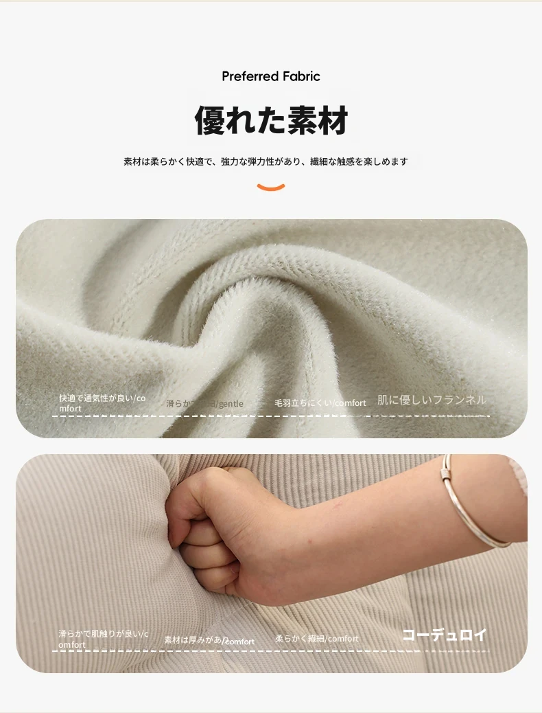 アイボリー【柔らかい密織コーデュロイ-360°スムーズ回転-しわに強く摩耗に耐え、毛玉ができにくい】
