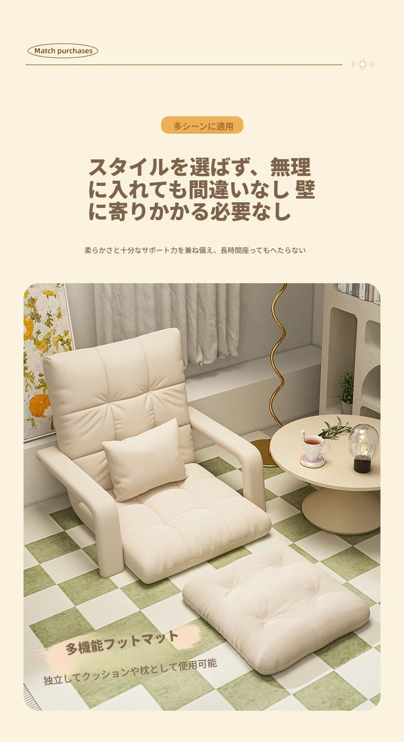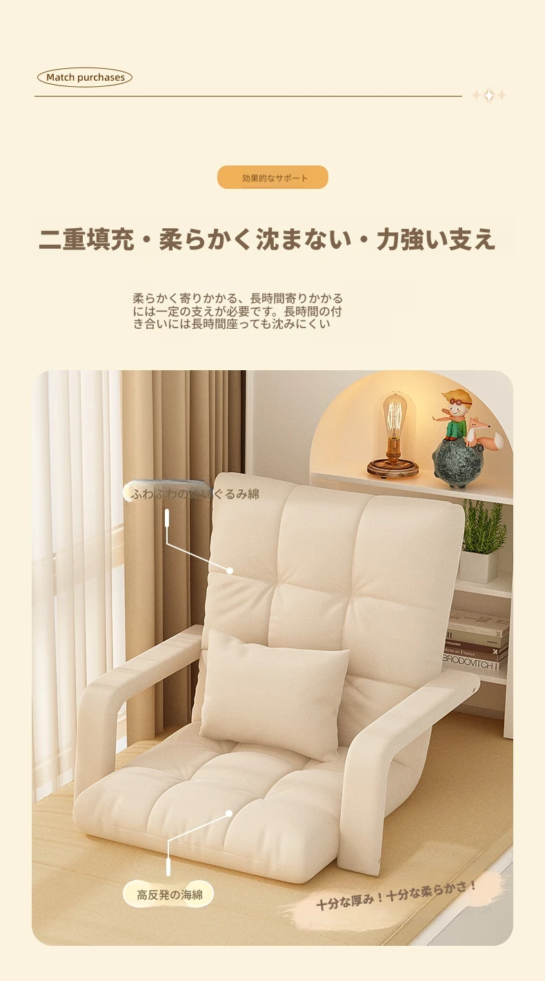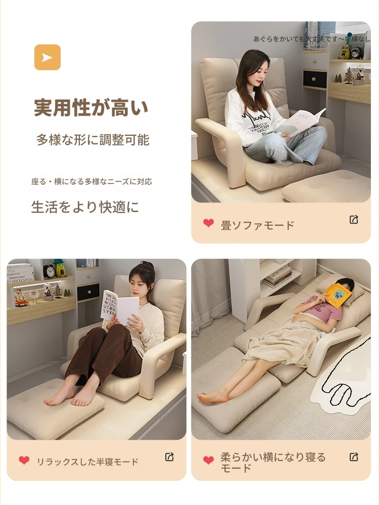 窓辺のリラックスソファ【折りたたみ式・タタミ用】寝ても座ってもOK!背もたれ付きで快適、寮や一人暮らしに最適なマルチシート!