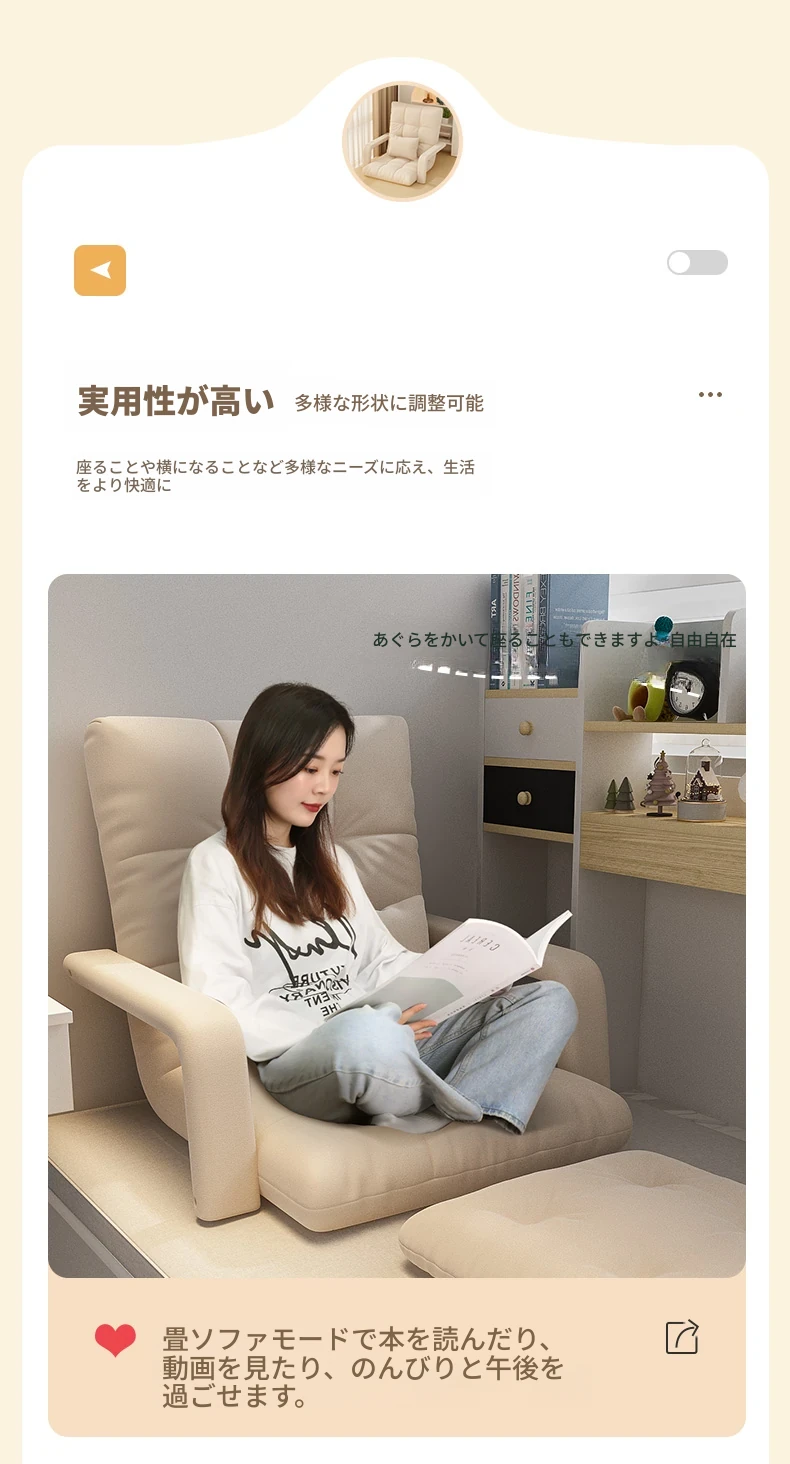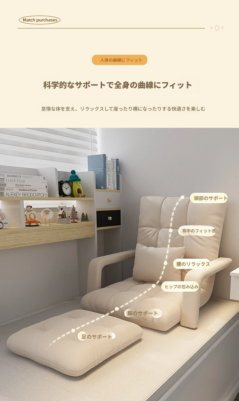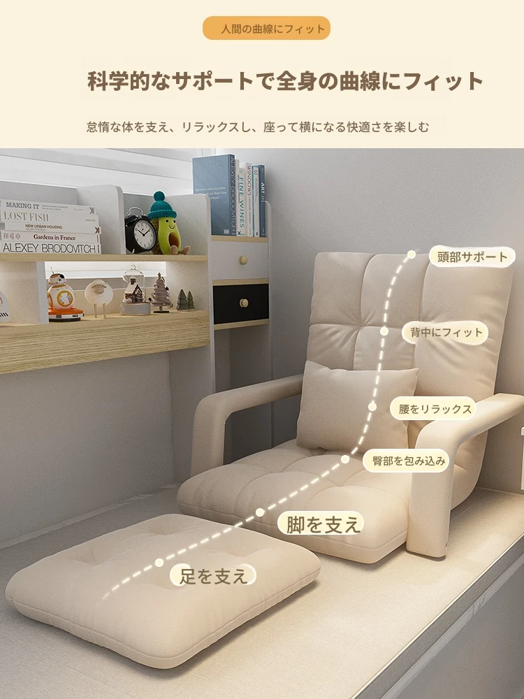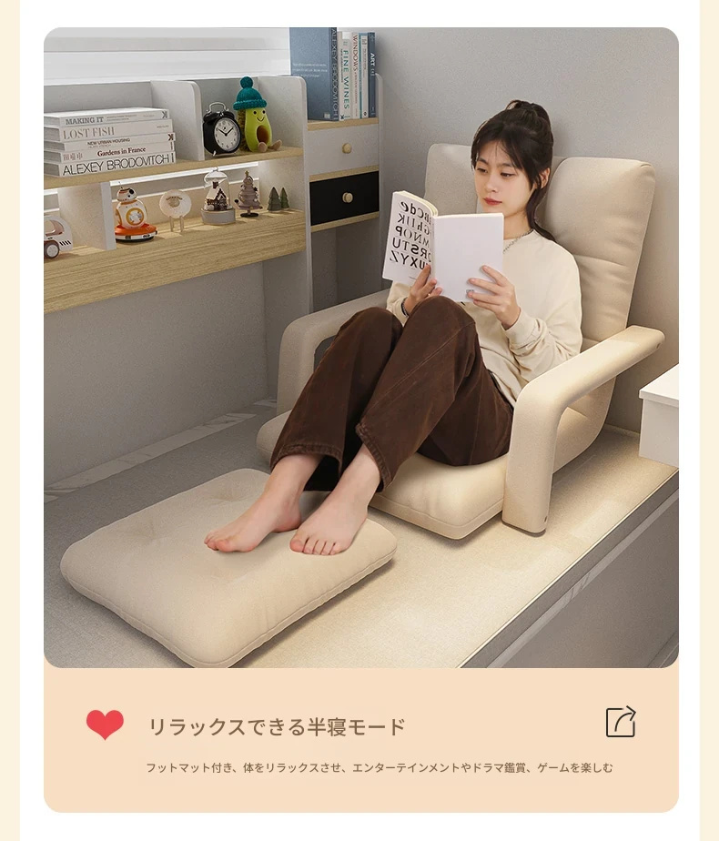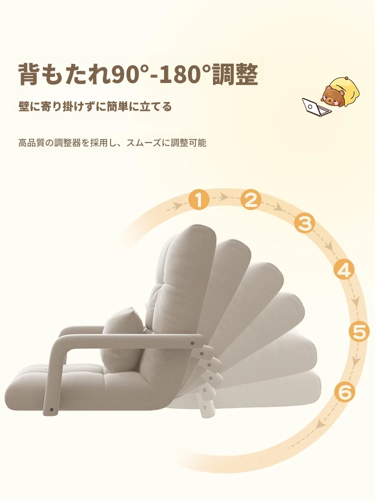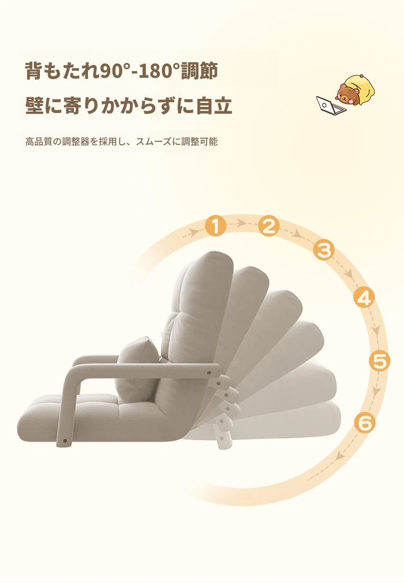 メイン画像同款✔アイボリー-6段調整-寝ることも座ることも可