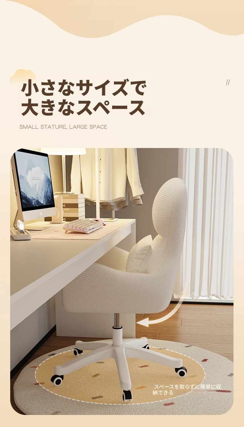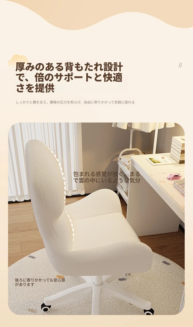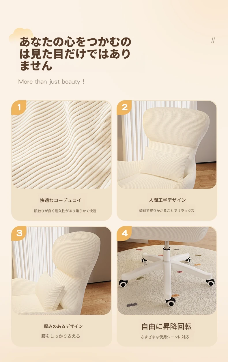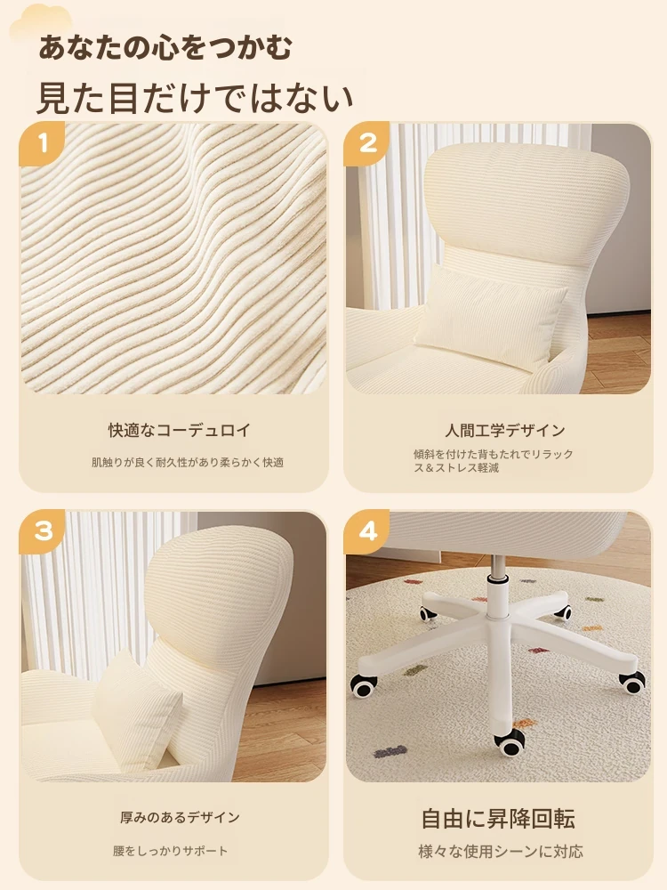 クリーミーなメイクアップチェア - 自宅で快適に長時間座れる、移動も簡単な昇降式チェア。女性の寝室やドレッサーにぴったりなネット人気のリクライニングチェア!