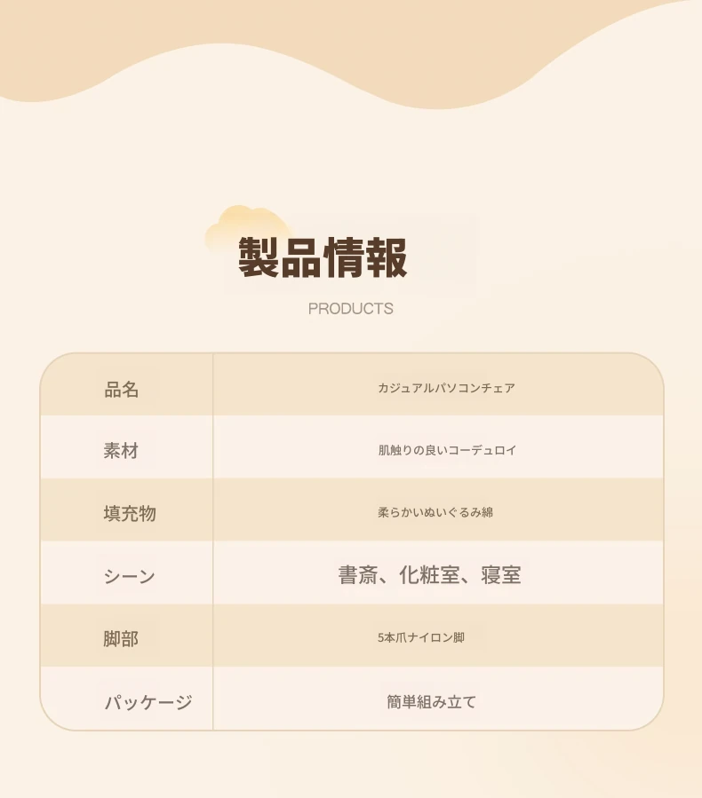 昇降調節可能|肌触りの良いコーデュロイ