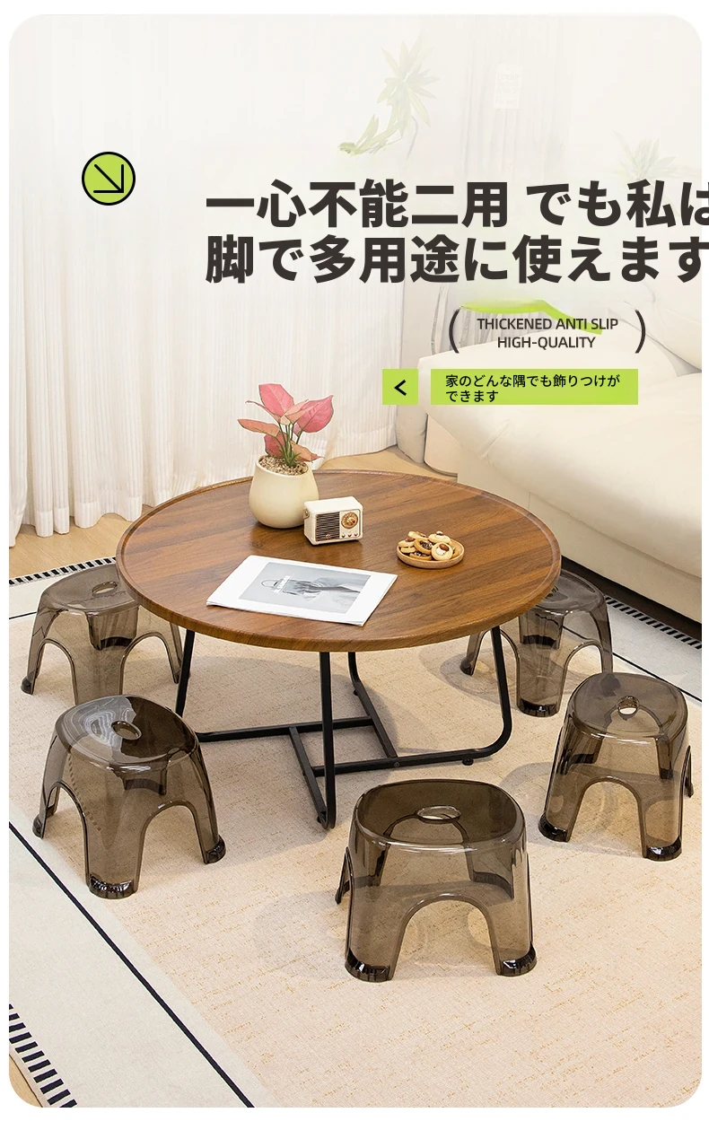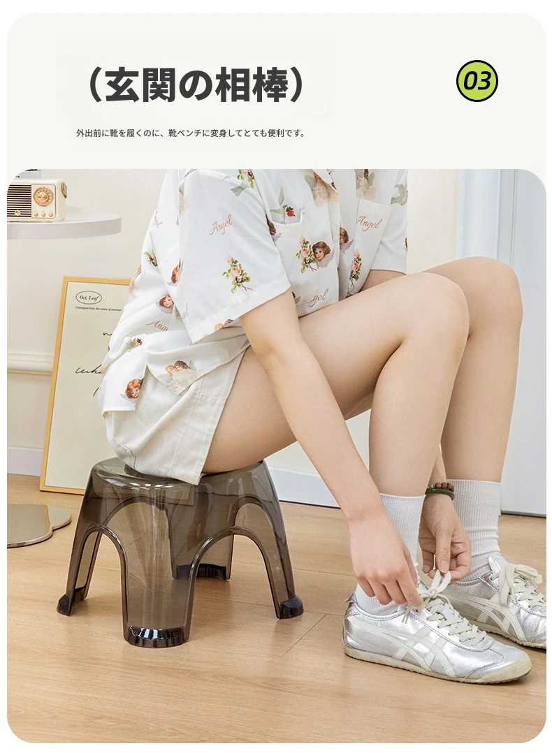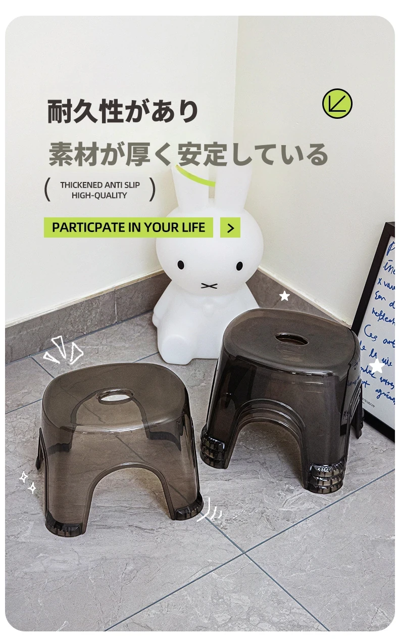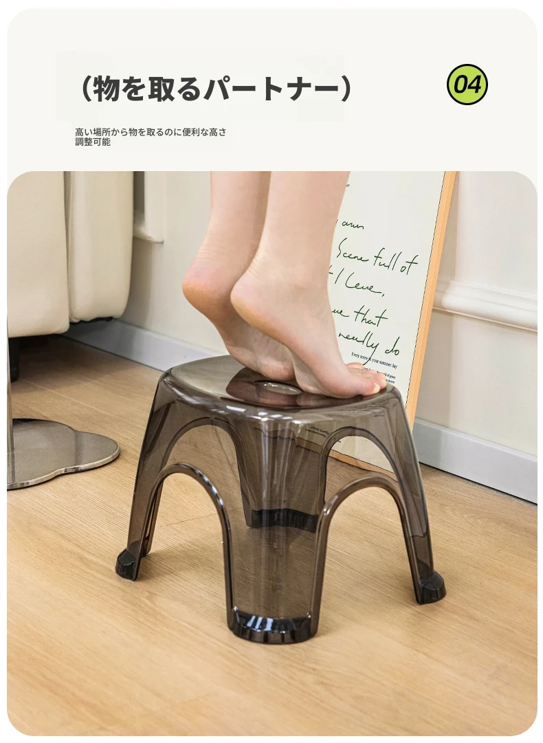 透明アクリルミニスツール - 家庭用アイデアシューズチェンジスツール!厚手プラスチック製、子供向けお風呂やトイレ用の便利な低めスツール。スタイリッシュで機能的、どんなインテリアにもぴったり!