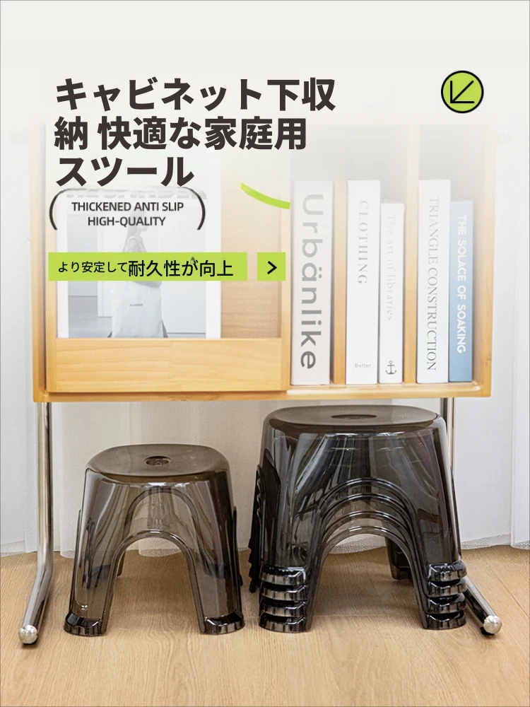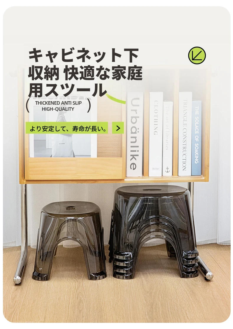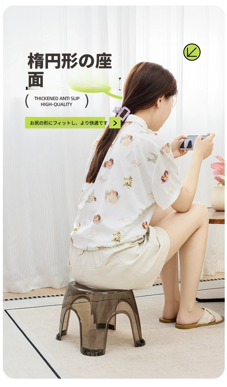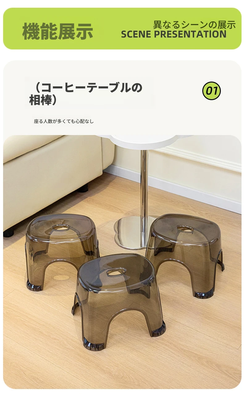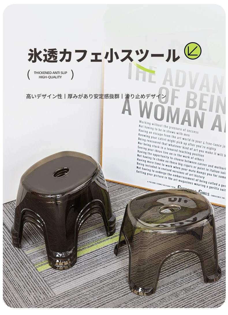 透明アクリルミニスツール - 家庭用アイデアシューズチェンジスツール!厚手プラスチック製、子供向けお風呂やトイレ用の便利な低めスツール。スタイリッシュで機能的、どんなインテリアにもぴったり!