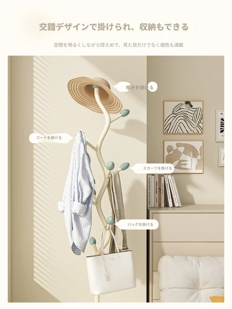 クリーム風コートハンガー、寝室用フロアスタンド衣類ラック、家庭用アイアン製収納スタンド、上質でクリエイティブなアートコートスタンドで、スタイリッシュな空間を演出します!
