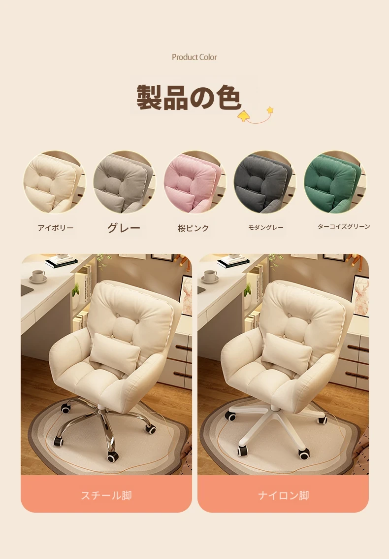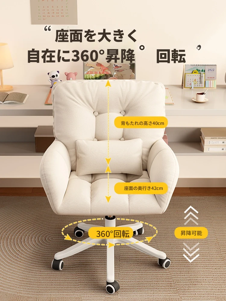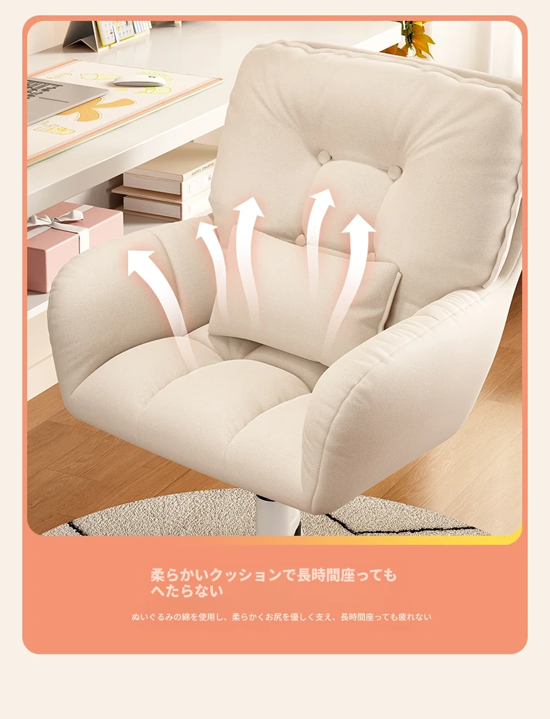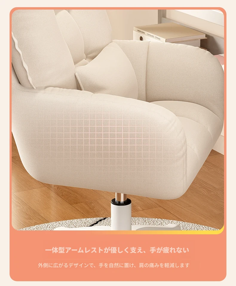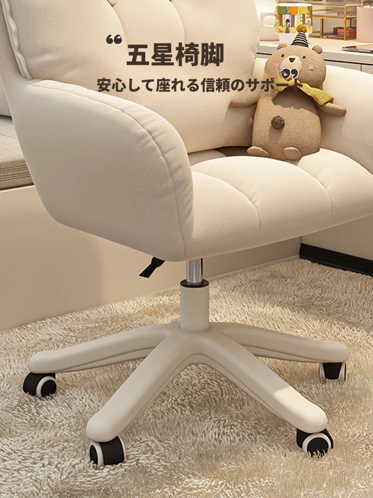 おしゃれな女性向け化粧椅子 - 軽やかな高級感!インスタで大人気の回転式背もたれ付きコンピューターチェア、ネイル作業にも最適なデザイン。あなたの寝室を素敵に彩るアイテムです!