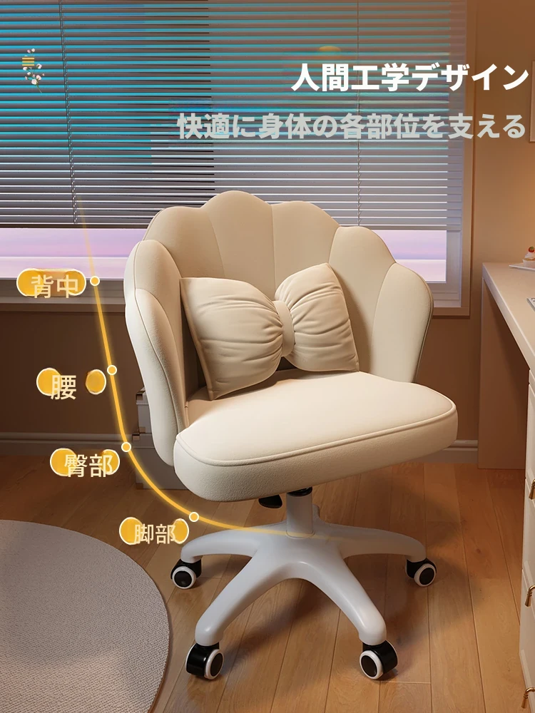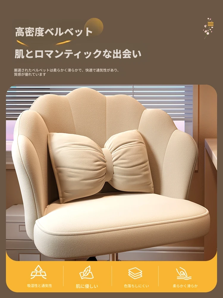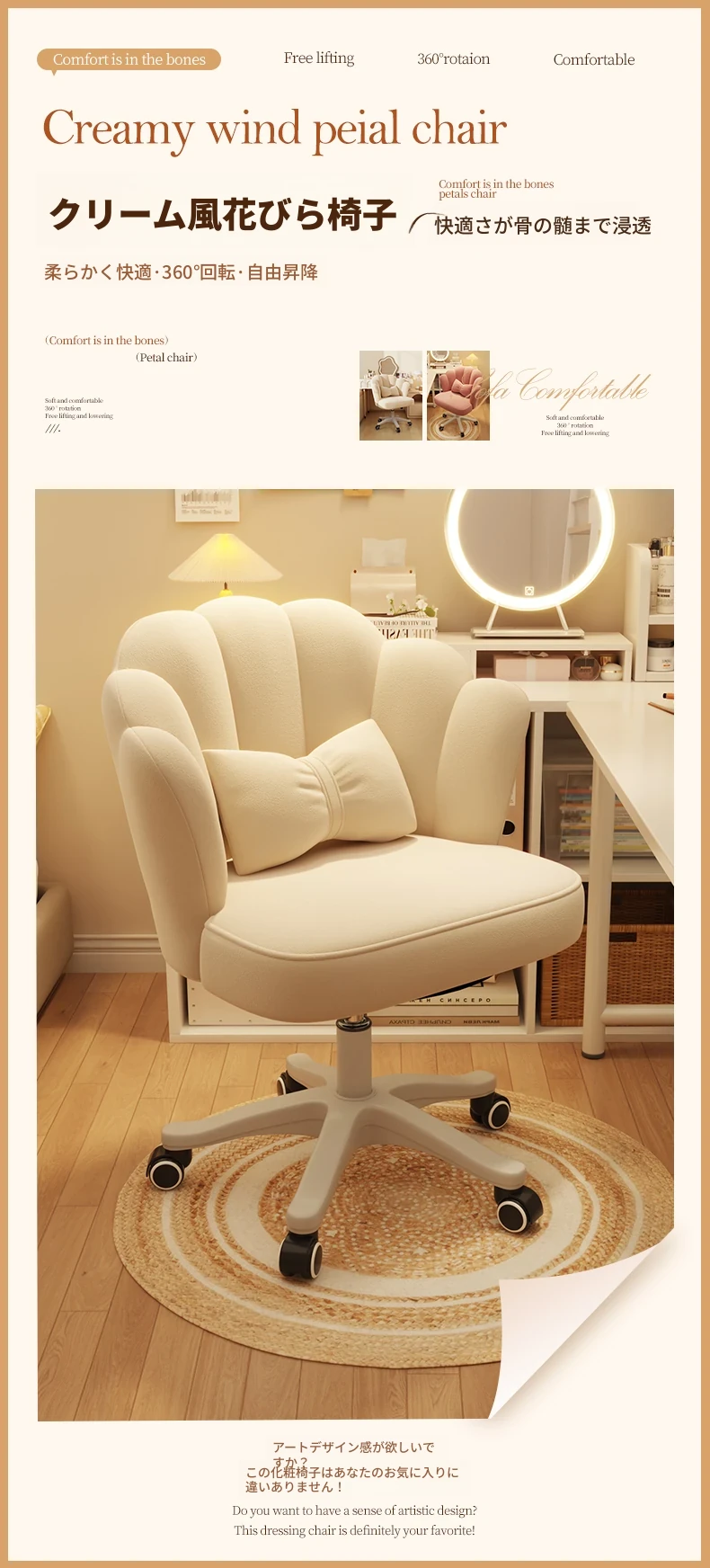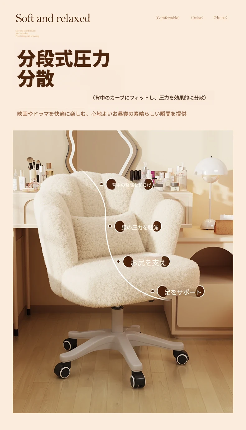 メイクアップチェア 家庭用 椅子 背もたれ付き ドレッサー用 椅子 女の子の寝室にぴったり 花びらデザイン 昇降式 回転チェア ネイルサロン用 滑車付きで移動もラクラク!