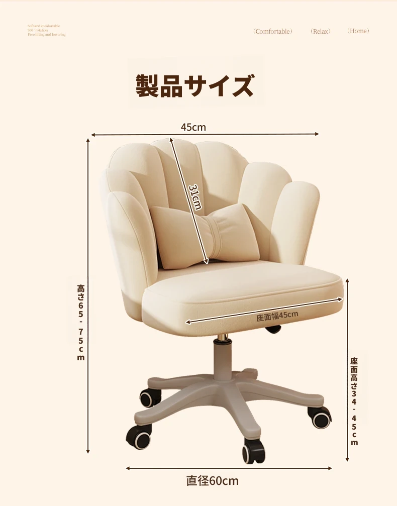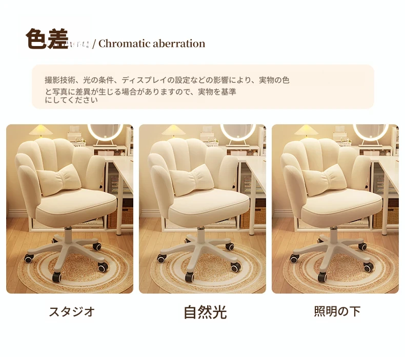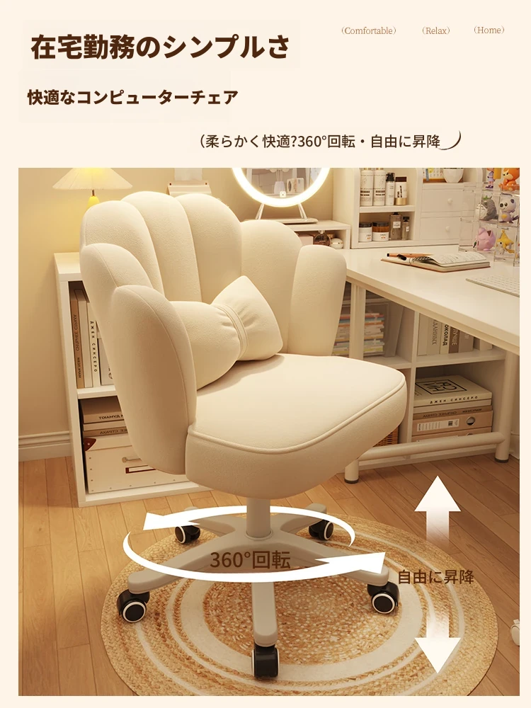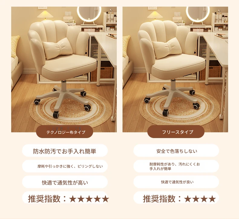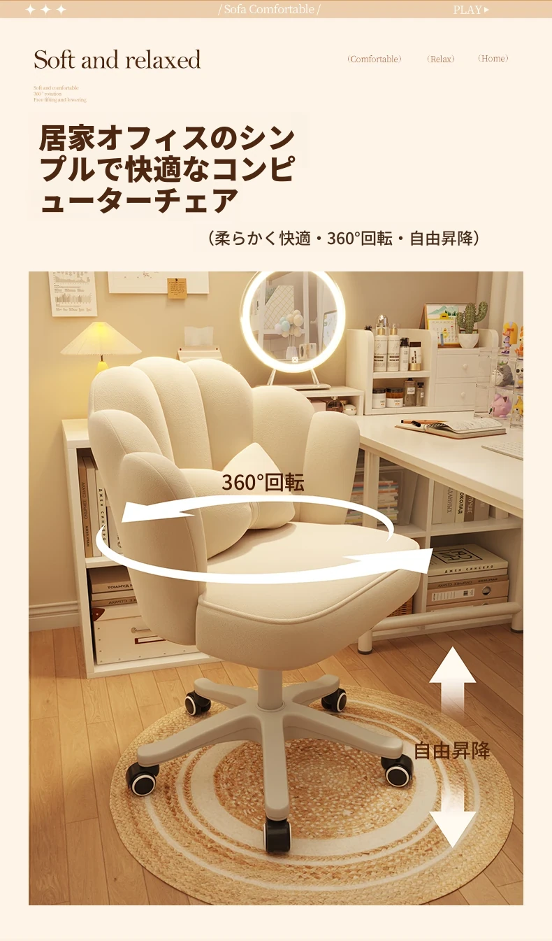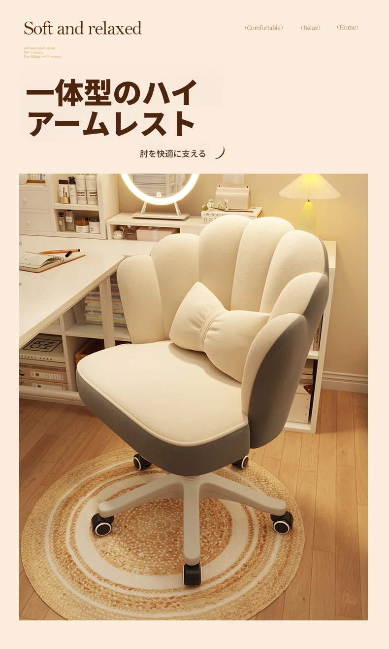 メイクアップチェア 家庭用 椅子 背もたれ付き ドレッサー用 椅子 女の子の寝室にぴったり 花びらデザイン 昇降式 回転チェア ネイルサロン用 滑車付きで移動もラクラク!