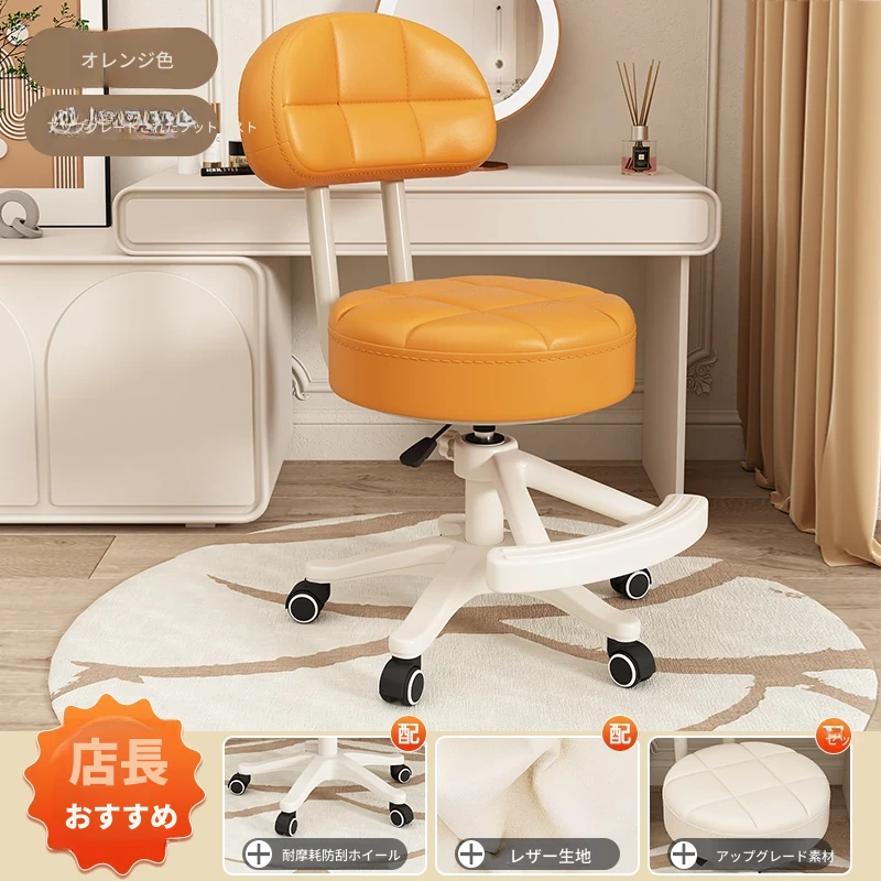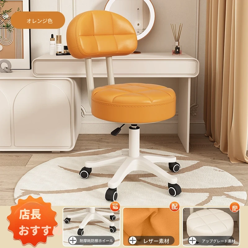 アップグレード版-背もたれ付き【オレンジ】昇降回転+移動自在