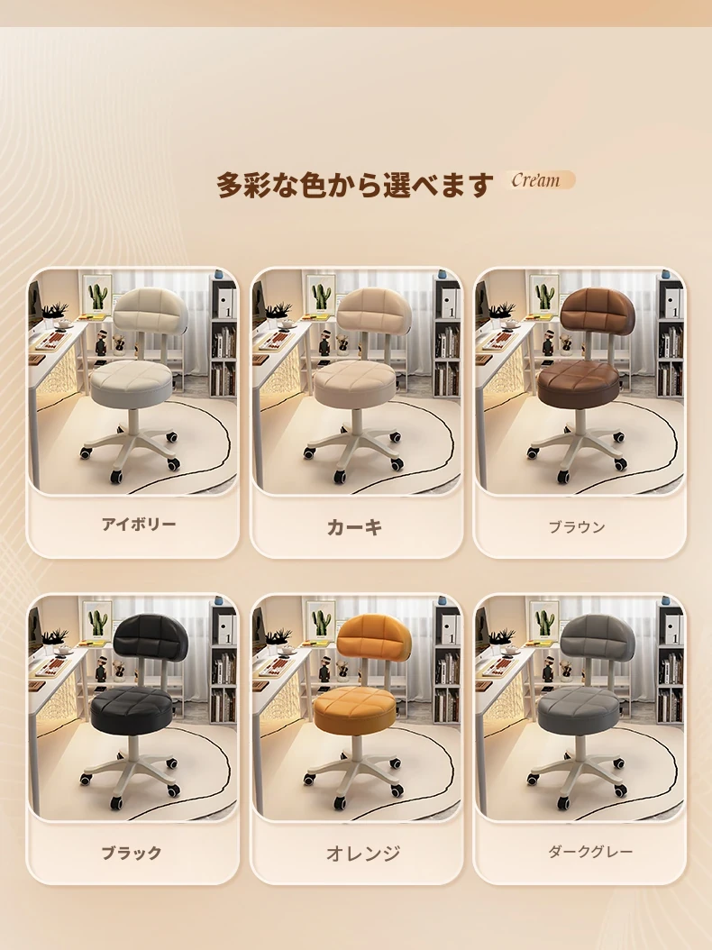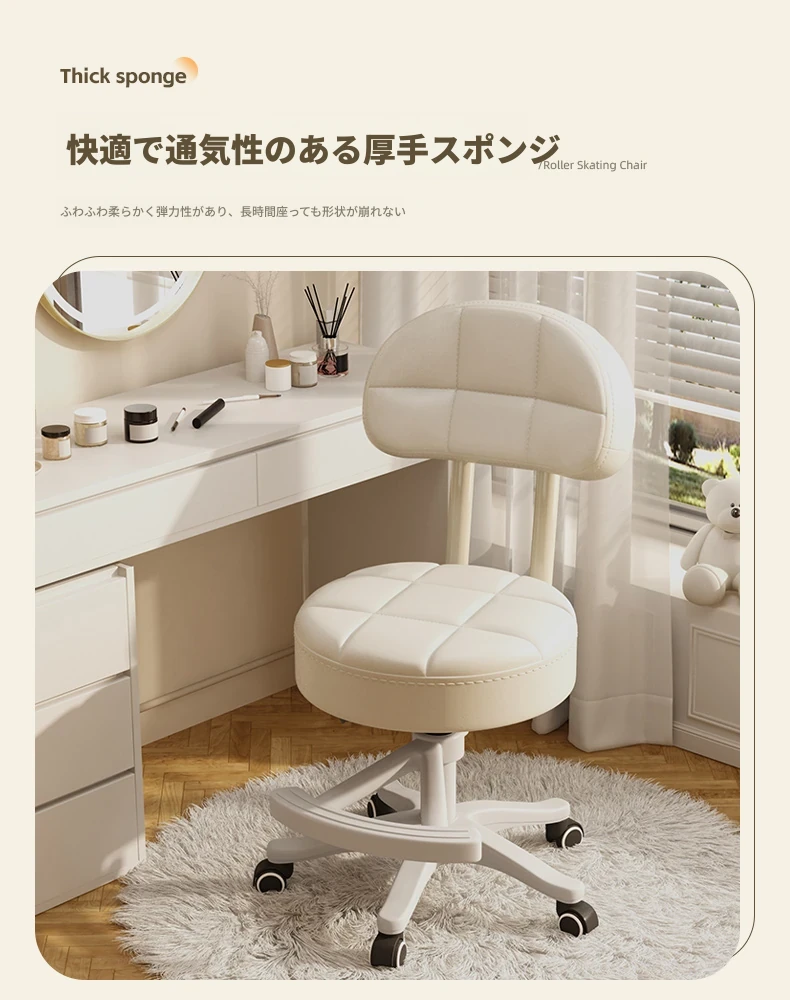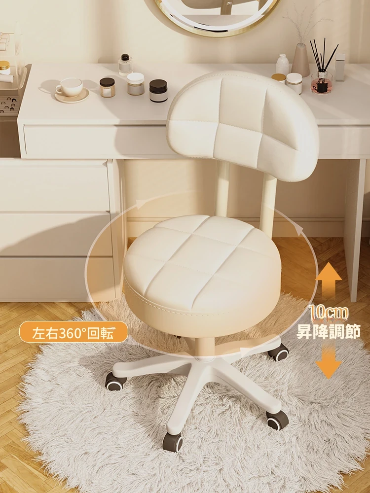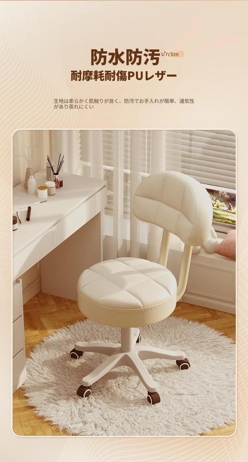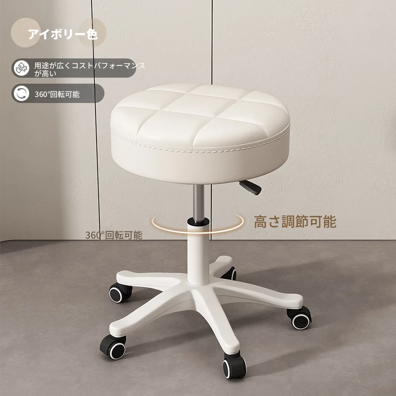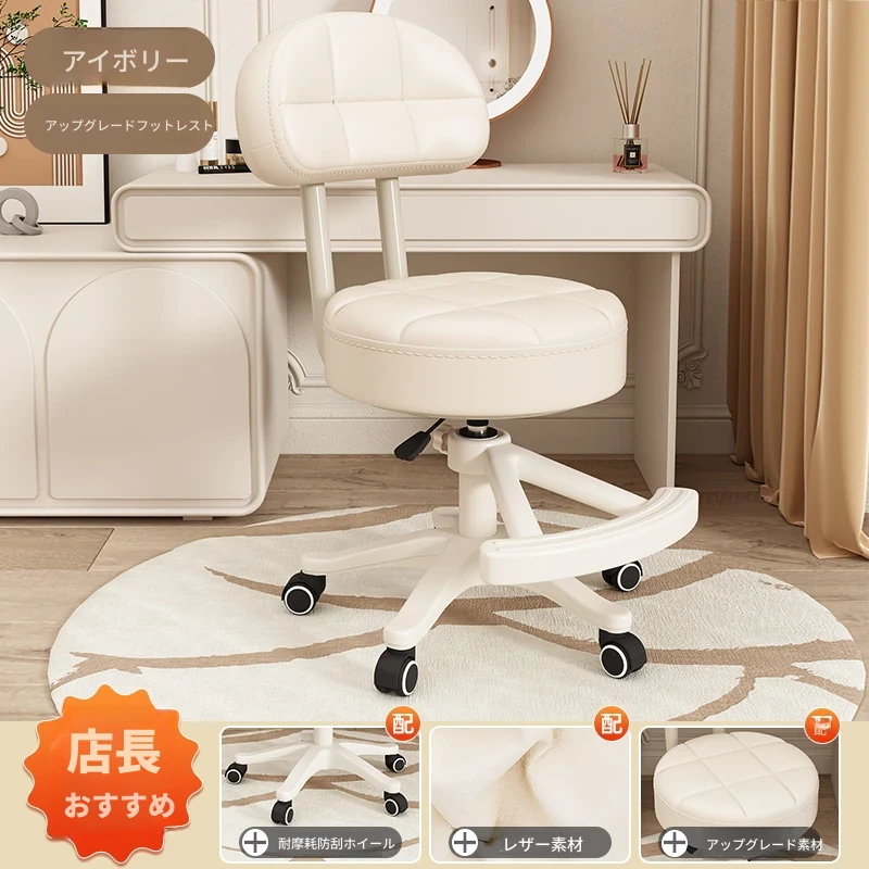 アップグレード版-背もたれ付き【アイボリー】昇降回転+移動自在