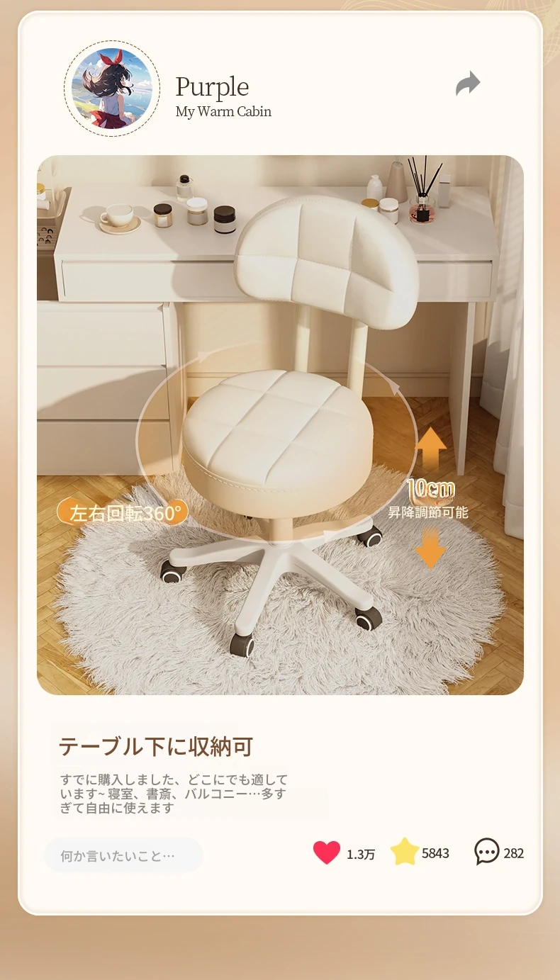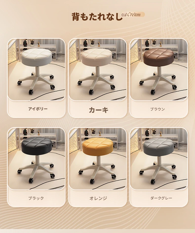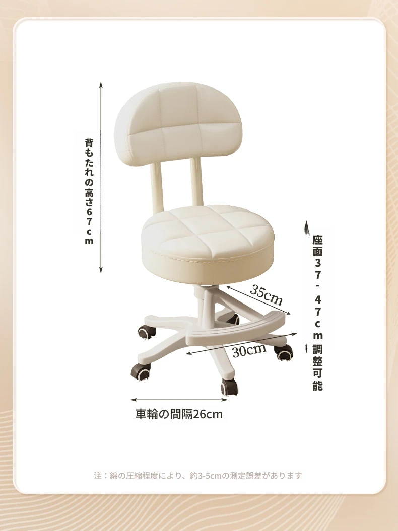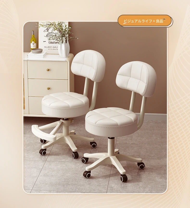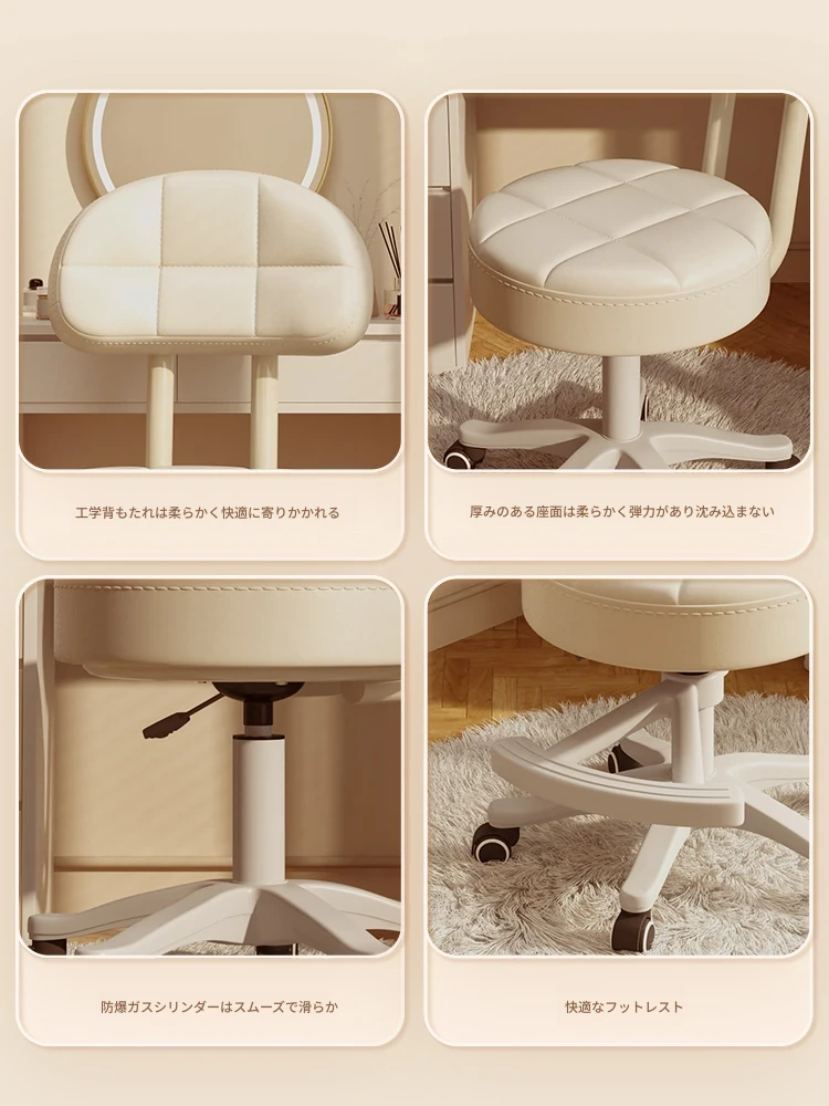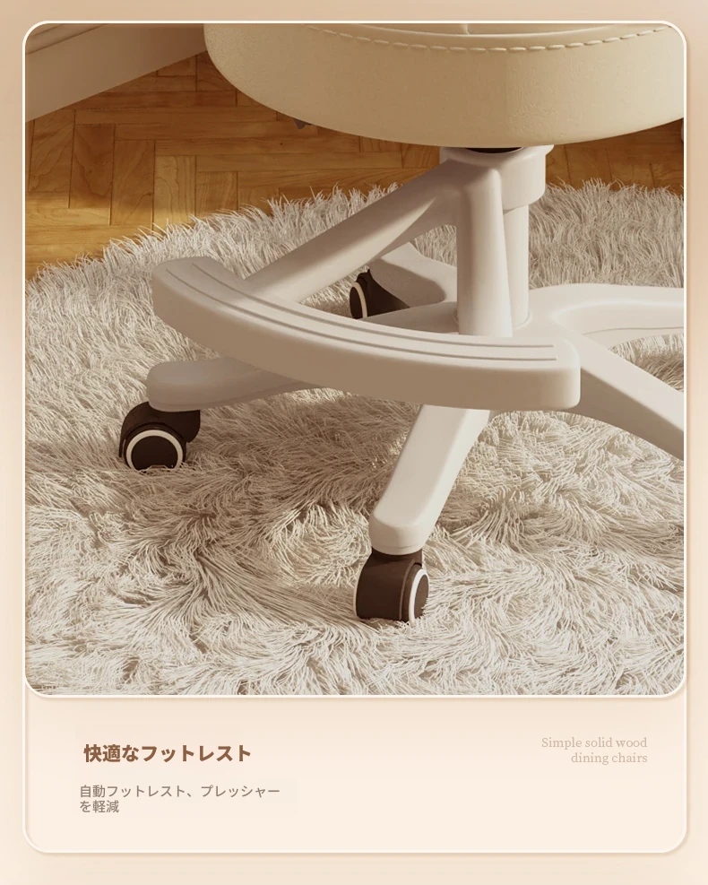 アップグレード版-背もたれ付き【アイボリー】昇降回転+移動自在