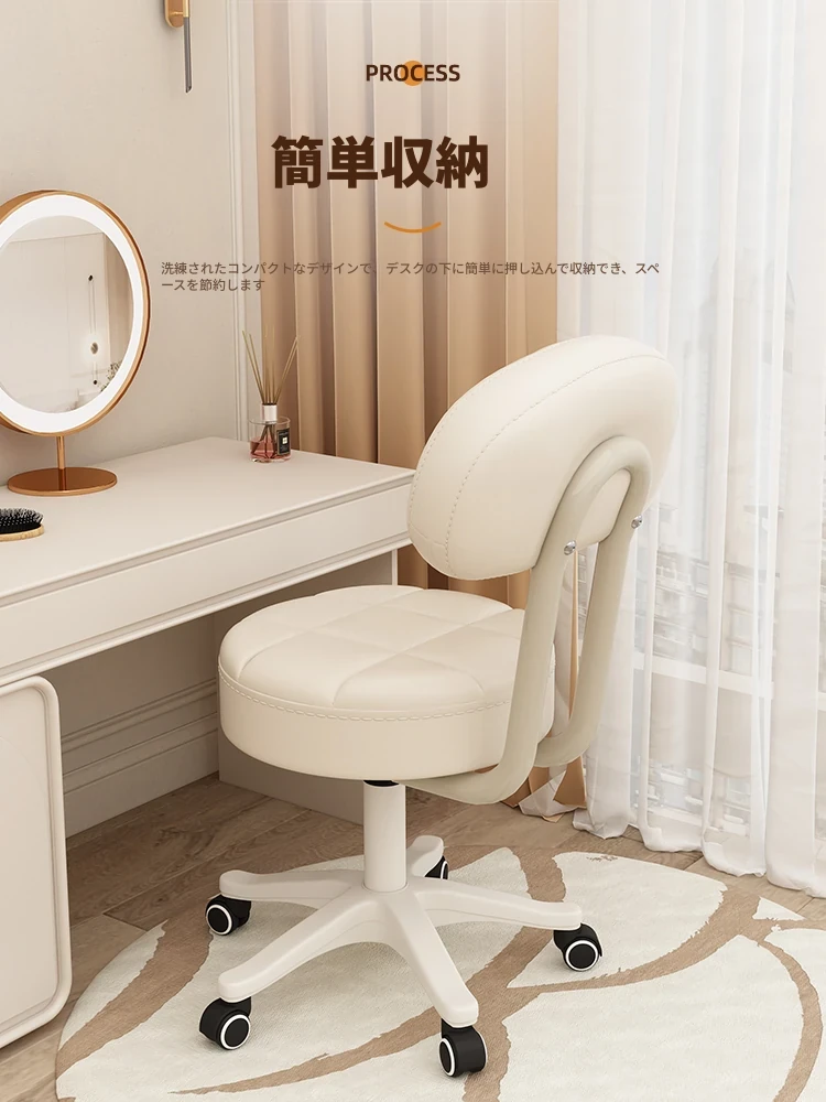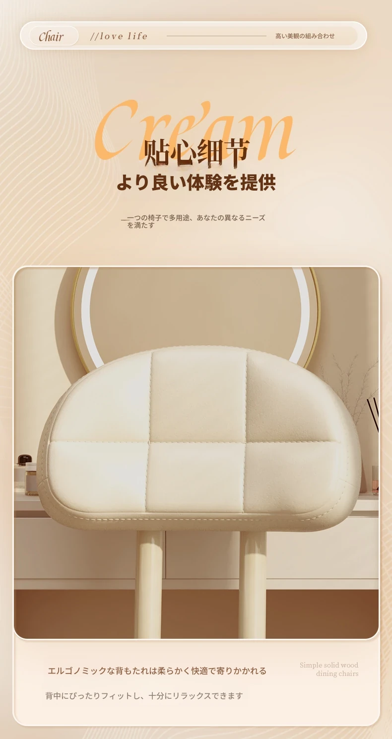 洗練されたデザインの高級化粧椅子 - 主寝室にぴったりのシンプルな背もたれ付き化粧台用スツール。自宅でのビューティータイムをさらに特別にするアイテムです!