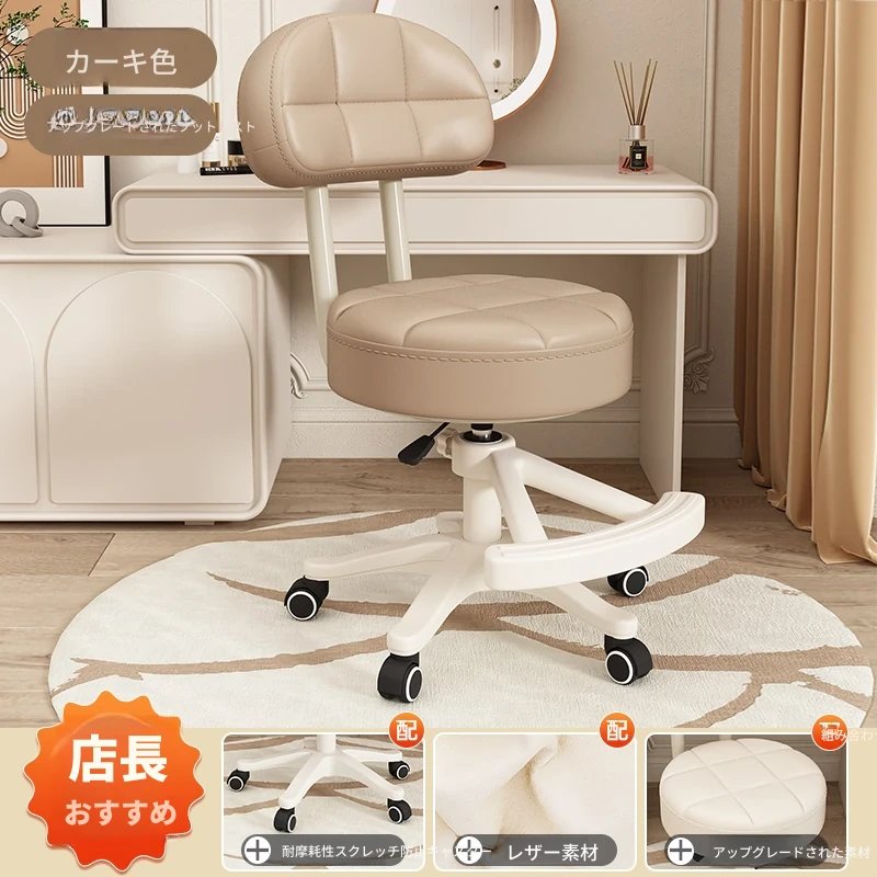 アップグレード版-背もたれ付き【カーキ】昇降回転+移動自在