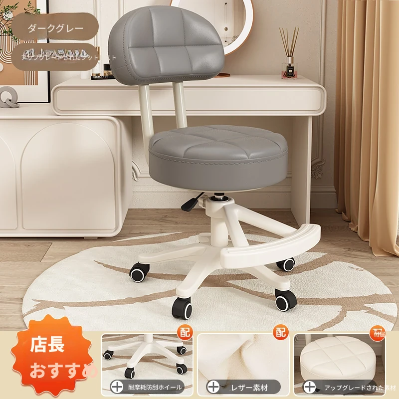 アップグレード版-背もたれ付き【ダークグレー】昇降回転+移動自在