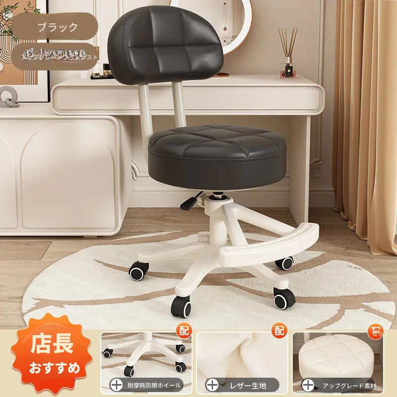 アップグレード版-背もたれ付き【ブラック】昇降回転+移動自在