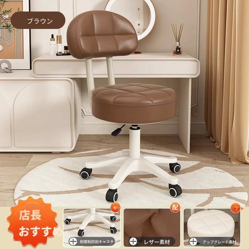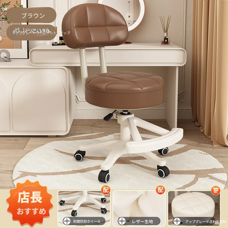 アップグレード版-背もたれ付き【ブラウン】昇降回転+移動自在
