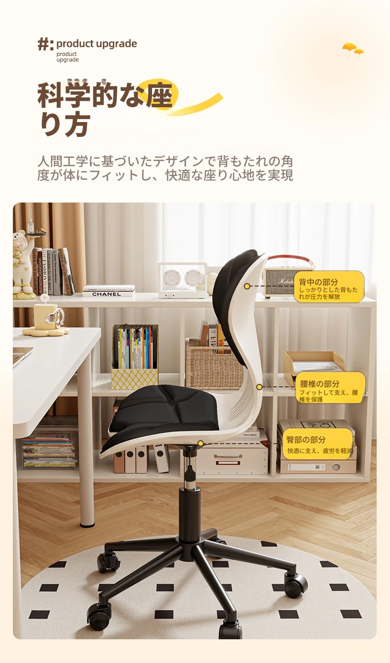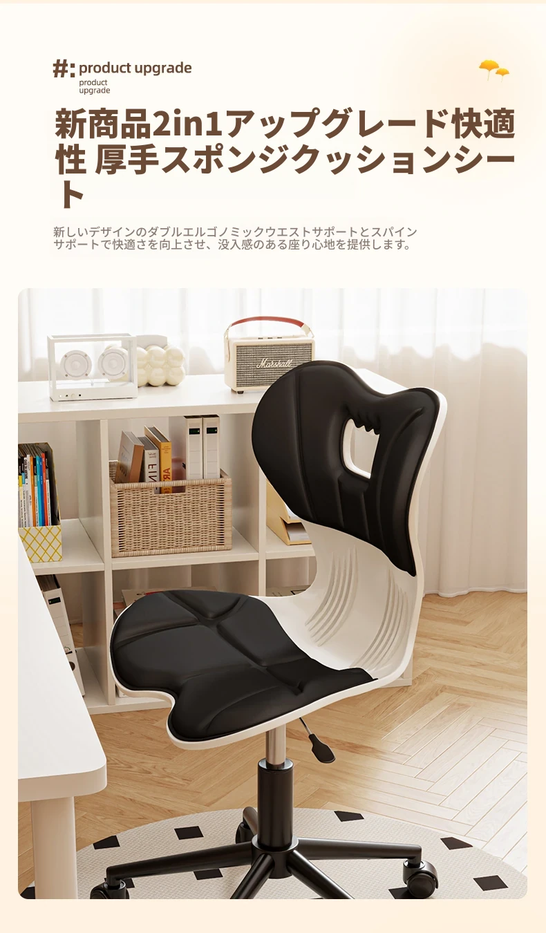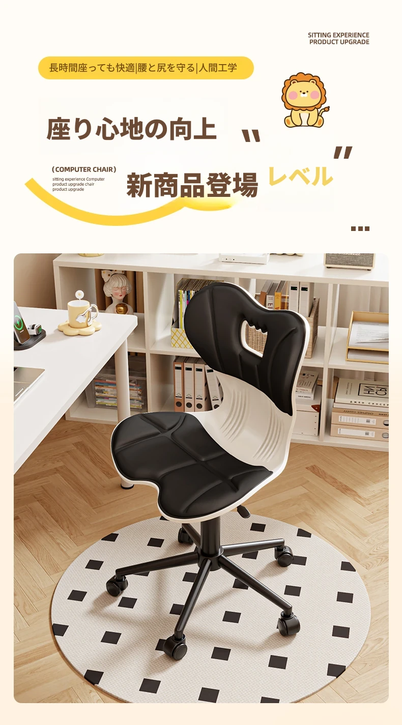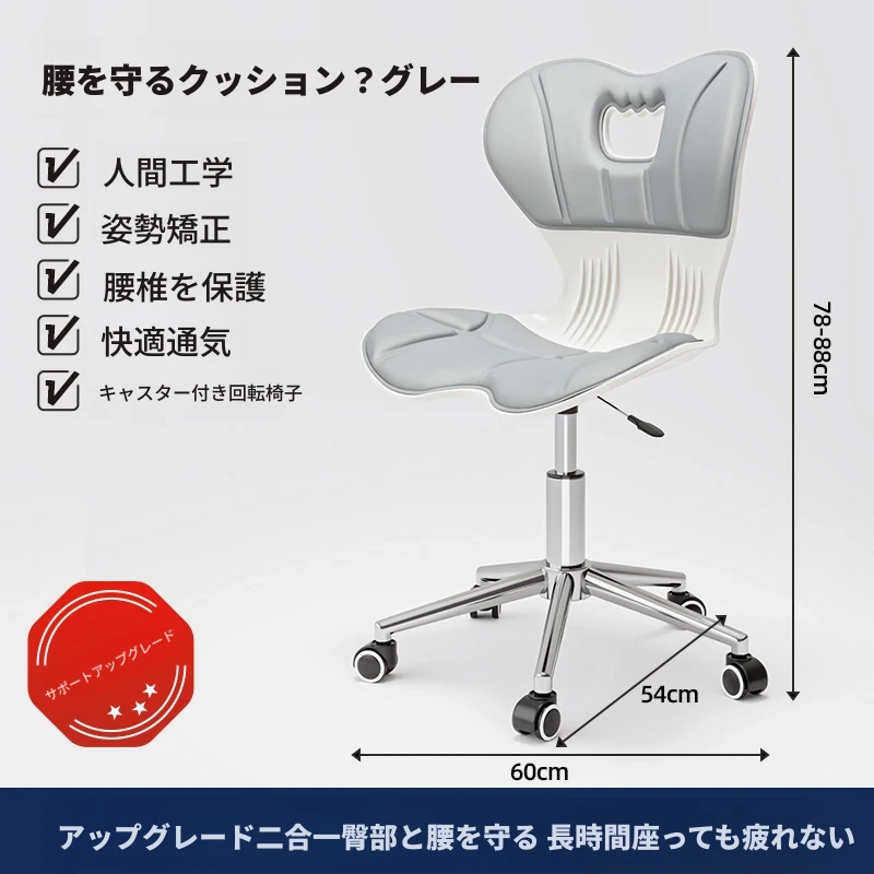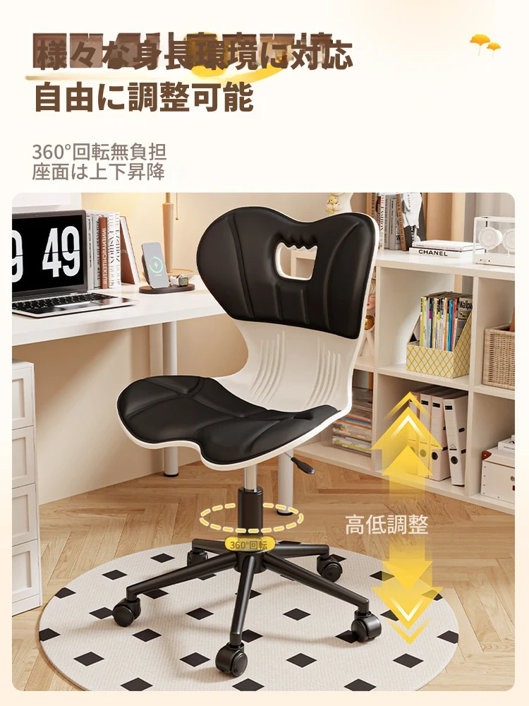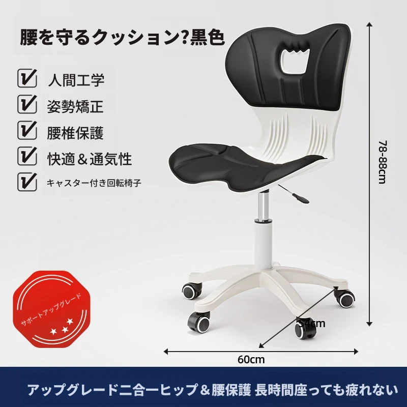 昇降式腰サポートオフィスチェア - 快適な座り心地で、家でもオフィスでも大活躍!滑りやすいキャスター付き、長時間のデスクワークも楽々。寮生活にも最適なスタイリッシュなデザイン!