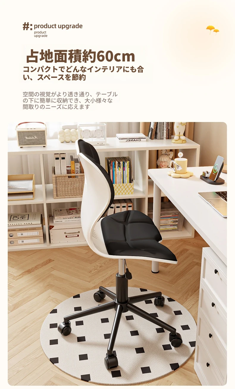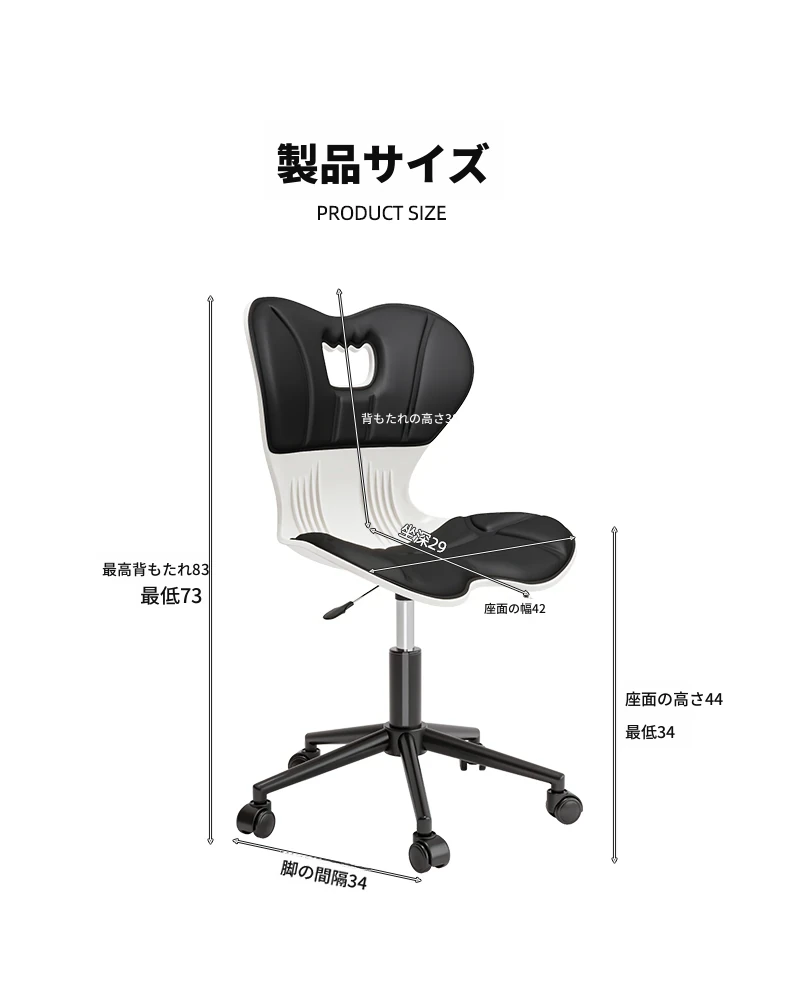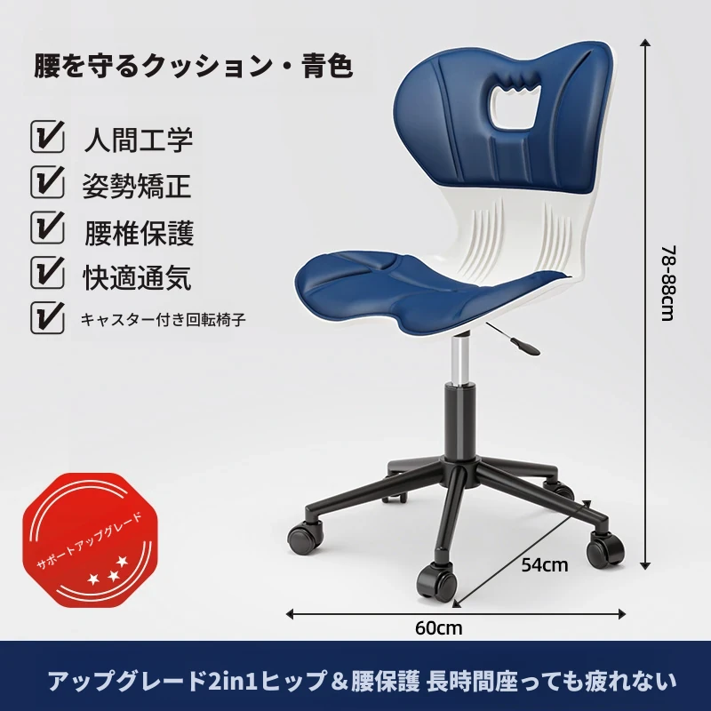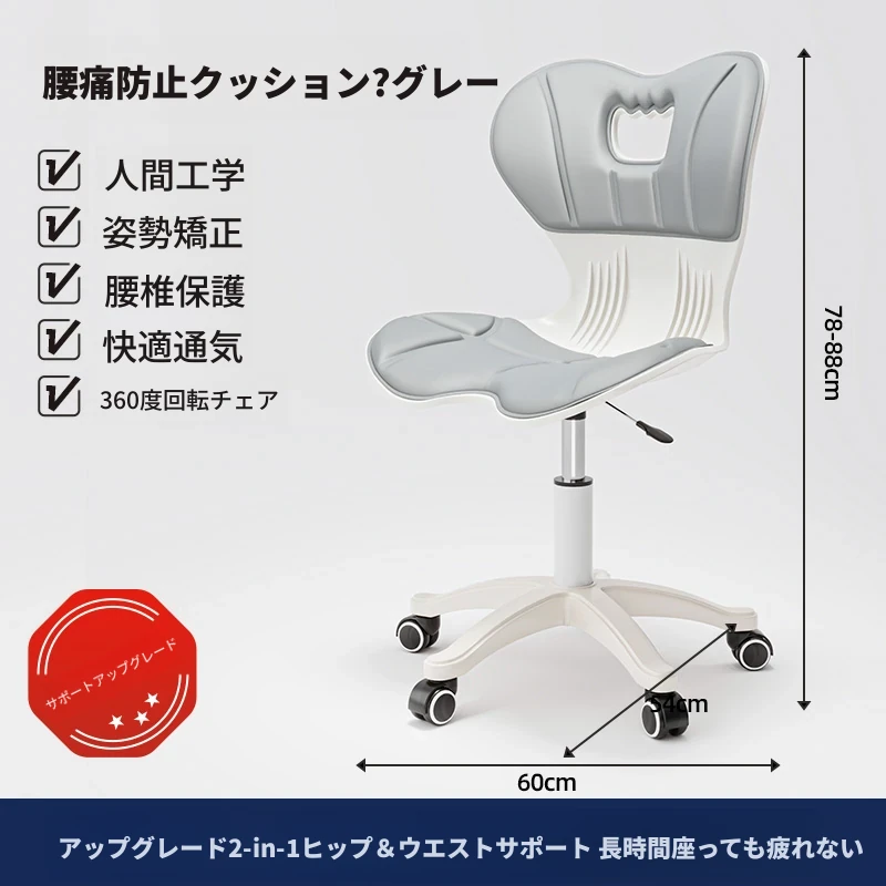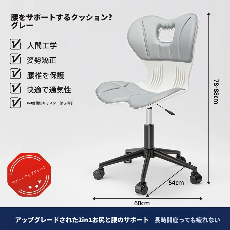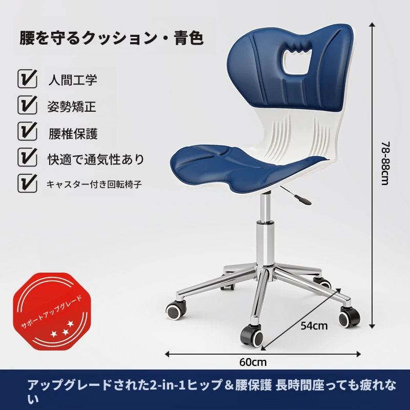 昇降式腰サポートオフィスチェア - 快適な座り心地で、家でもオフィスでも大活躍!滑りやすいキャスター付き、長時間のデスクワークも楽々。寮生活にも最適なスタイリッシュなデザイン!