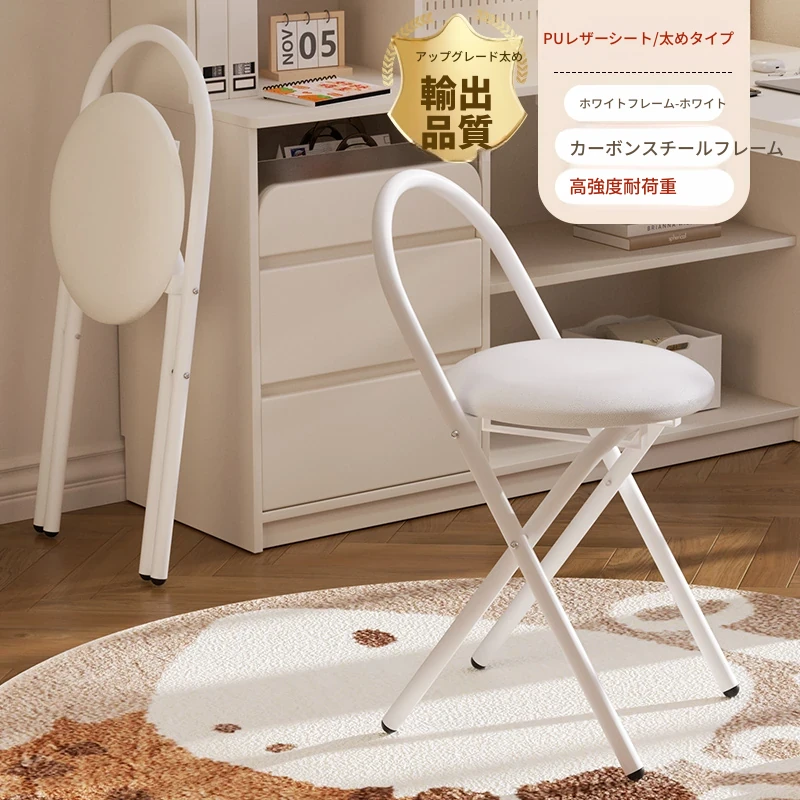 新しいアップグレード版【太型スチールフレーム-折りたたみ収納】PU-白フレーム白色