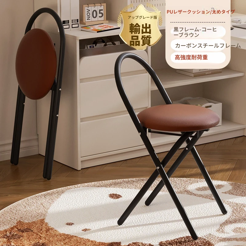 新しいアップグレード版【太型スチールフレーム-折りたたみ収納】PU-黒フレームコーヒー色