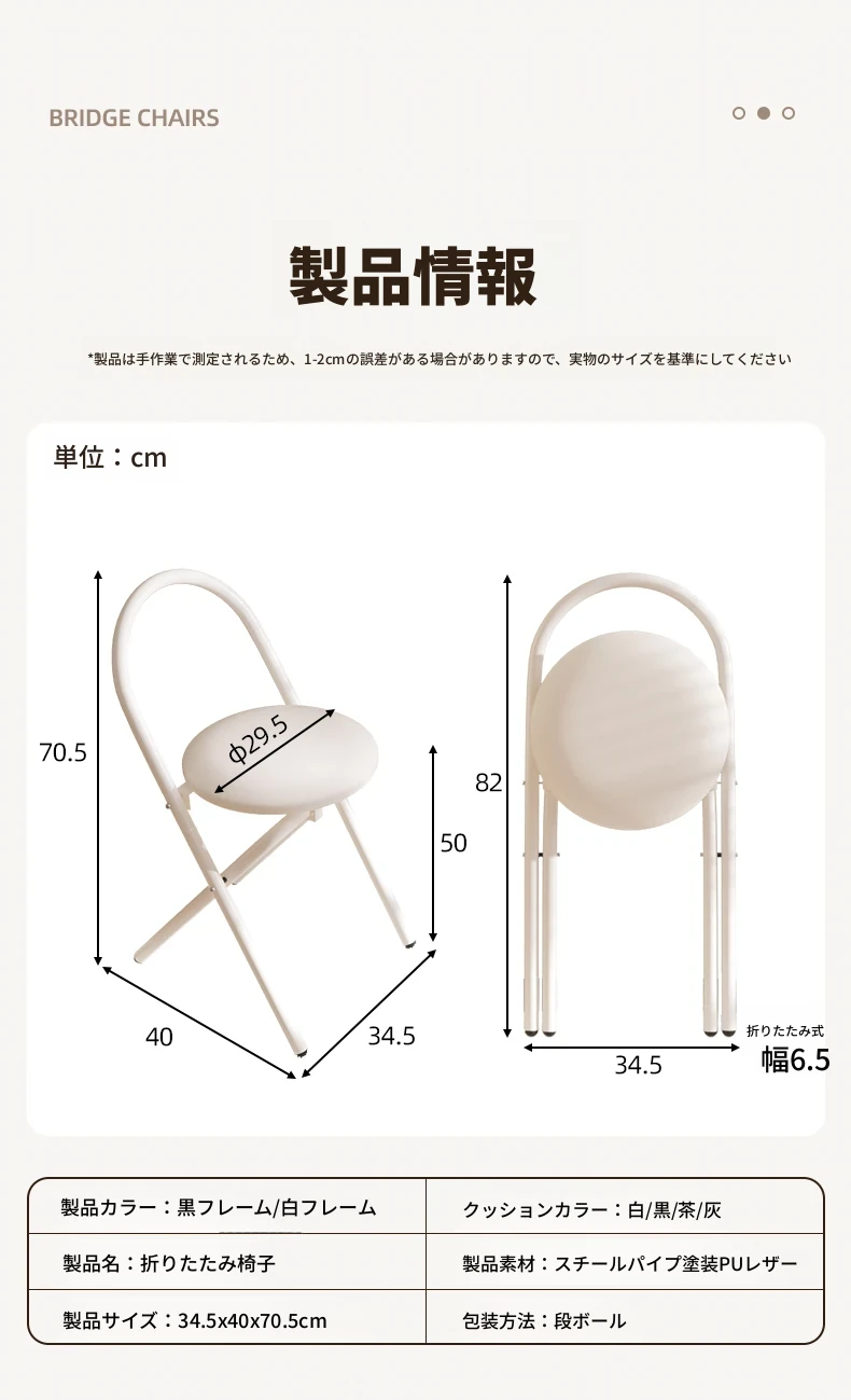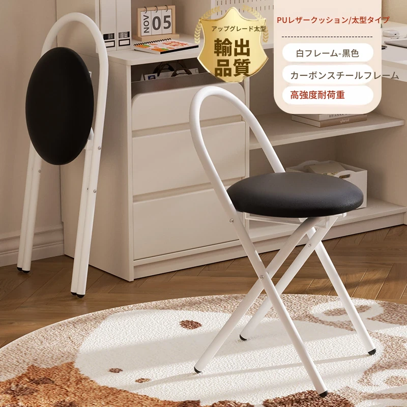 新しいアップグレード版【太型スチールフレーム-折りたたみ収納】PU-白フレーム黒色