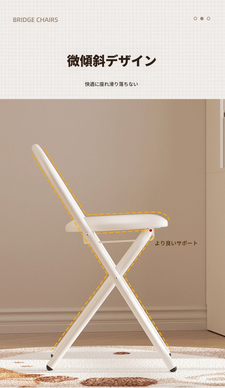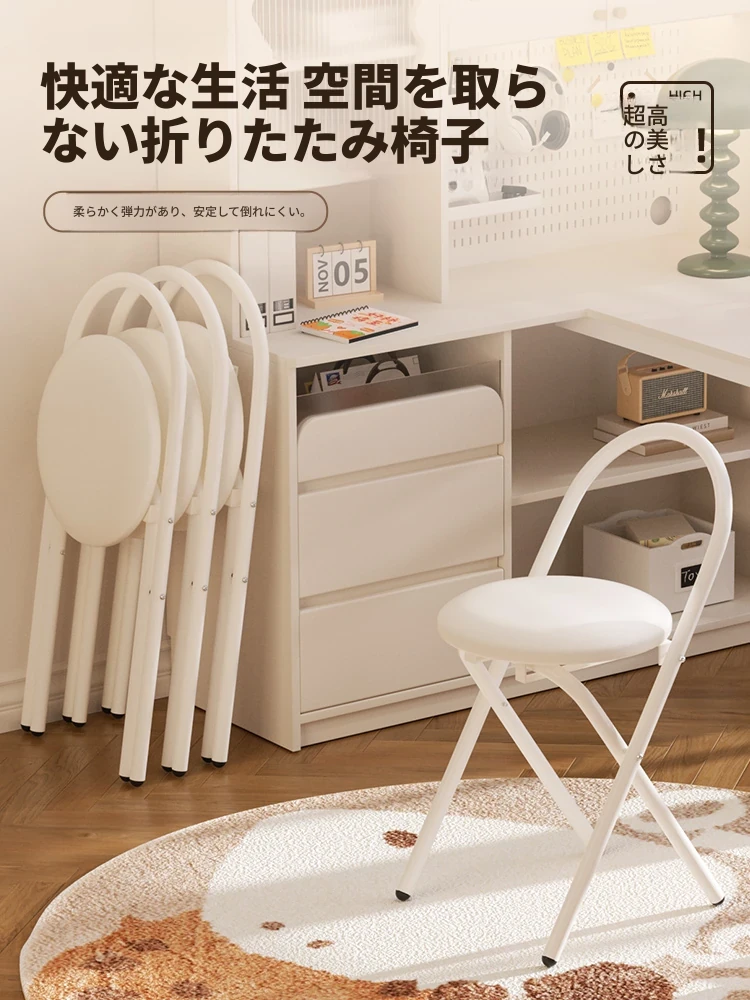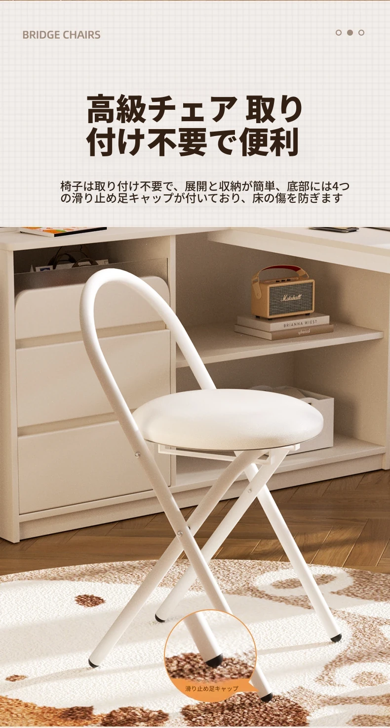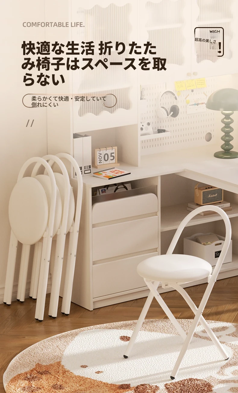 簡単に設置できる折りたたみ椅子!背もたれ付きで、学習や食事に最適なクリーム色のデザイン。省スペースで使いやすく、家庭にぴったりの便利な一品です。