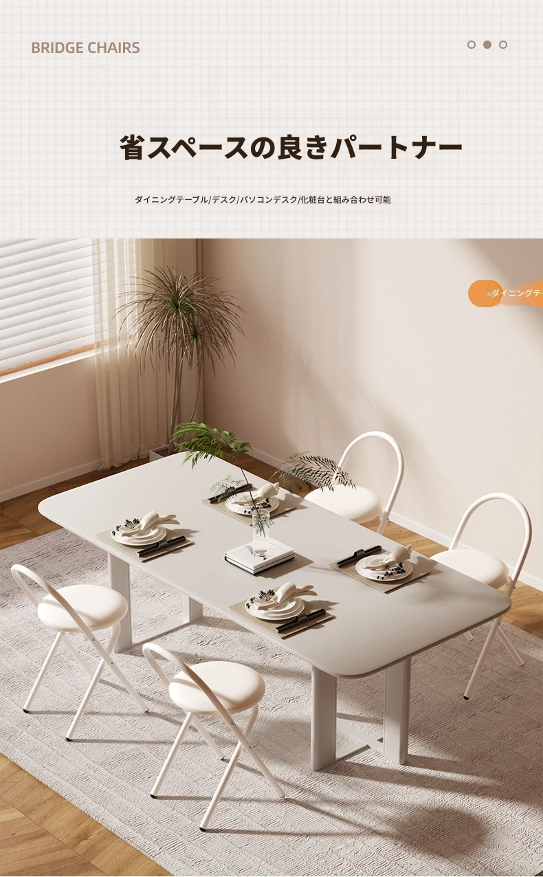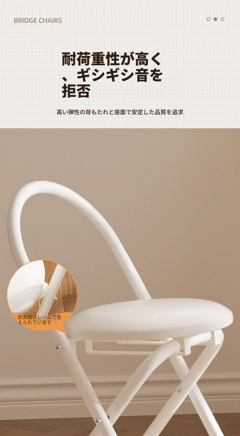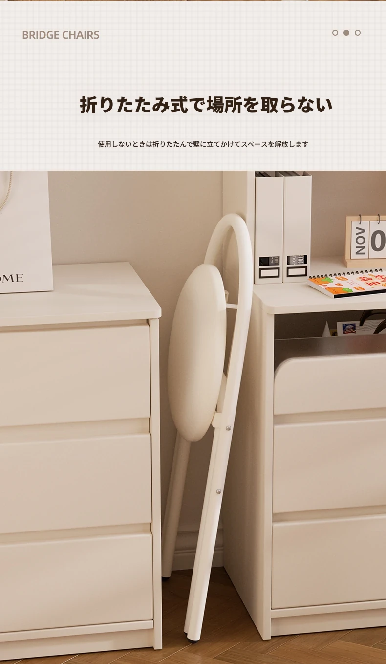 簡単に設置できる折りたたみ椅子!背もたれ付きで、学習や食事に最適なクリーム色のデザイン。省スペースで使いやすく、家庭にぴったりの便利な一品です。