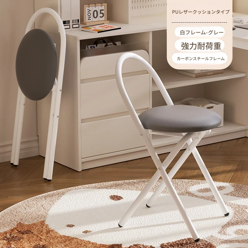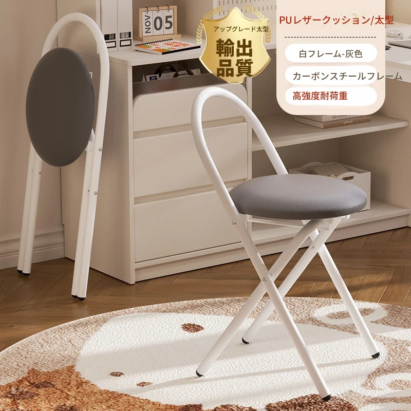 新しいアップグレード版【太型スチールフレーム-折りたたみ収納】PU-白フレーム灰色