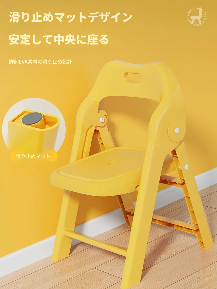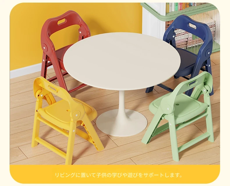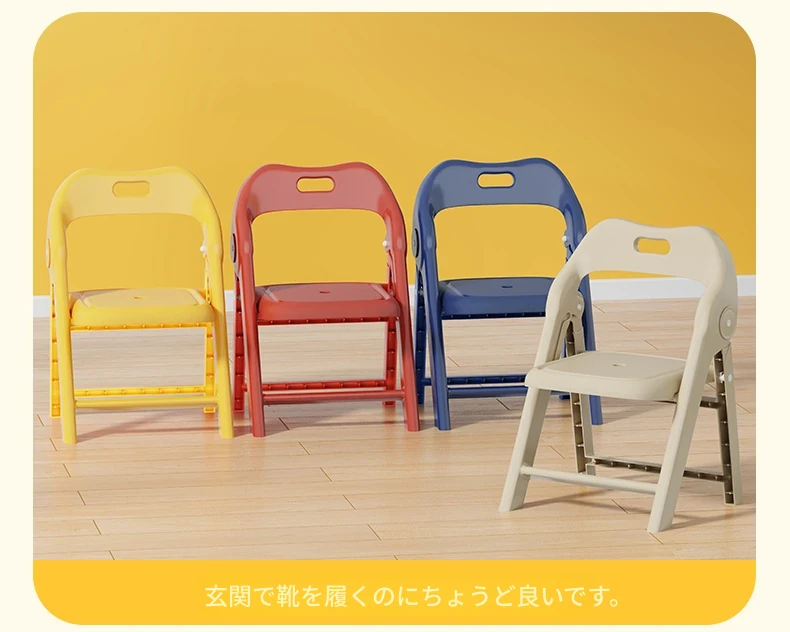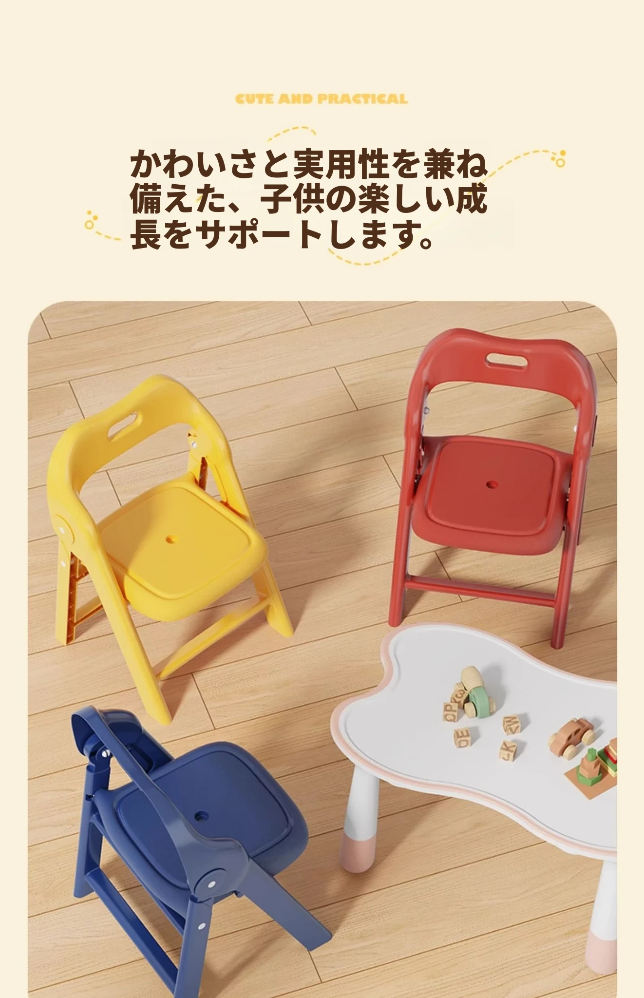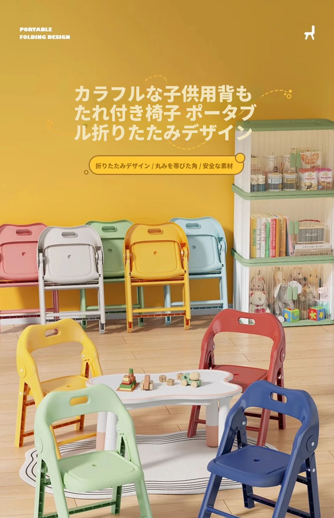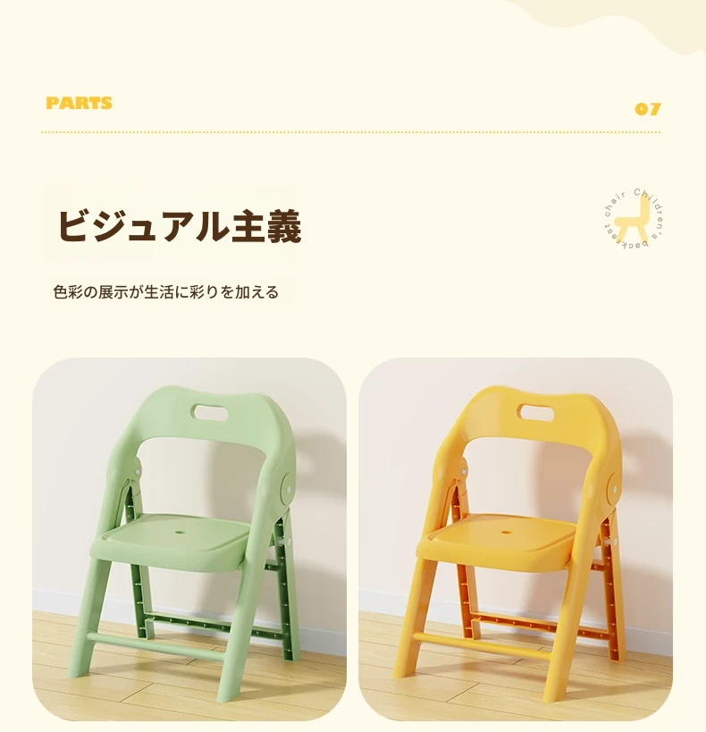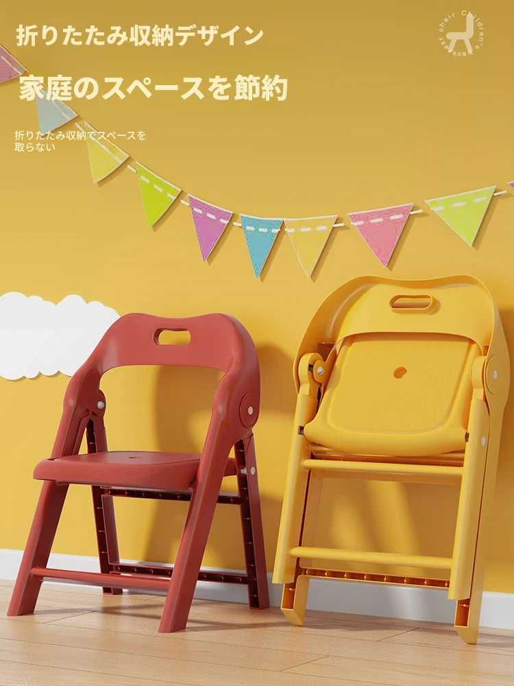 家庭用折りたたみ小椅子 - 滑り止め加工のプラスチック製!リビングや幼稚園で大活躍!赤ちゃんの食事にもぴったりの背もたれ付き!安心・安全な座り心地をお楽しみください!