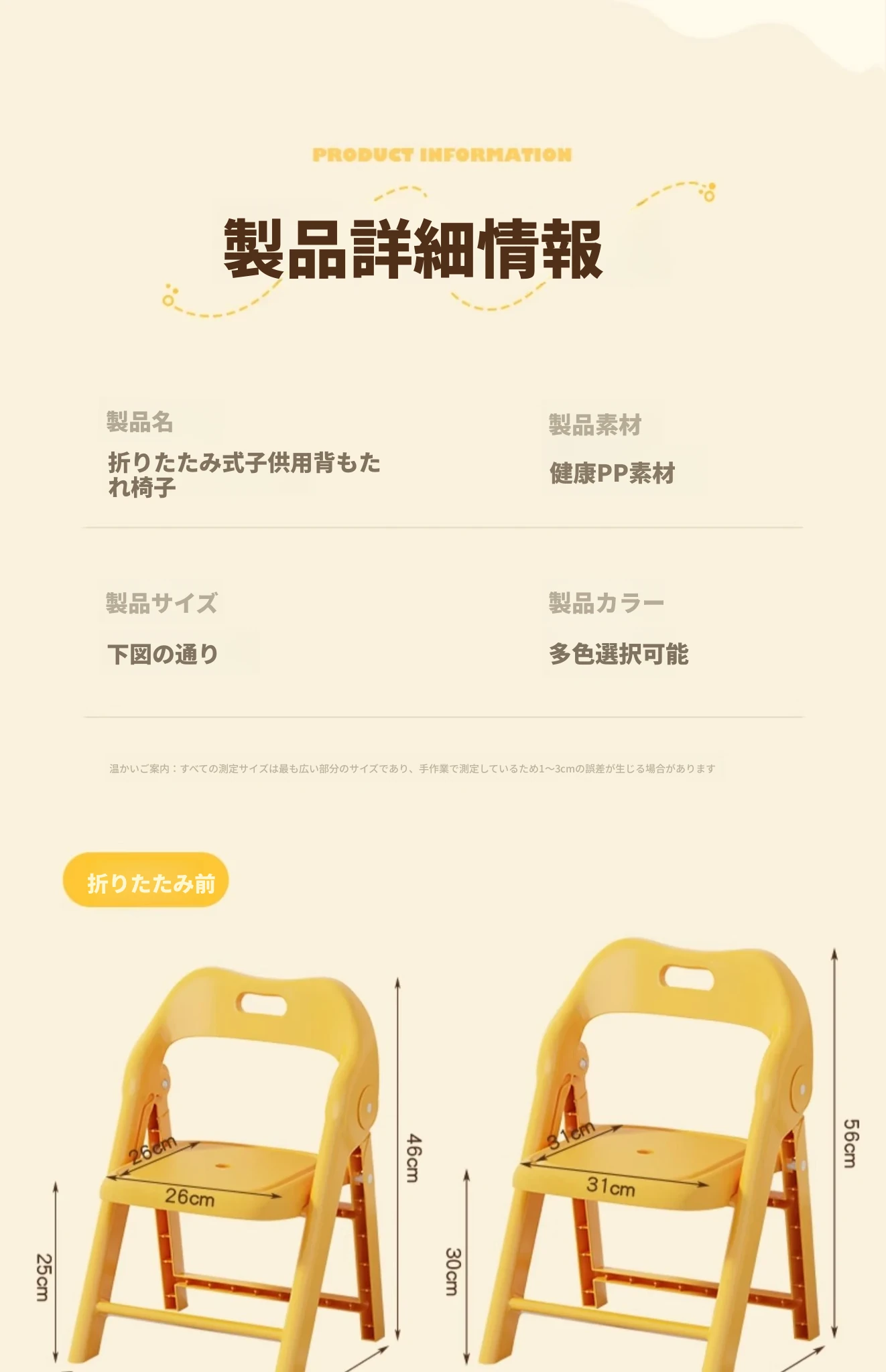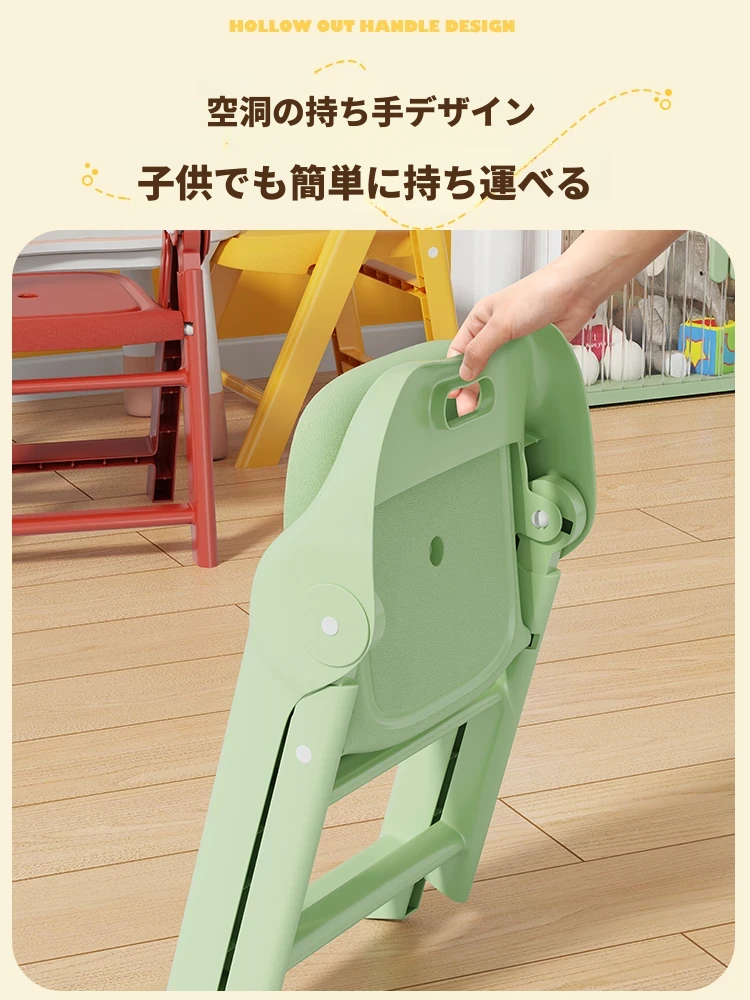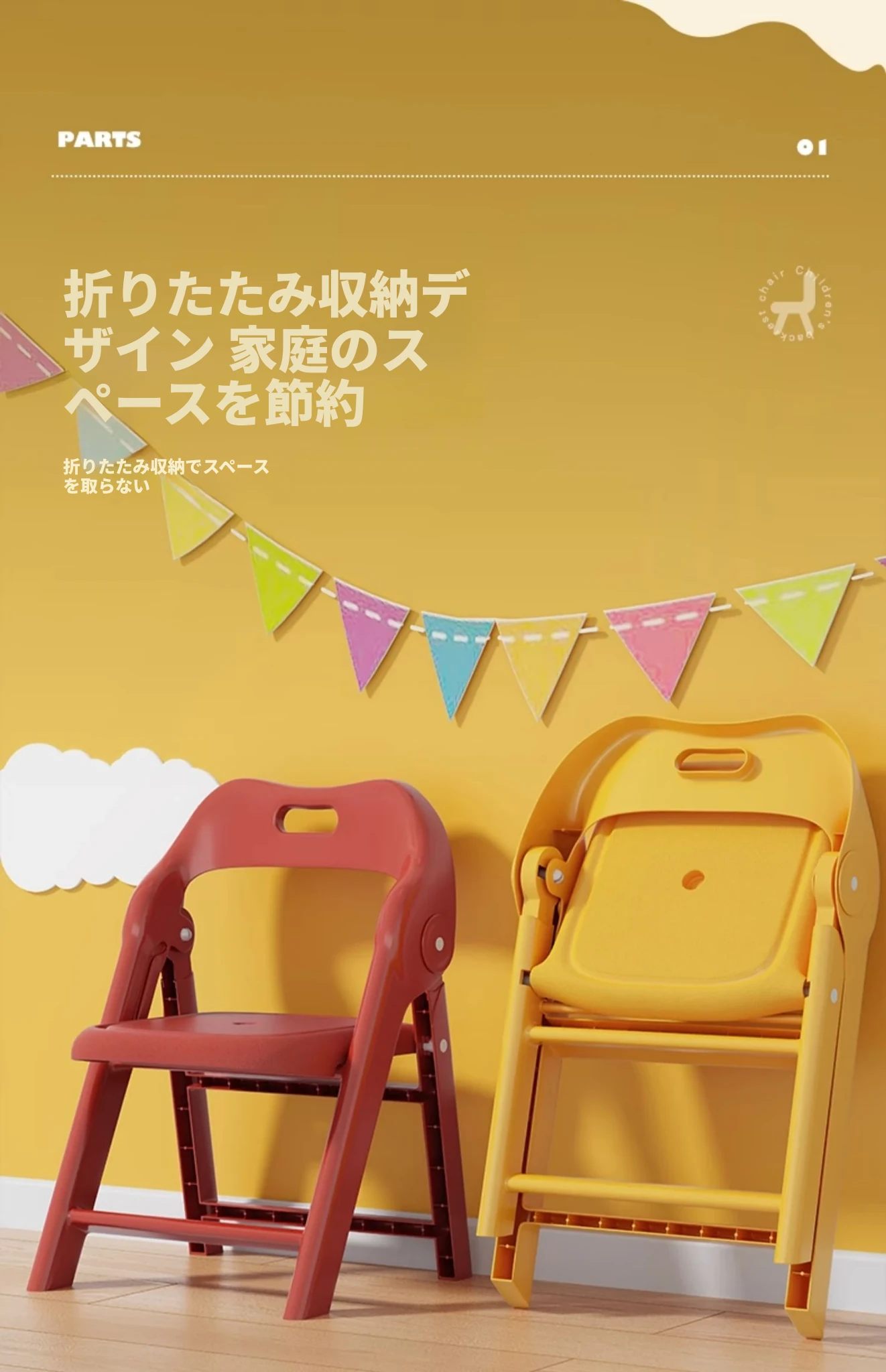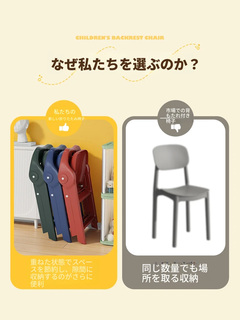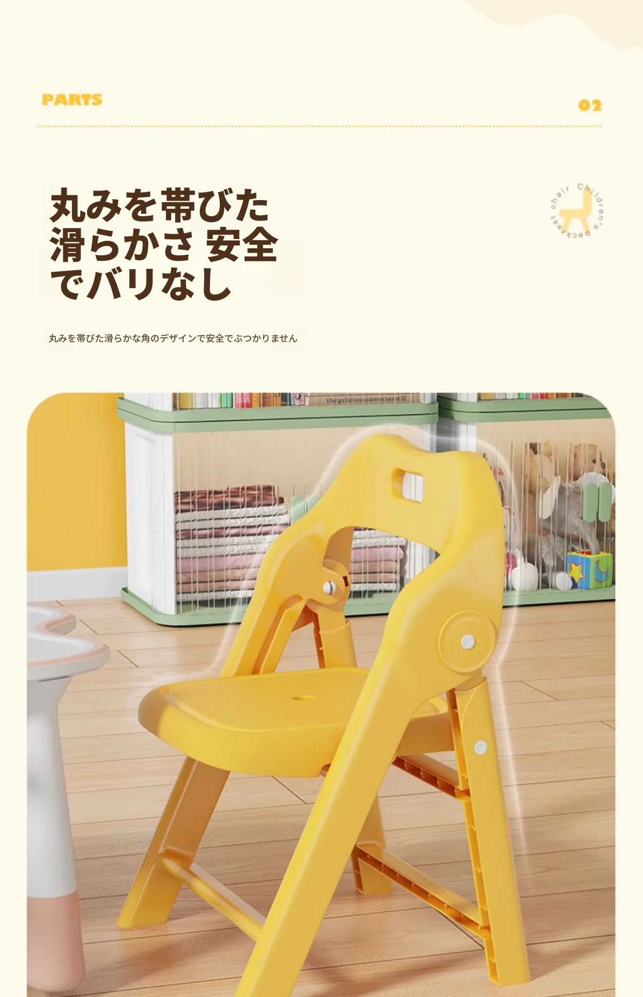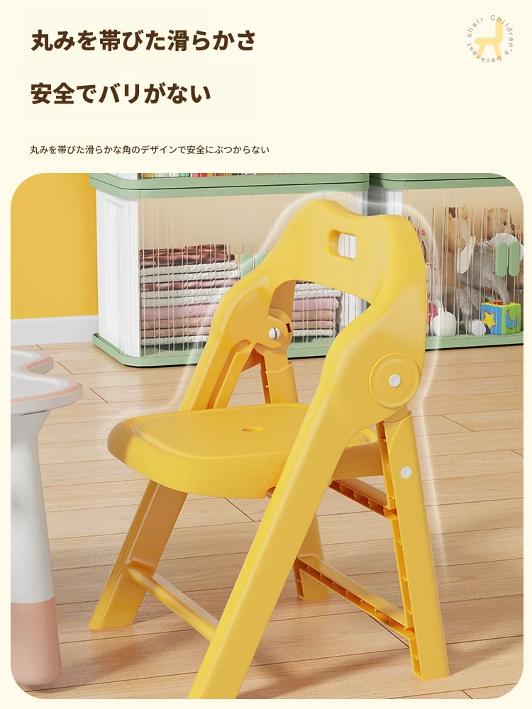 家庭用折りたたみ小椅子 - 滑り止め加工のプラスチック製!リビングや幼稚園で大活躍!赤ちゃんの食事にもぴったりの背もたれ付き!安心・安全な座り心地をお楽しみください!