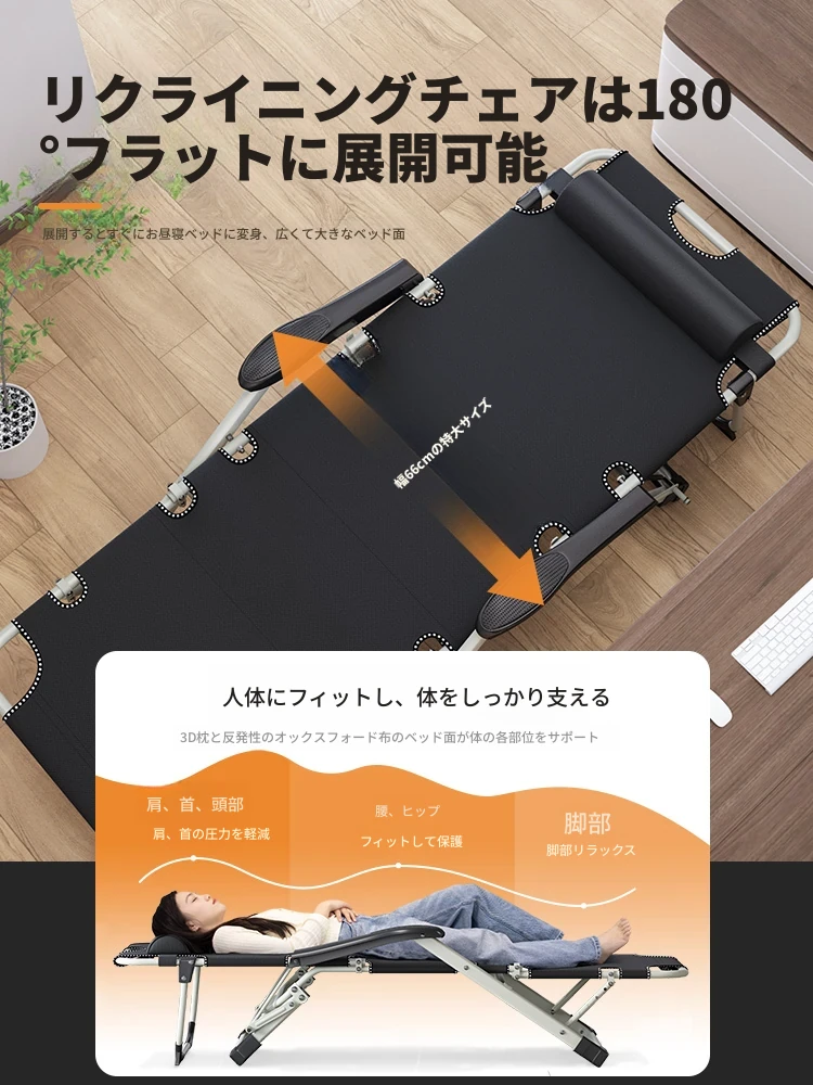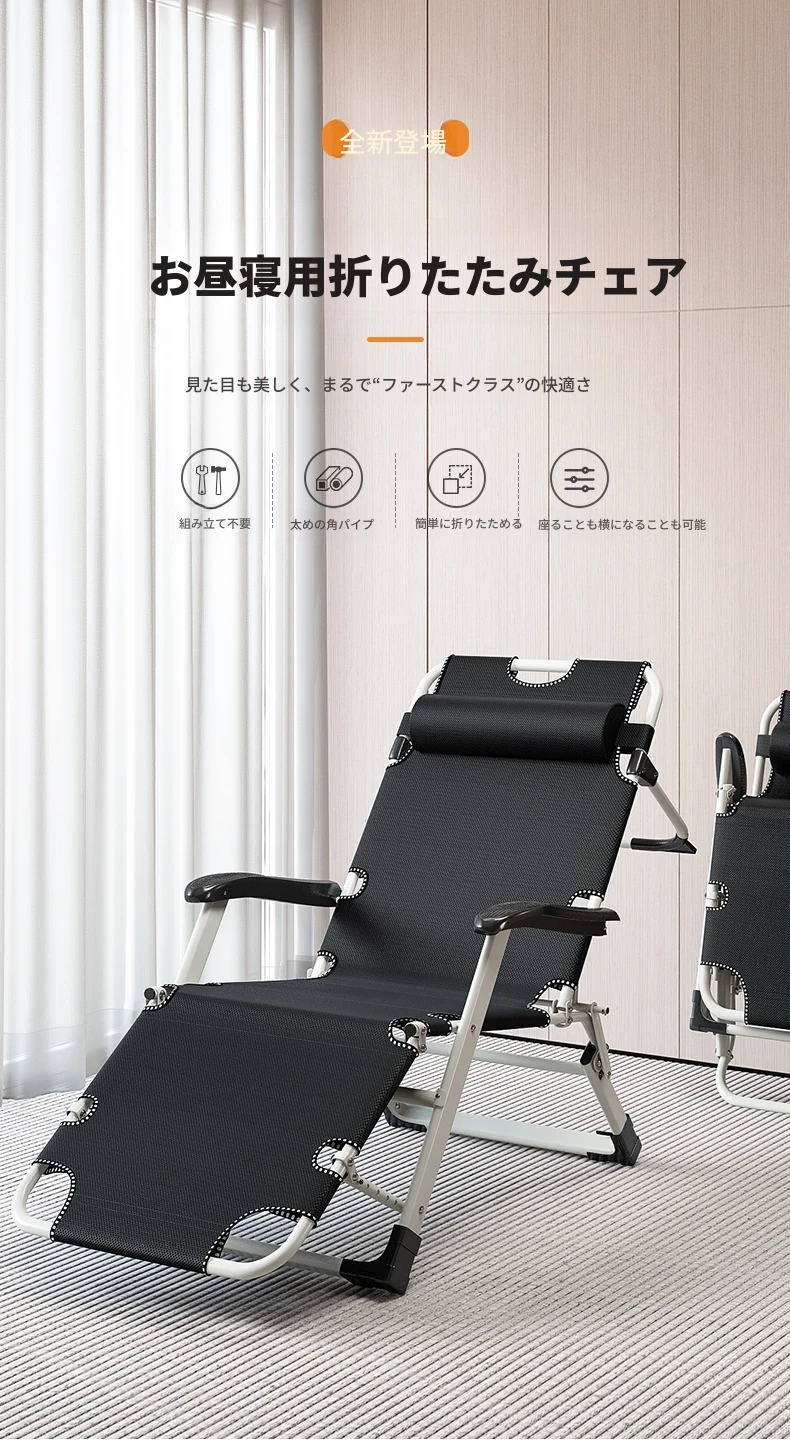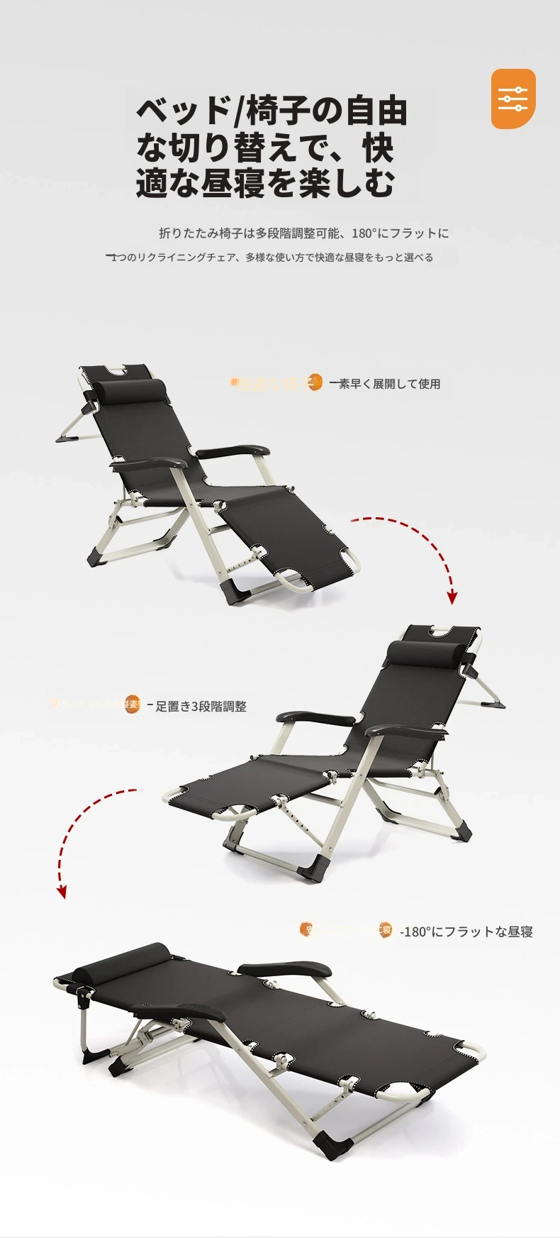 折りたたみ式リクライニングチェア|オフィスや自宅での快適な昼寝に最適!夏のバルコニーでリラックスできる、座り心地抜群の二用途チェア。あなたのくつろぎタイムをサポートします!