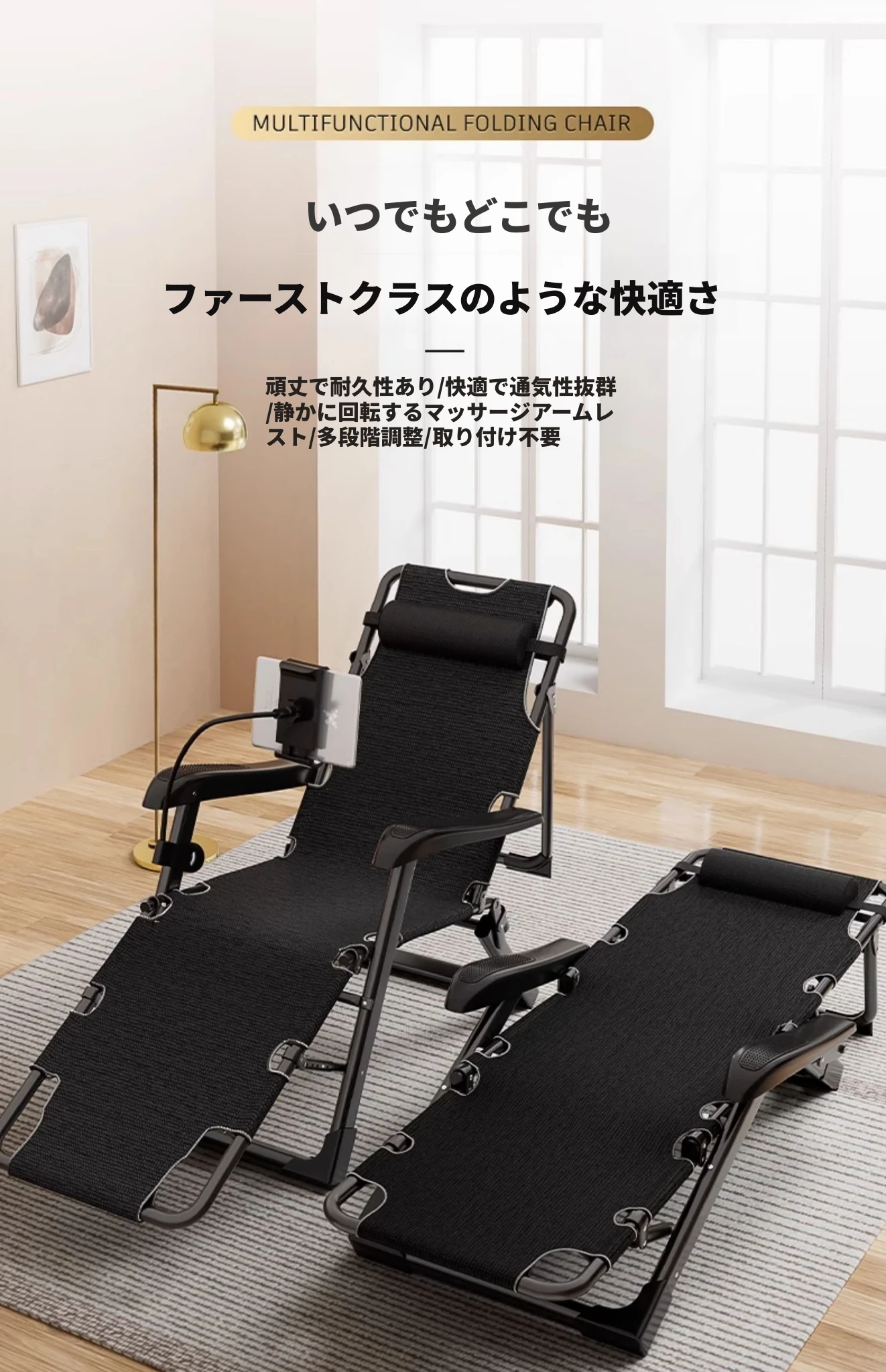 折りたたみ式リクライニングチェア - オフィスや宿舎に最適な昼寝神器!座っても寝ても快適、疲れを癒すリラックスソファ。コンパクトで持ち運びも簡単、あなたの作業効率をアップ!