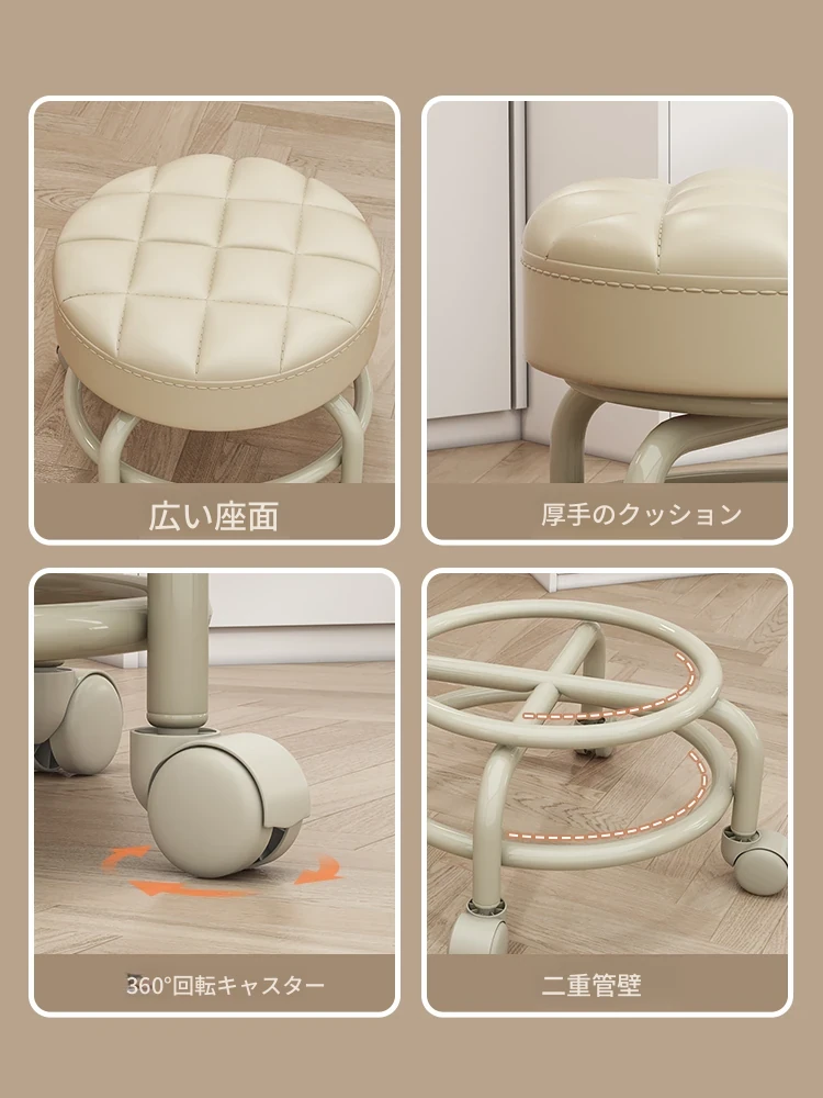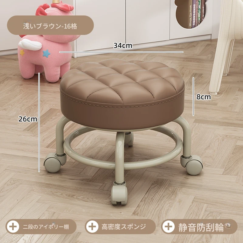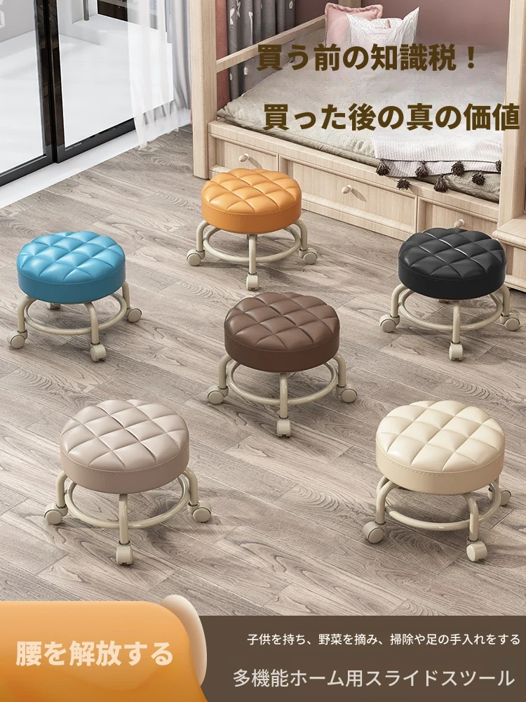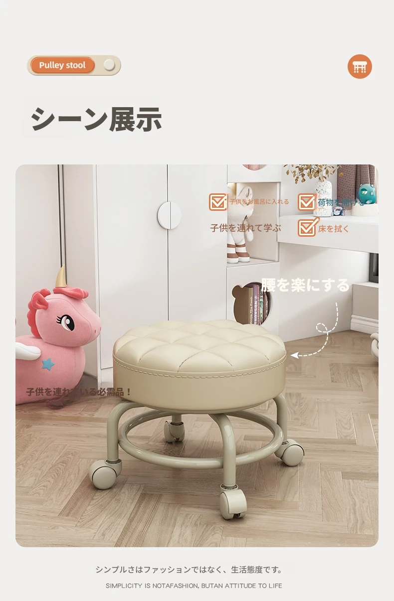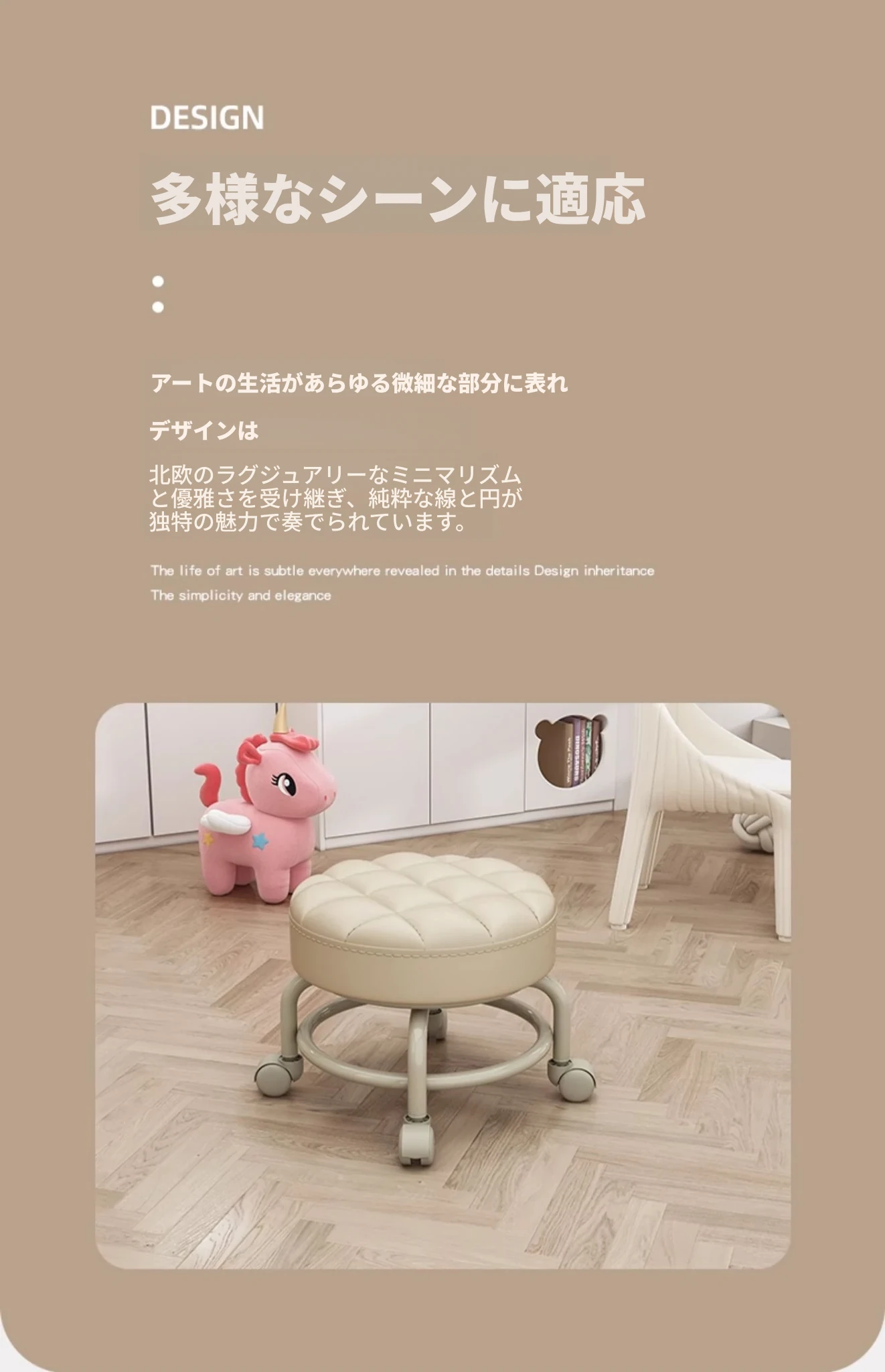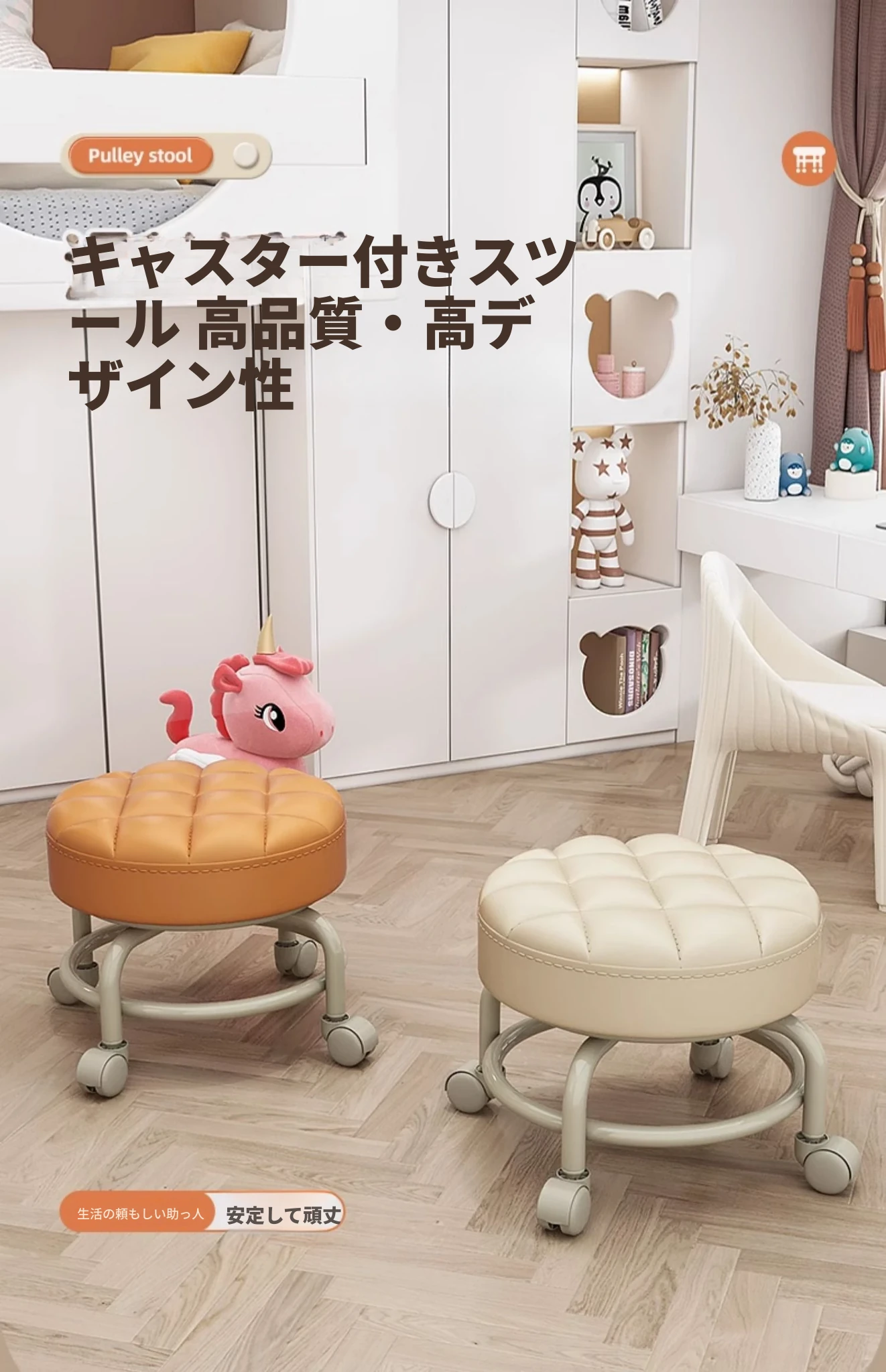 子供用学習椅、360度回転キャスター付きのスツール!お家で使える便利な滑り台、赤ちゃんのお風呂やお世話に最適な低い椅子。美しい仕上げの円形スツールで、楽しい育児をサポートします!