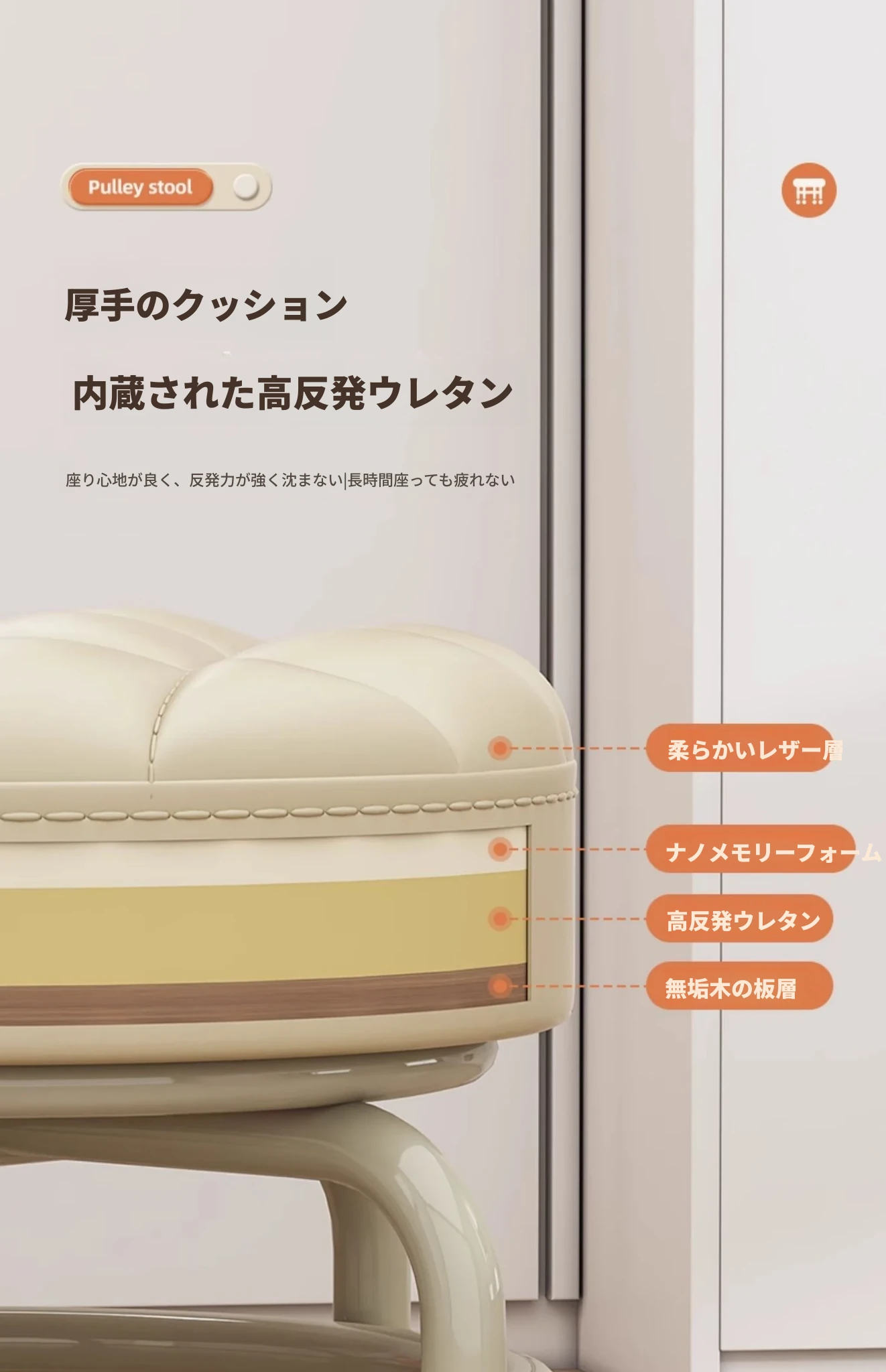 【ダブルレイヤーアイボリーラック-厚手クッション】アイボリー-耐摩耗防傷ホイール