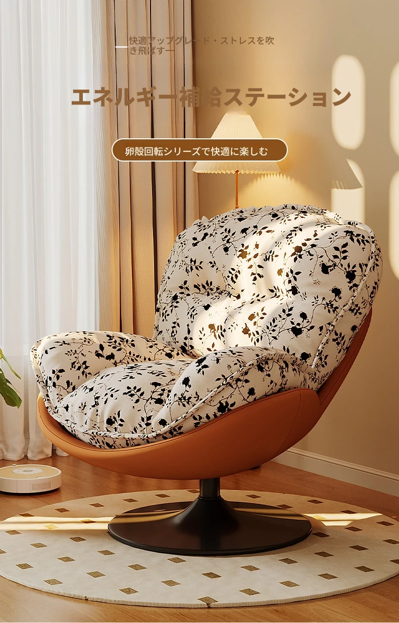 リラックスできる回転式卵型ソファチェア|現代的なデザインのリクライニング椅子|2025年新作|バルコニーやリビングに最適な一人用ソファ|快適に眠れる休息空間をお届け!