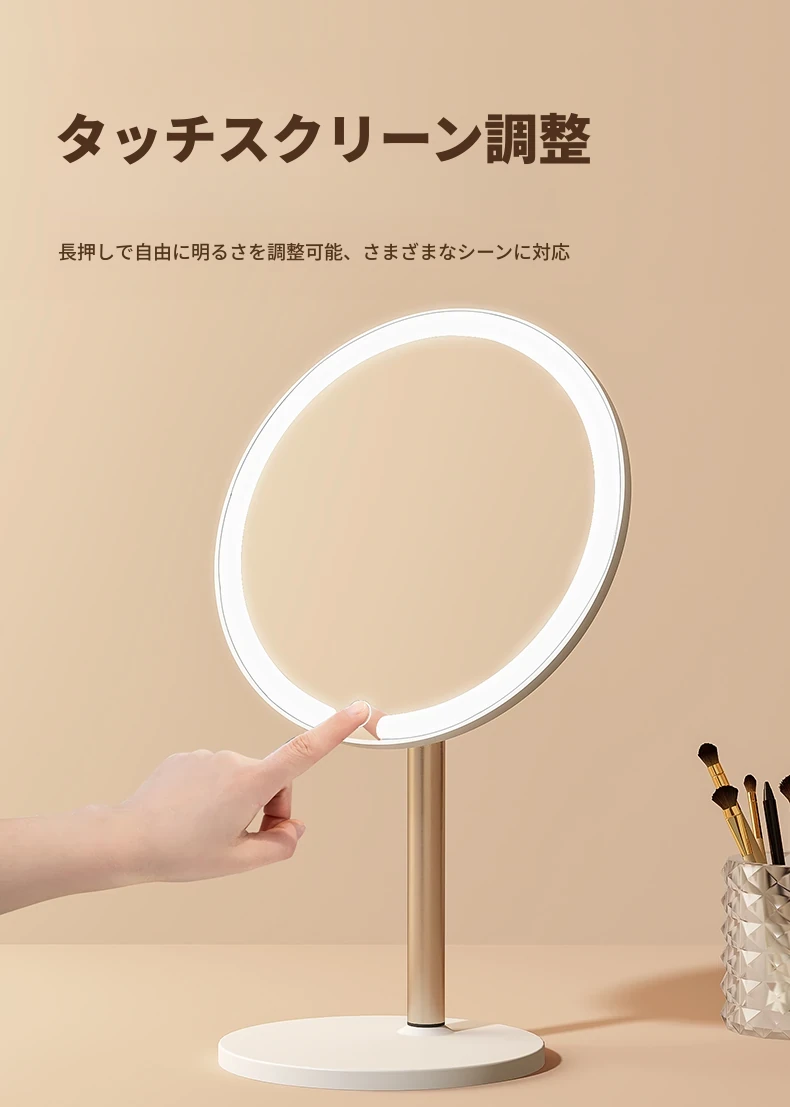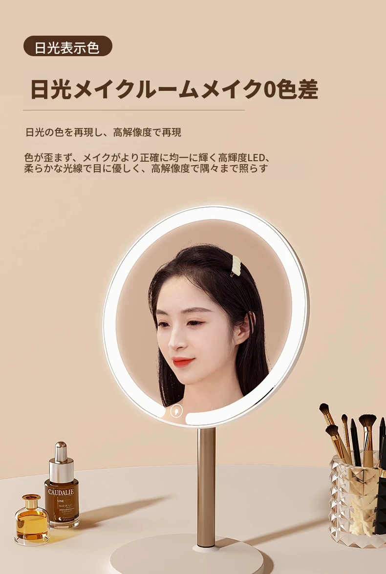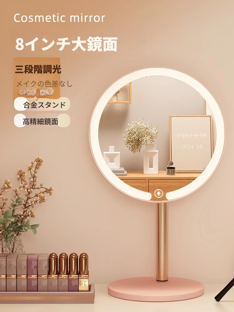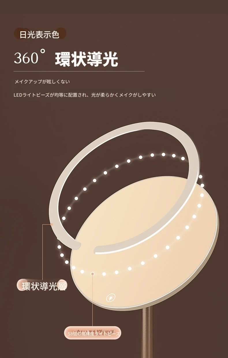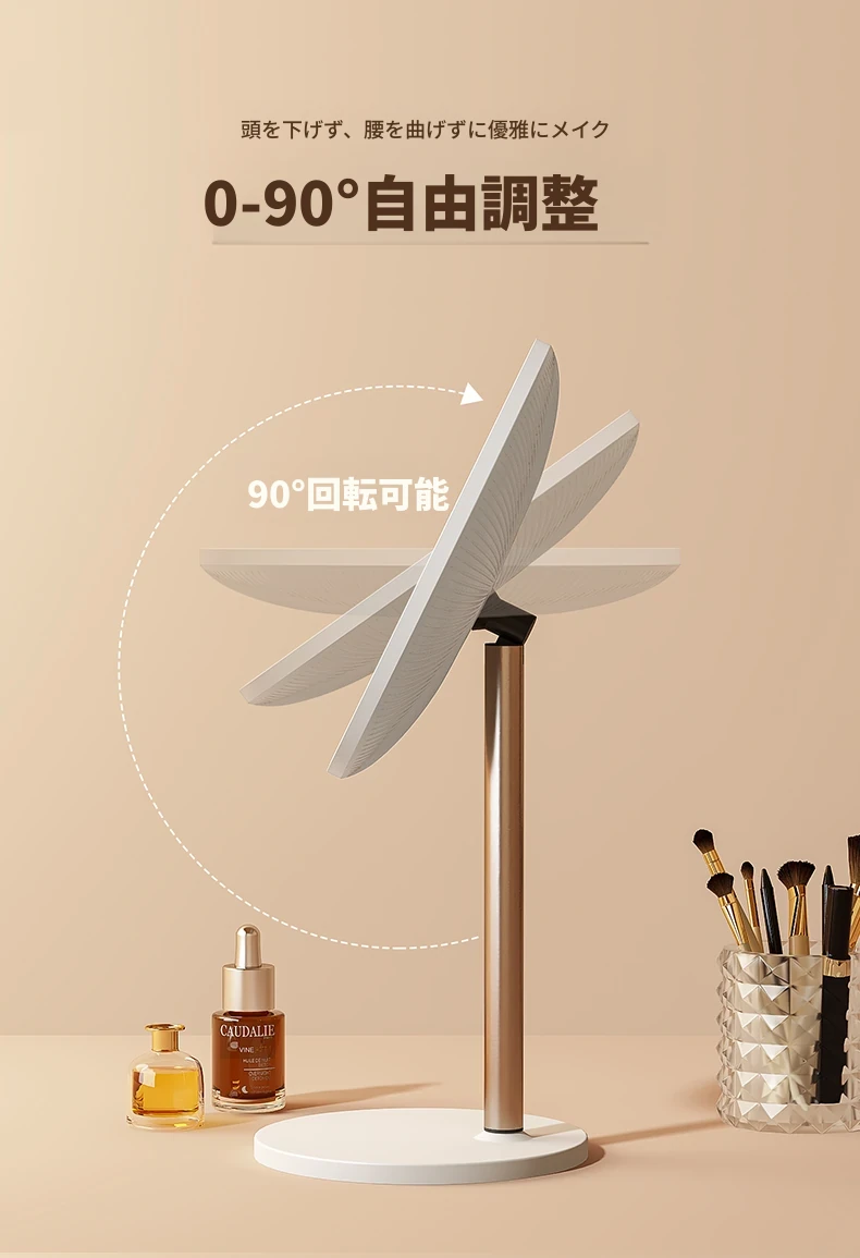 LEDライト付き化粧鏡|家用・学生寮・オフィスに最適!デスクトップ用の便利な携帯型、回転可能なメイクアップミラーで、どこでも美しさを引き立てます!