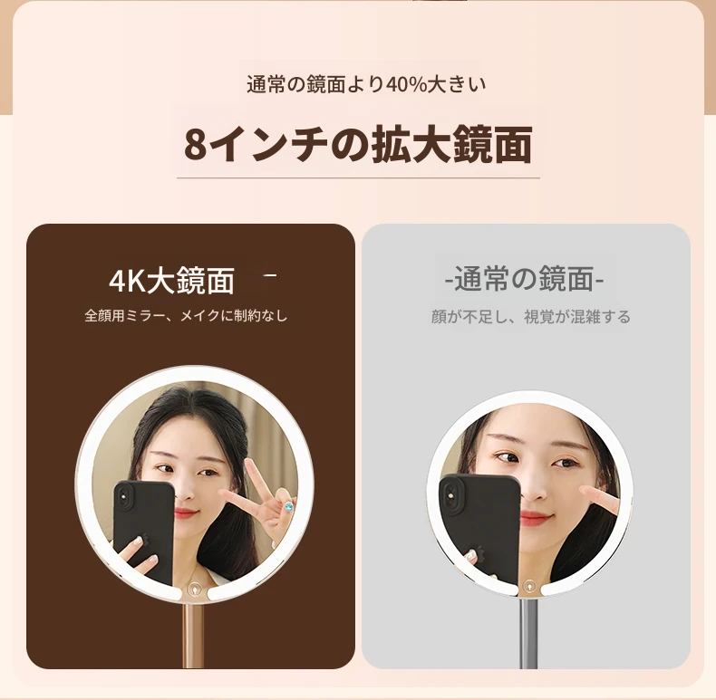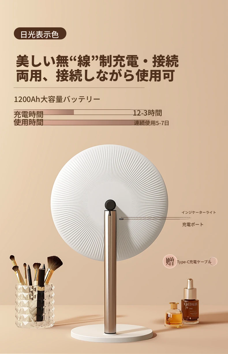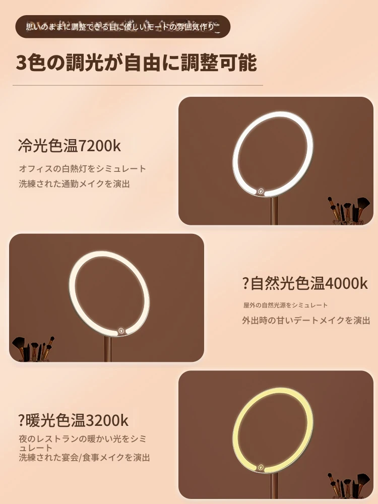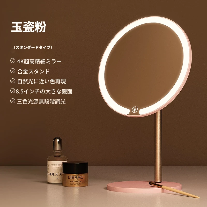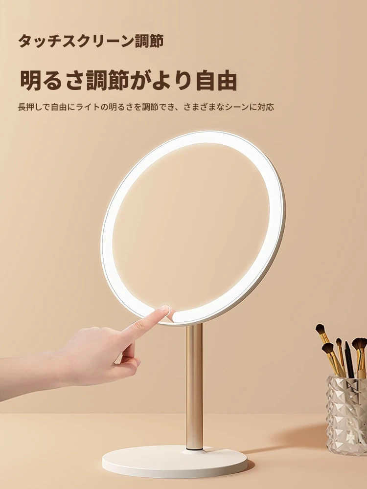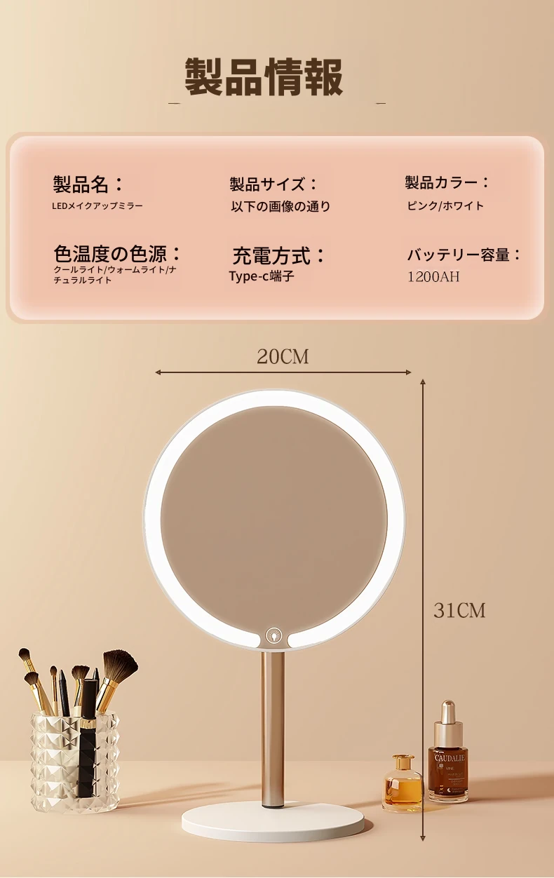 LEDライト付き化粧鏡|家用・学生寮・オフィスに最適!デスクトップ用の便利な携帯型、回転可能なメイクアップミラーで、どこでも美しさを引き立てます!