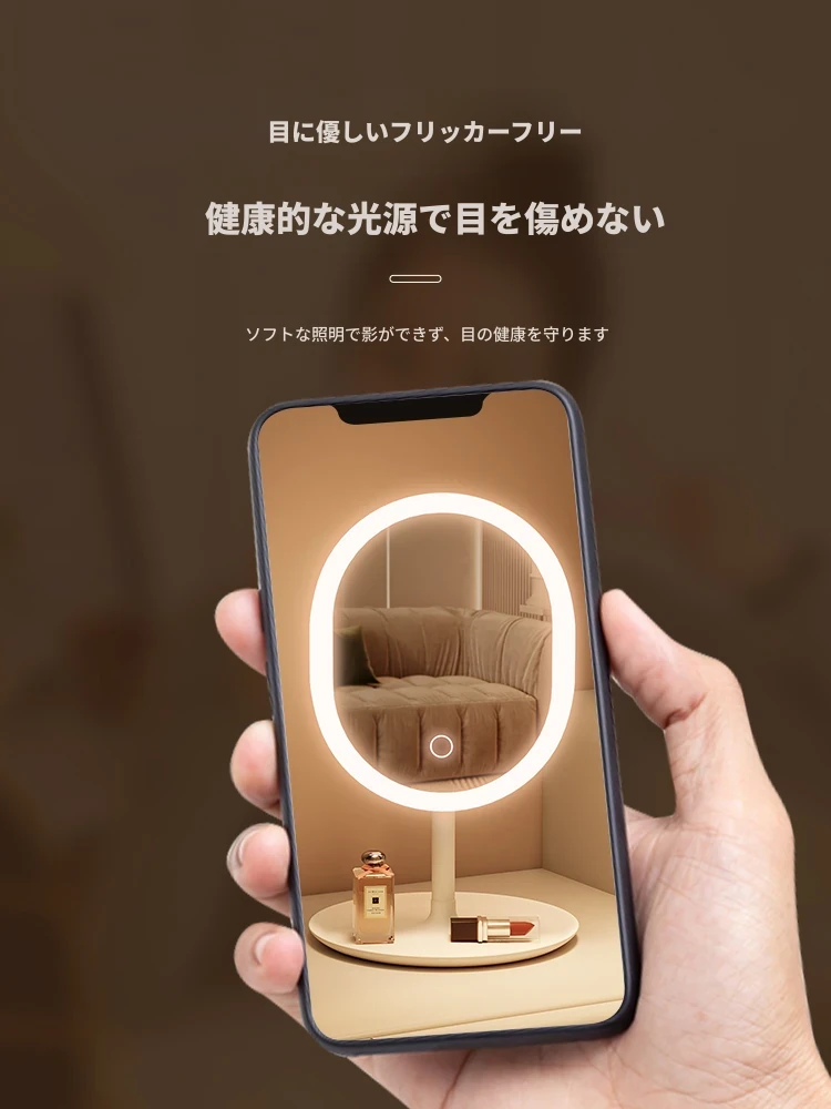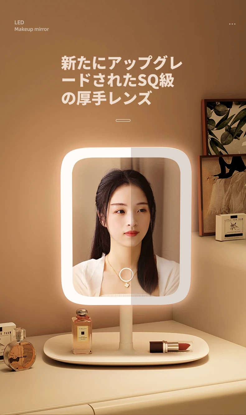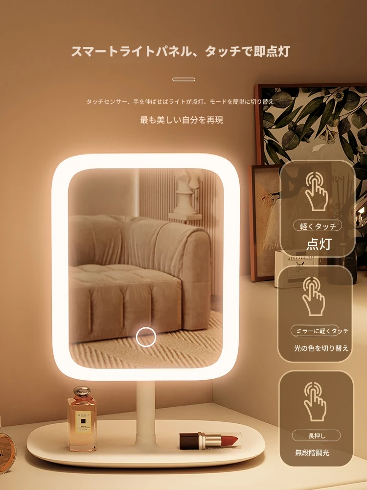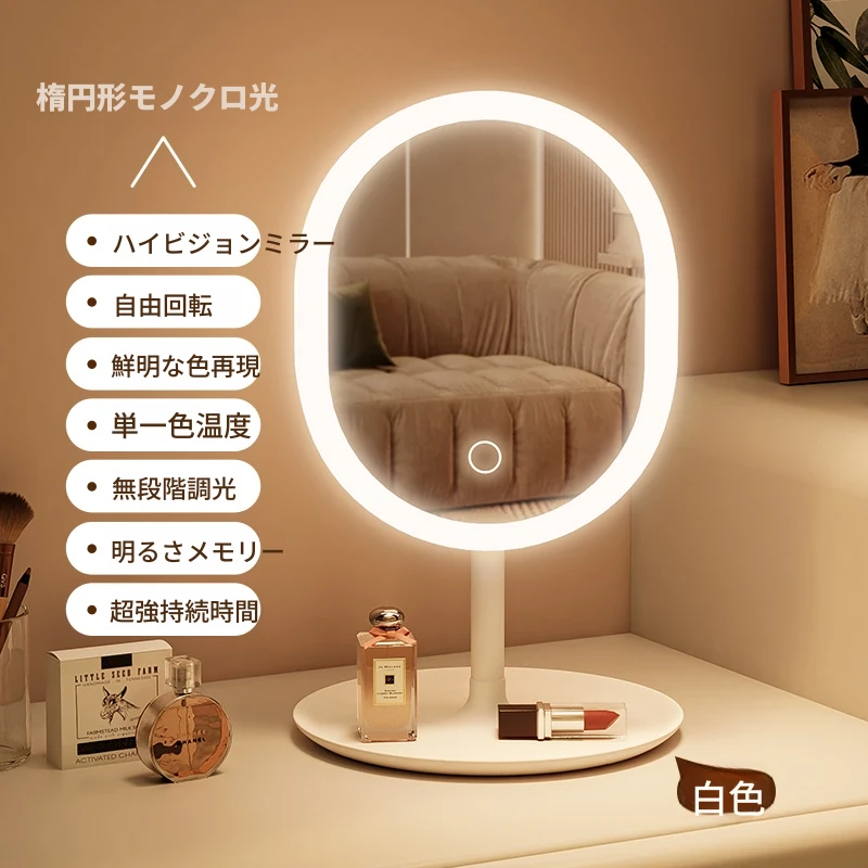 LED照明付き化粧鏡 - 家庭、学生寮、オフィスに最適!持ち運びも便利な超高精細デスクトップメイクアップミラーで、いつでもどこでも完璧なメイクをサポートします。