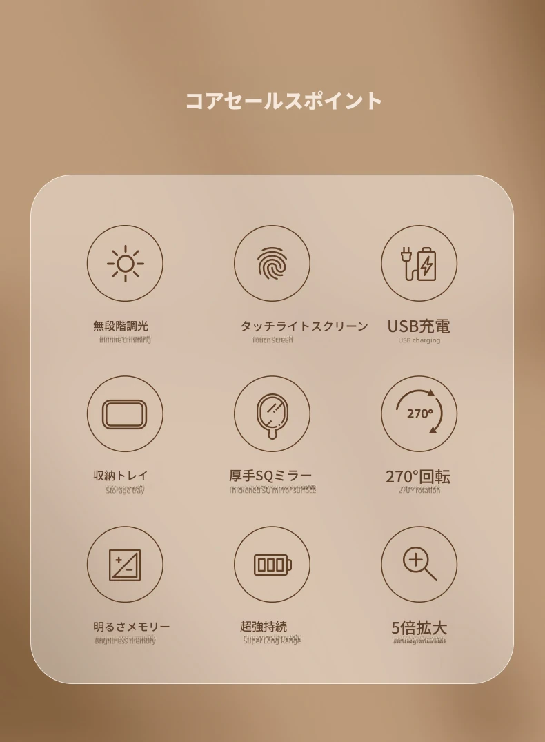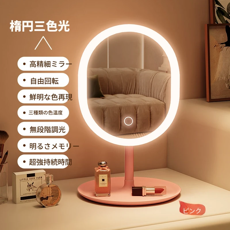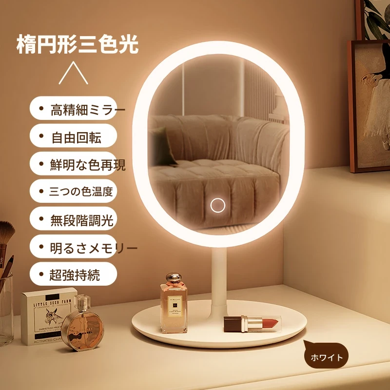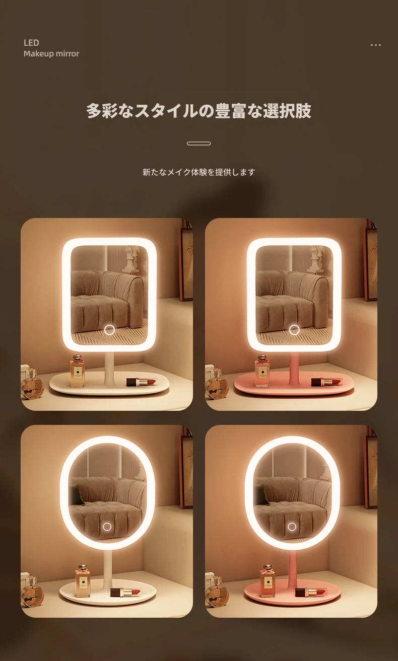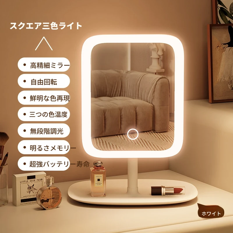LED照明付き化粧鏡 - 家庭、学生寮、オフィスに最適!持ち運びも便利な超高精細デスクトップメイクアップミラーで、いつでもどこでも完璧なメイクをサポートします。