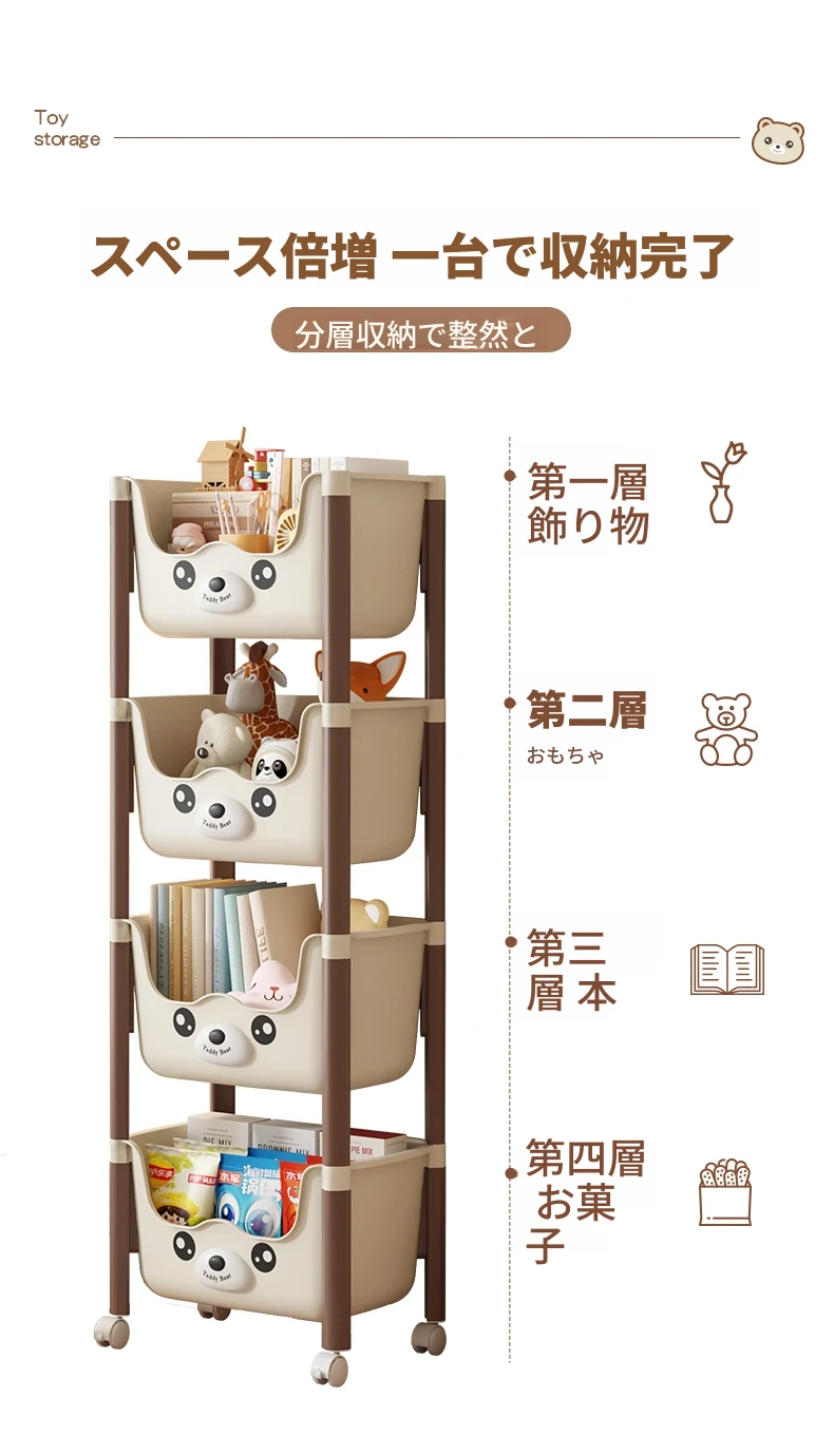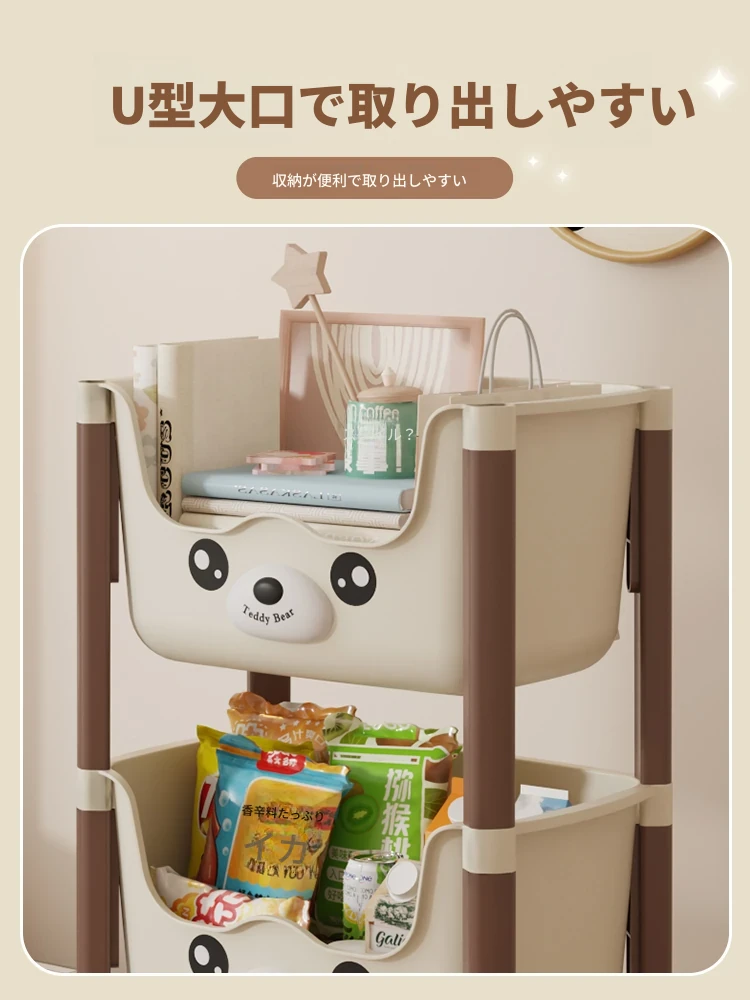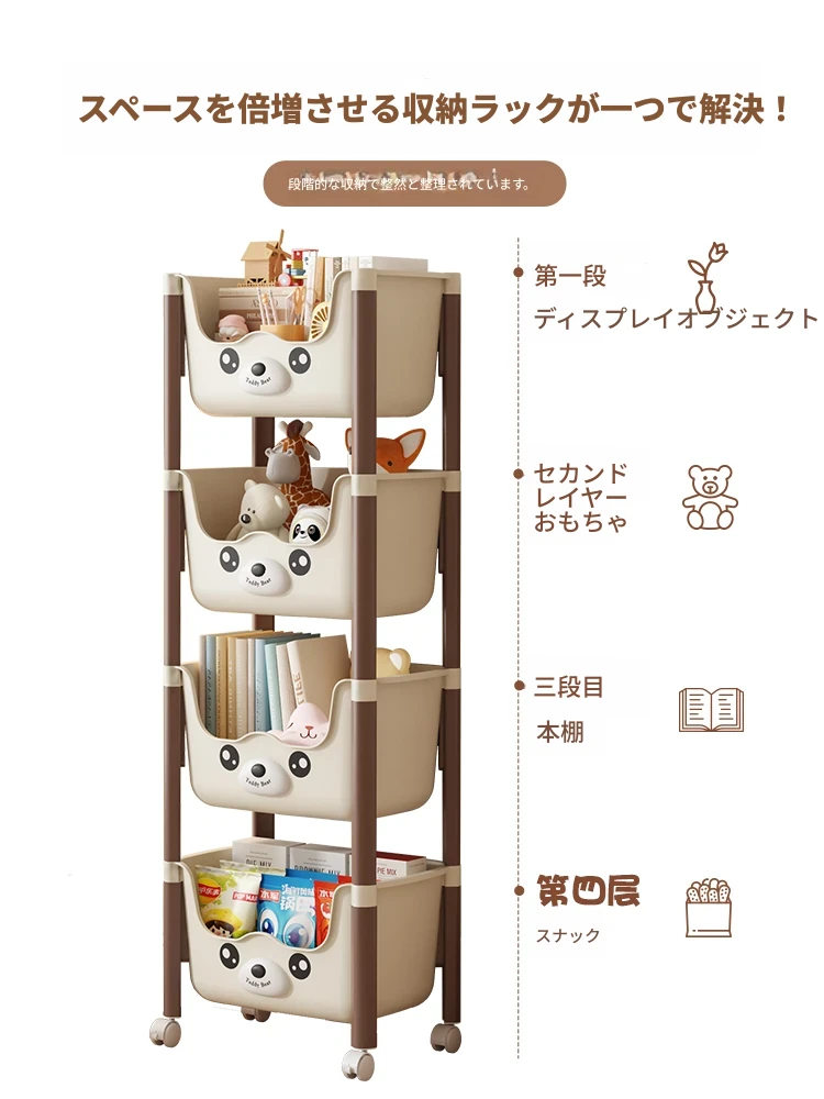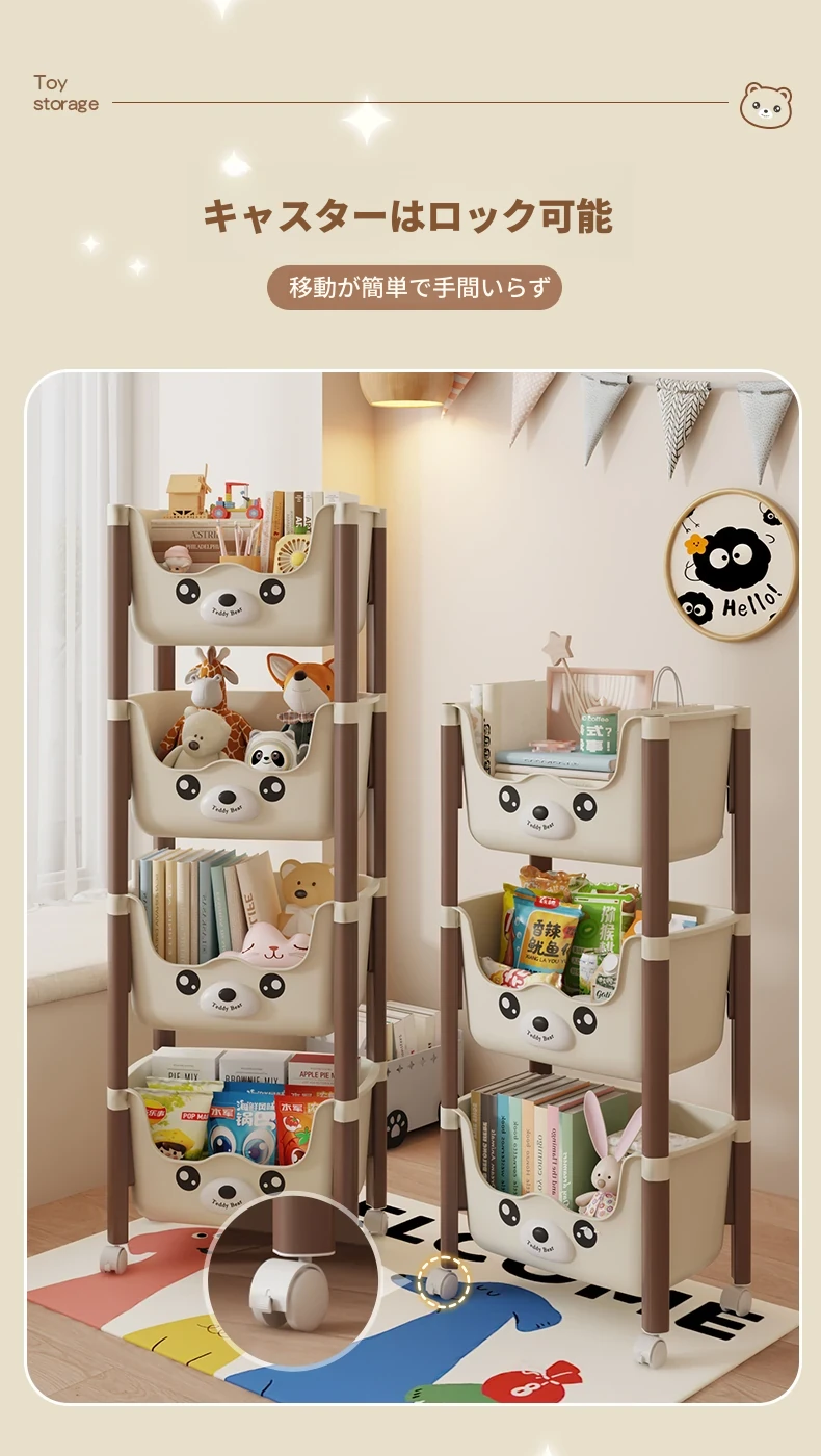 移動式ブックシェルフ!多段プラスチック製の小型カートで、スナックや雑貨を整理整頓。デスクサイドでの読書や収納に最適なアイテムです!あなたの生活空間をより便利に、美しく演出します。