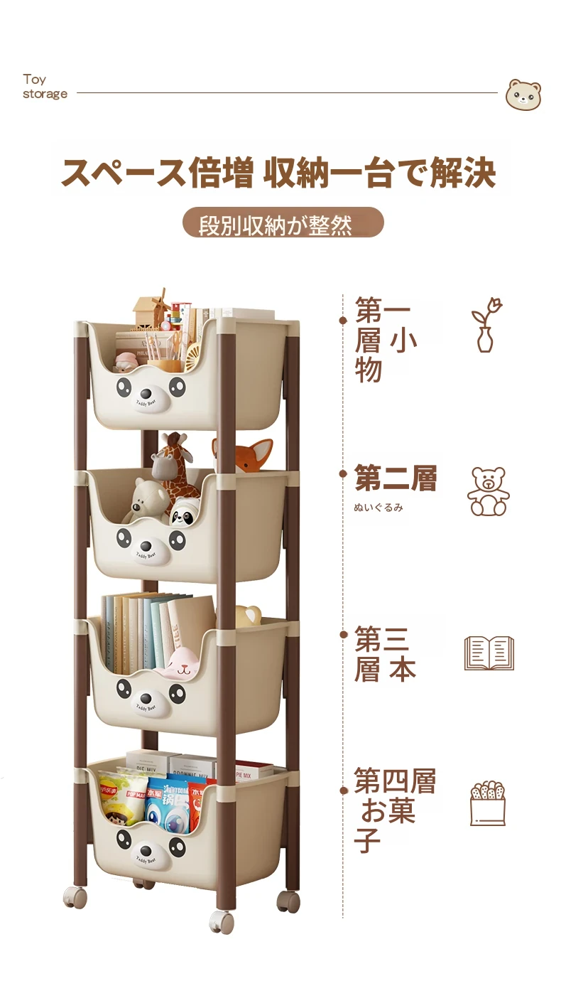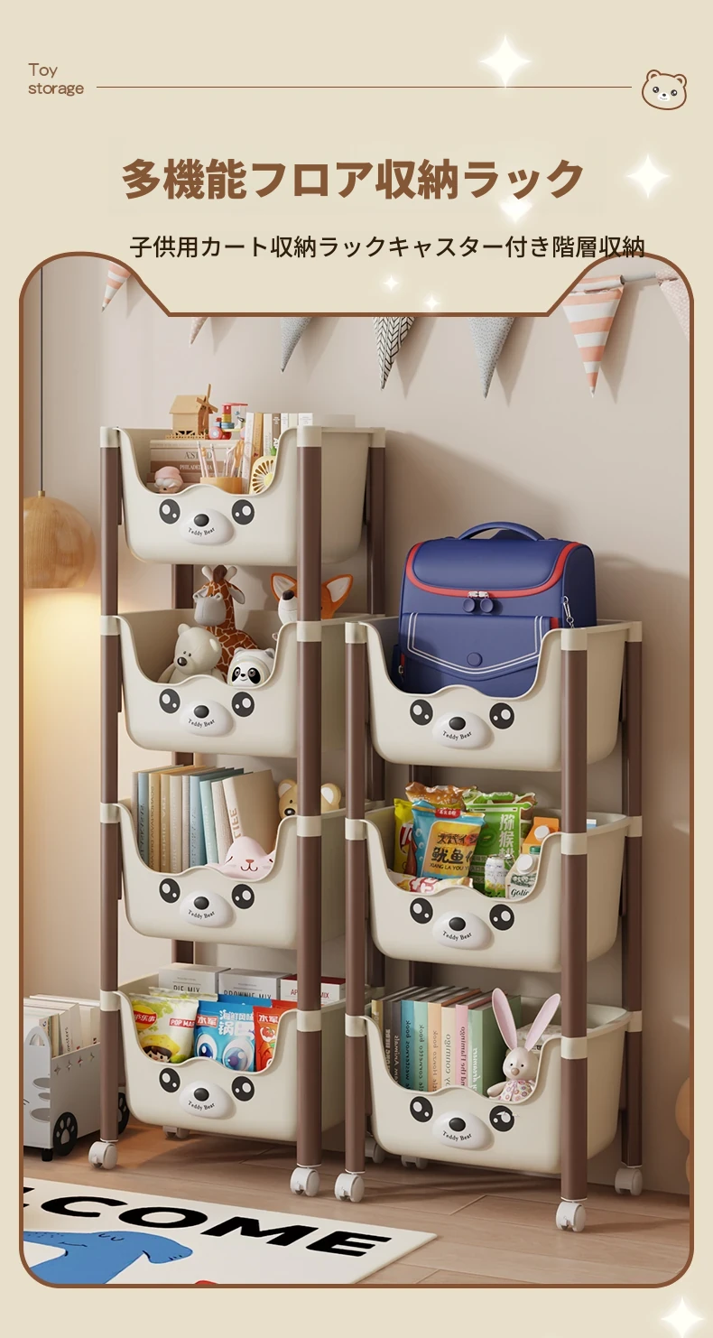 子供向け移動式本棚!おもちゃや収納に最適な多段式ラック。キャスター付きで簡単に移動可能なシンプルなフロア本棚。お部屋をスッキリ整頓し、楽しい読書時間を提供します!
