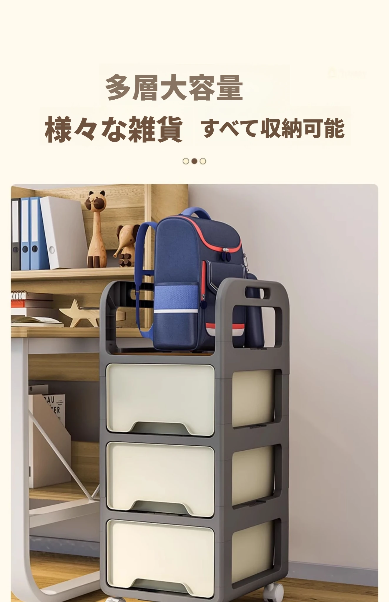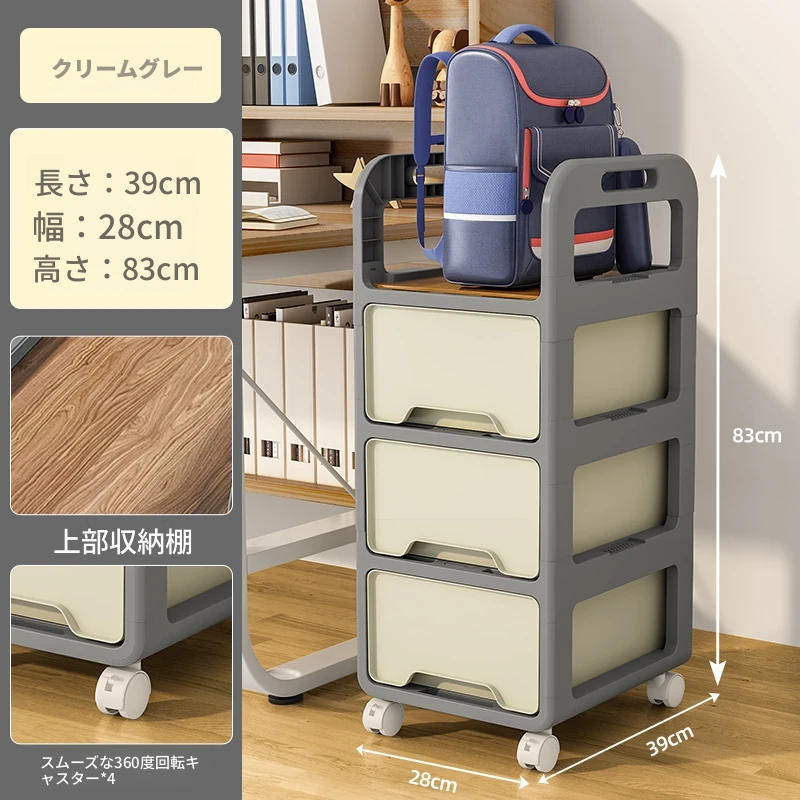 【28cm幅】クリームグレー-三段キャスター付き