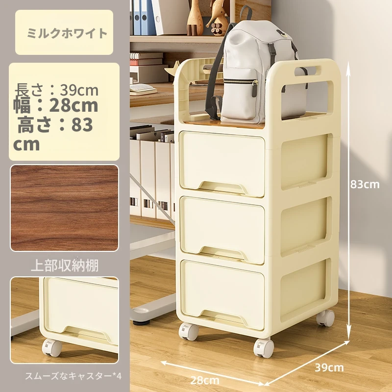 【28cm幅】クリームホワイト-四段キャスター付き