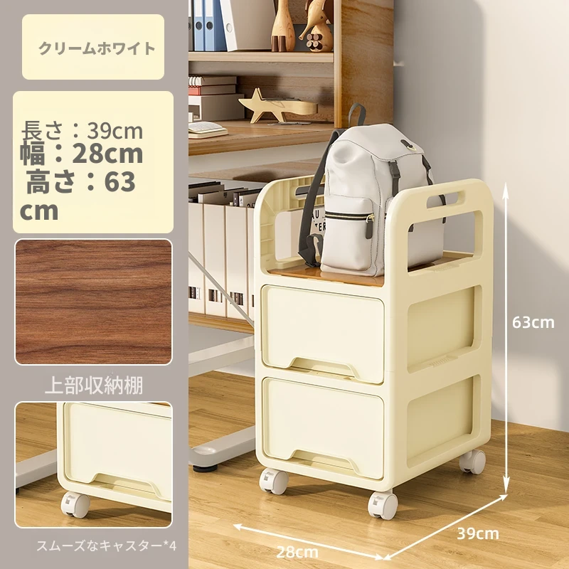 【28cm幅】クリームホワイト-二段キャスター付き