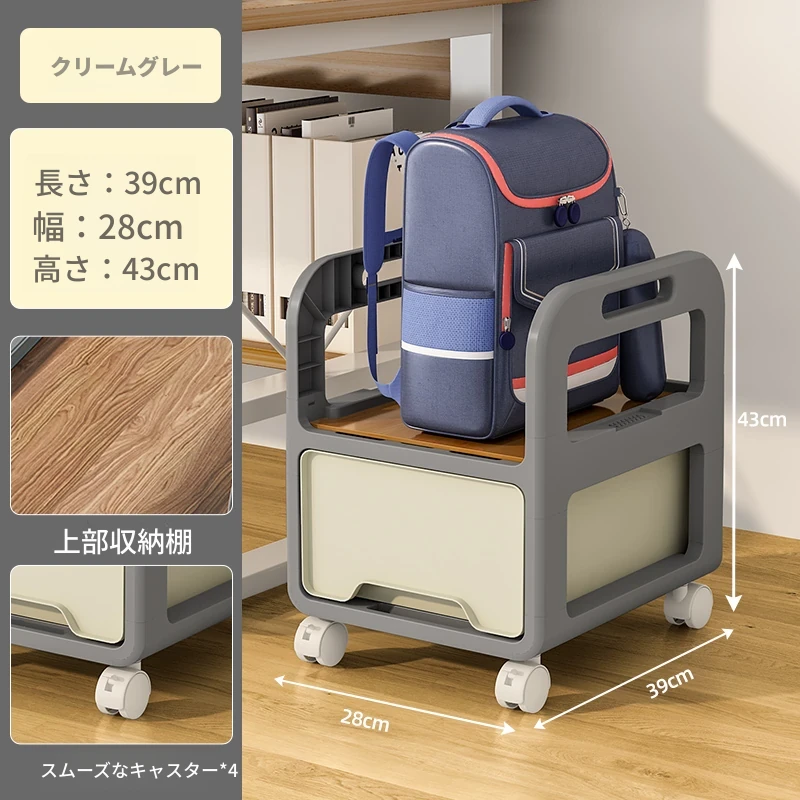【28cm幅】クリームグレー-二段キャスター付き