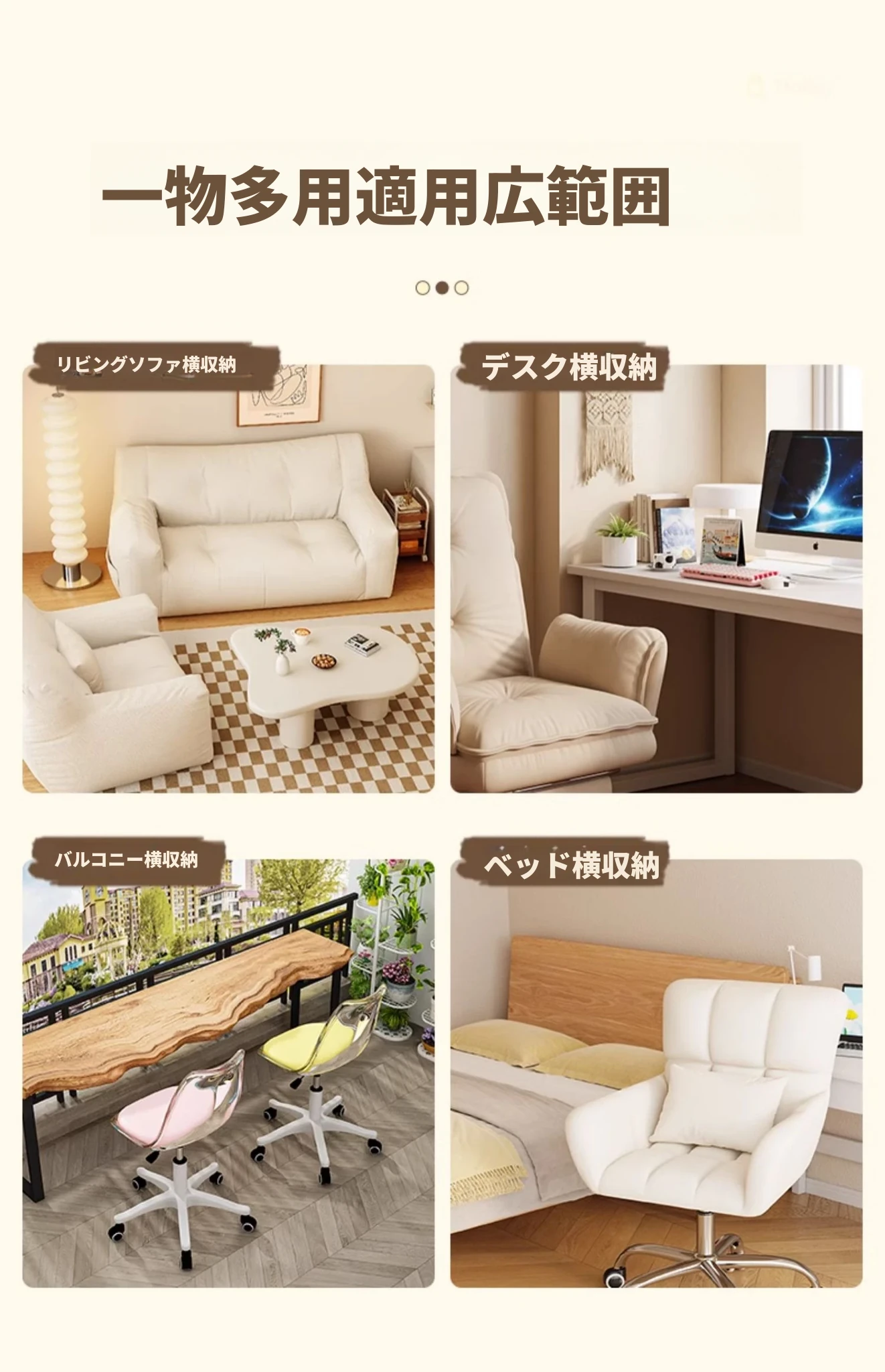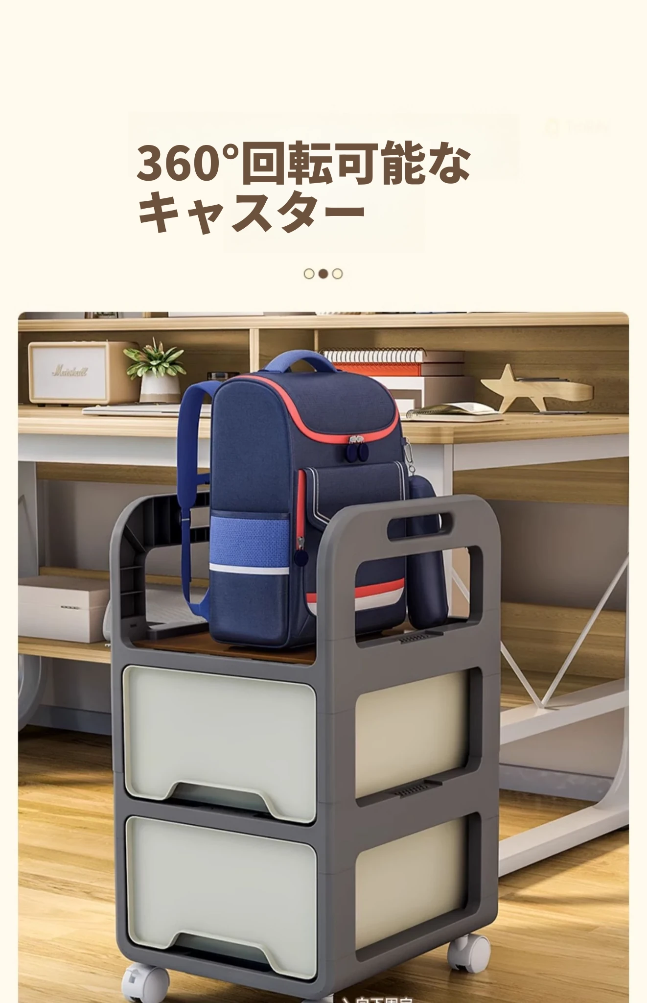 【32cm幅】クリームホワイト-二段キャスター付き