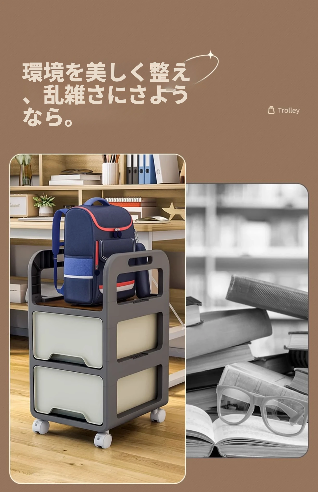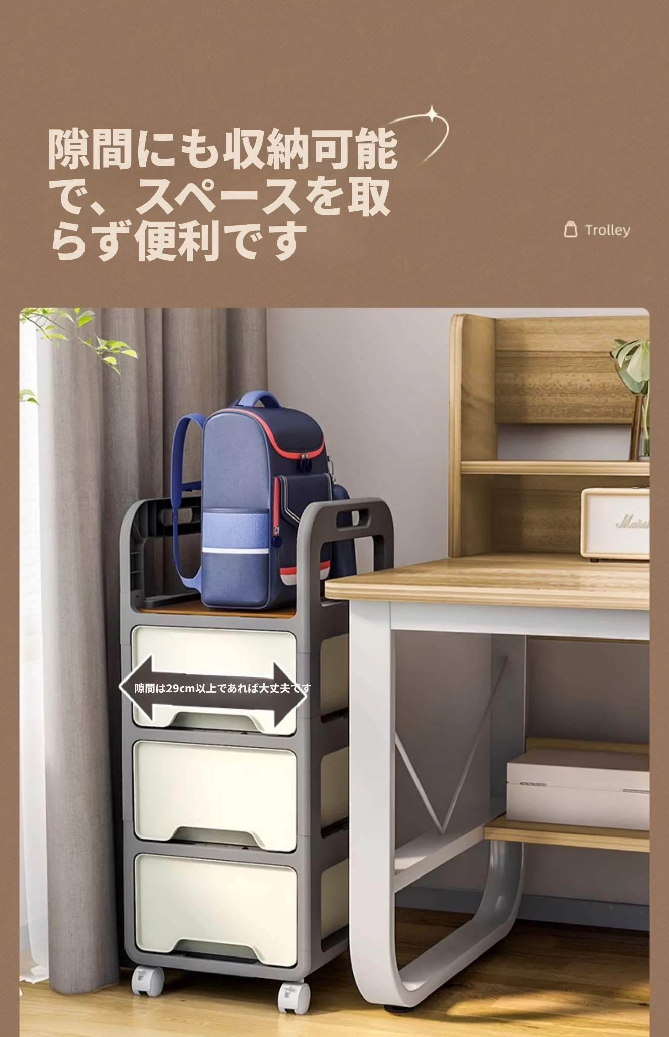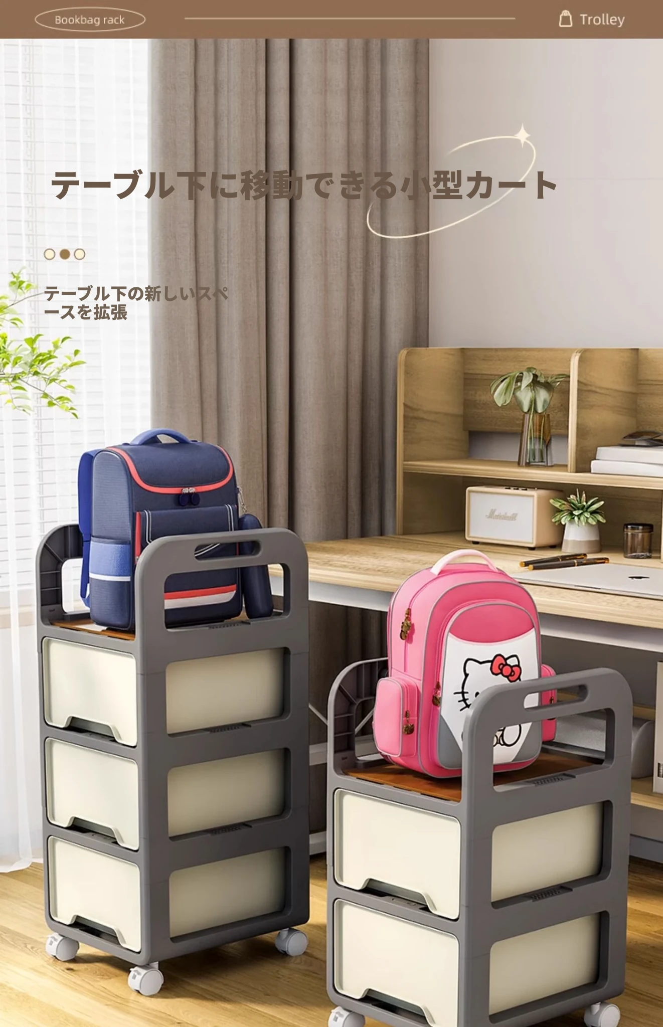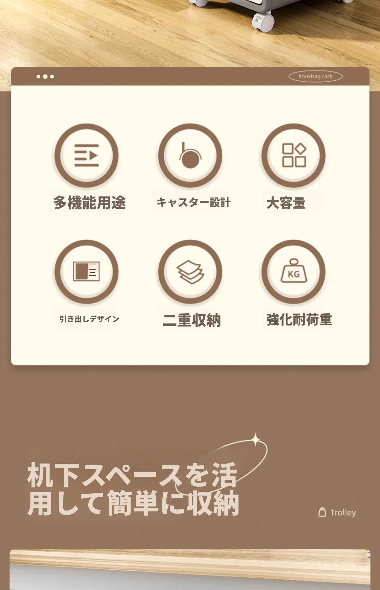 移動式書棚収納カート!多層設計で本や鞄をスッキリ収納、家での整理整頓に最適なアイテム!デスク下にぴったりフィットし、使いやすさ抜群の収納ラックです。
