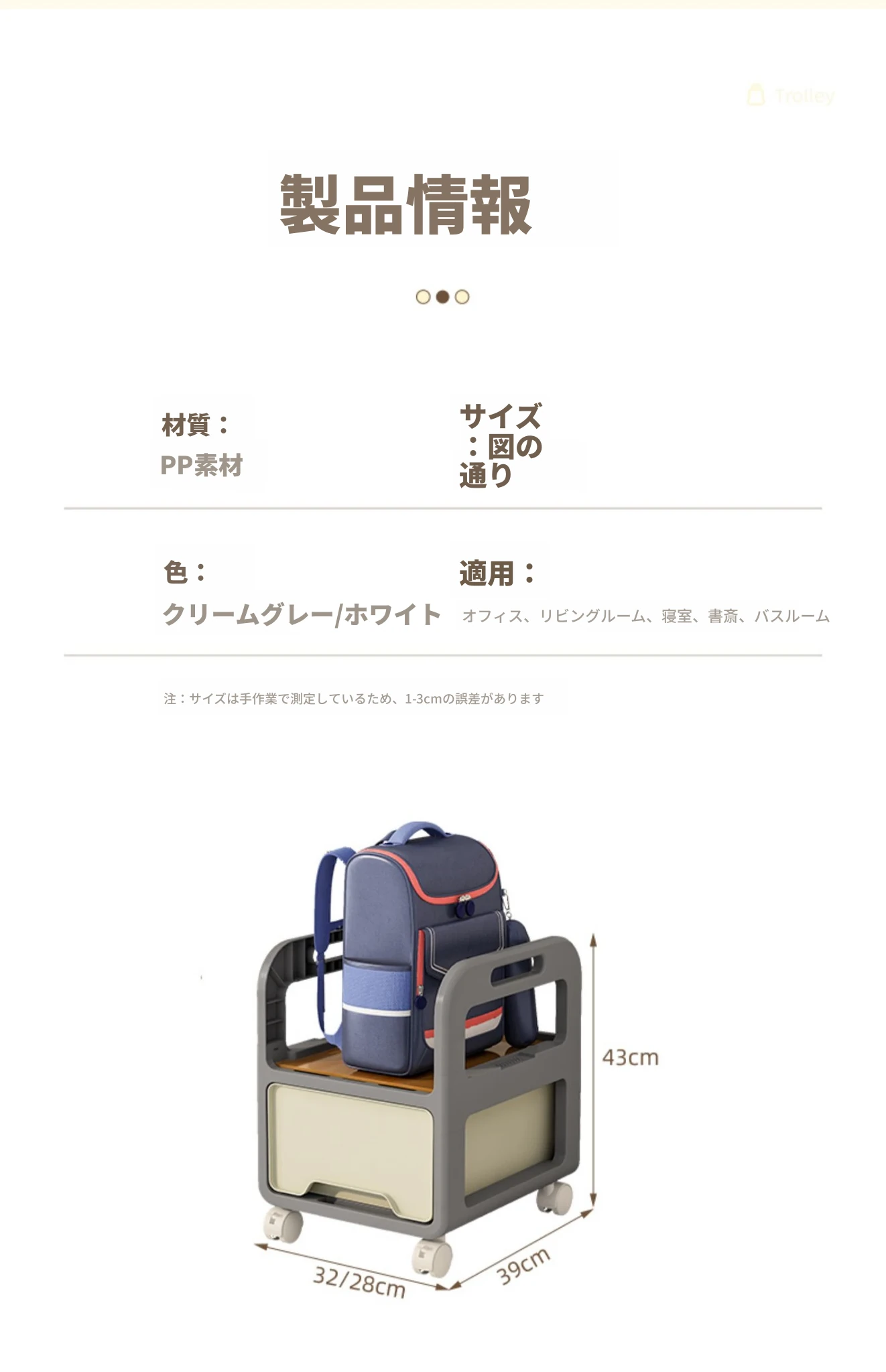 【32cm幅】クリームホワイト-三段キャスター付き