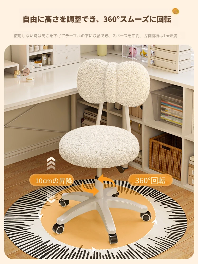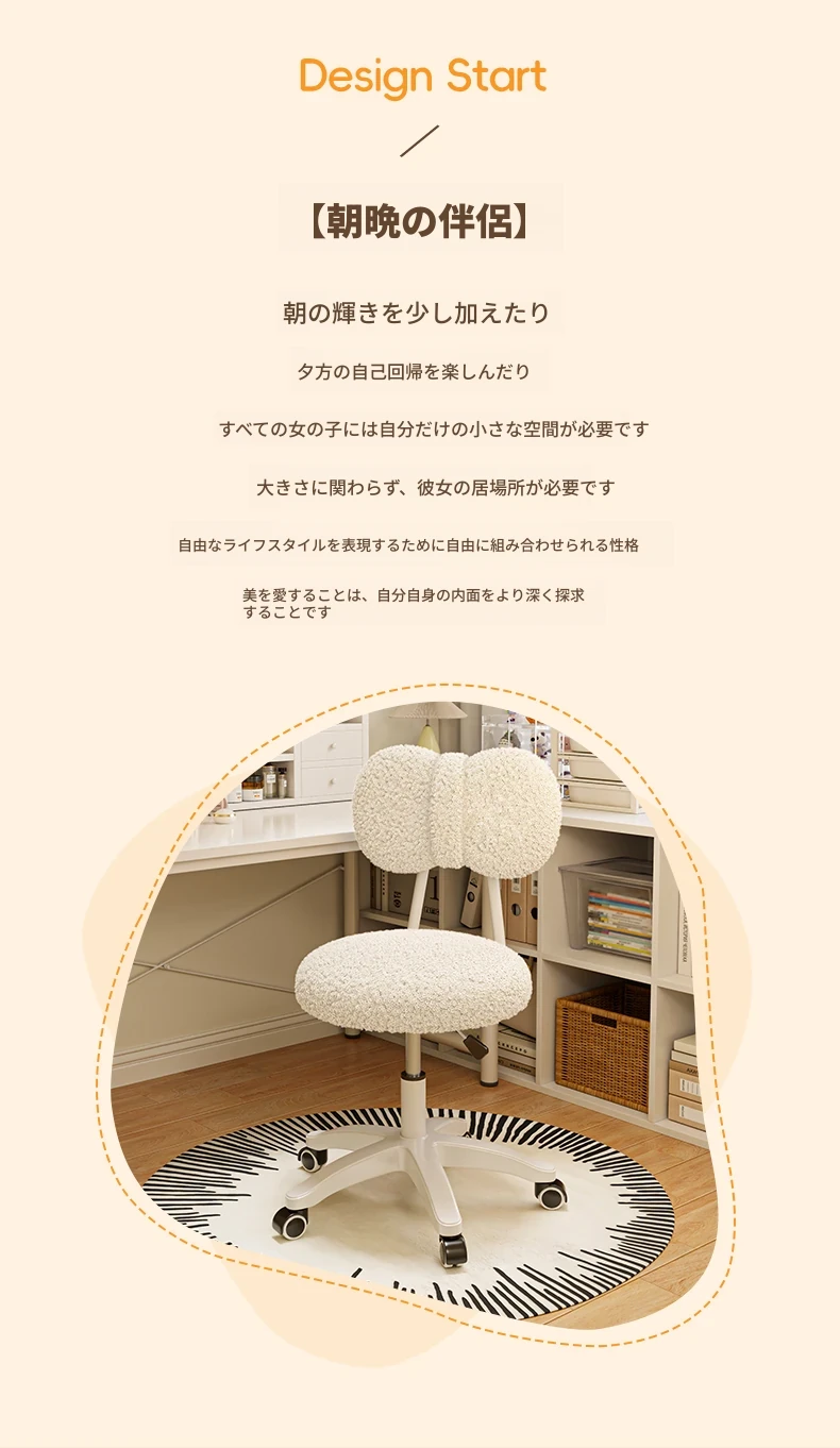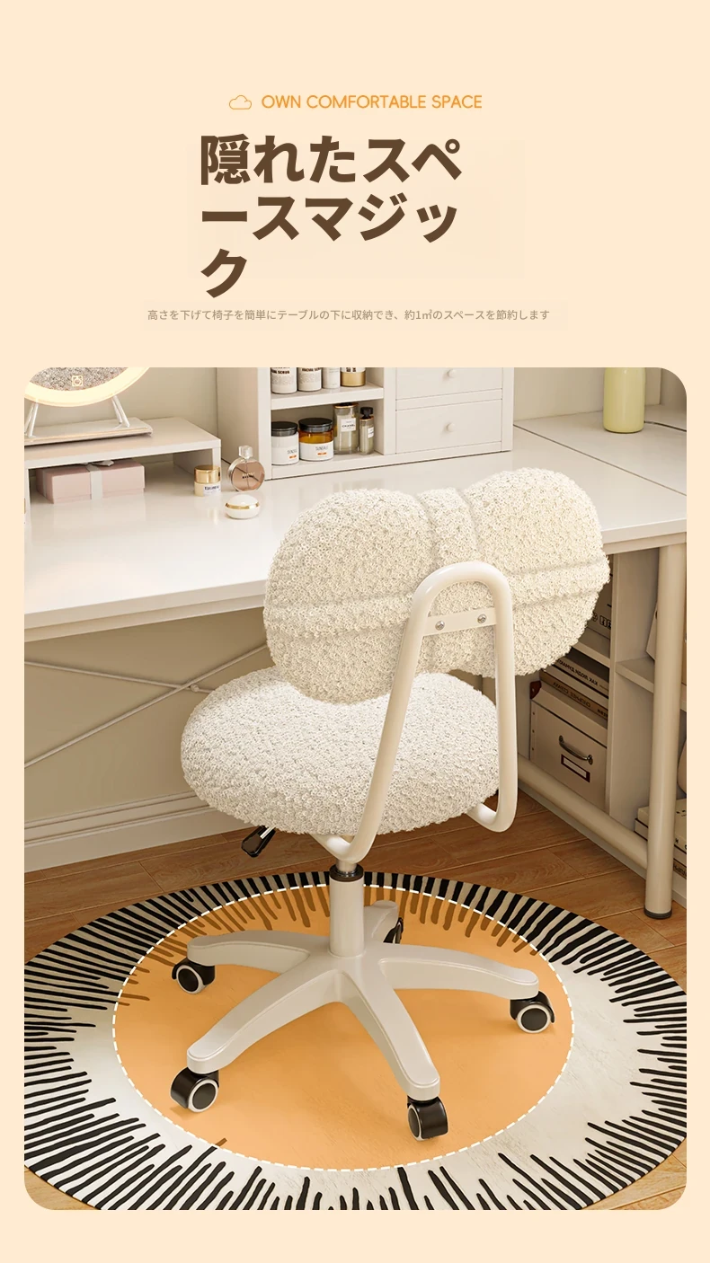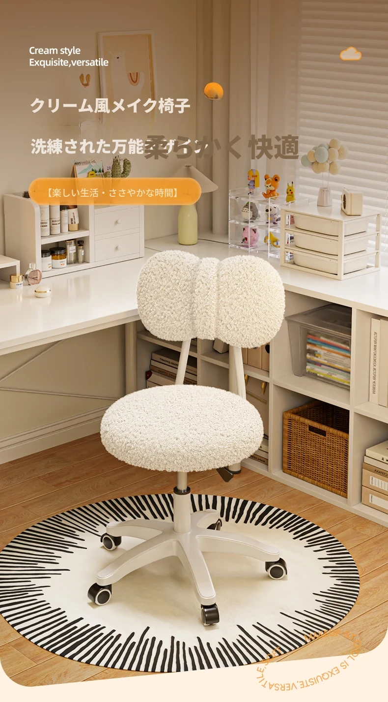 軽やかなラグジュアリー!モダンでシンプルなデザインの化粧台用スツール。小さな部屋にもぴったり!キャスター付きで移動も簡単、快適なメイクアップタイムをサポートします!