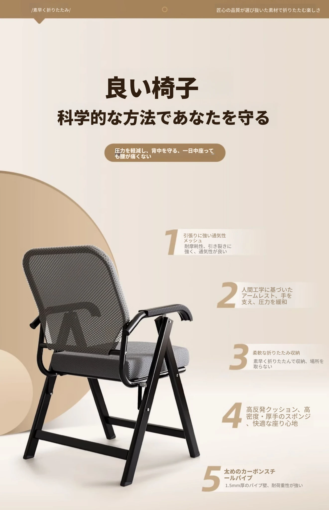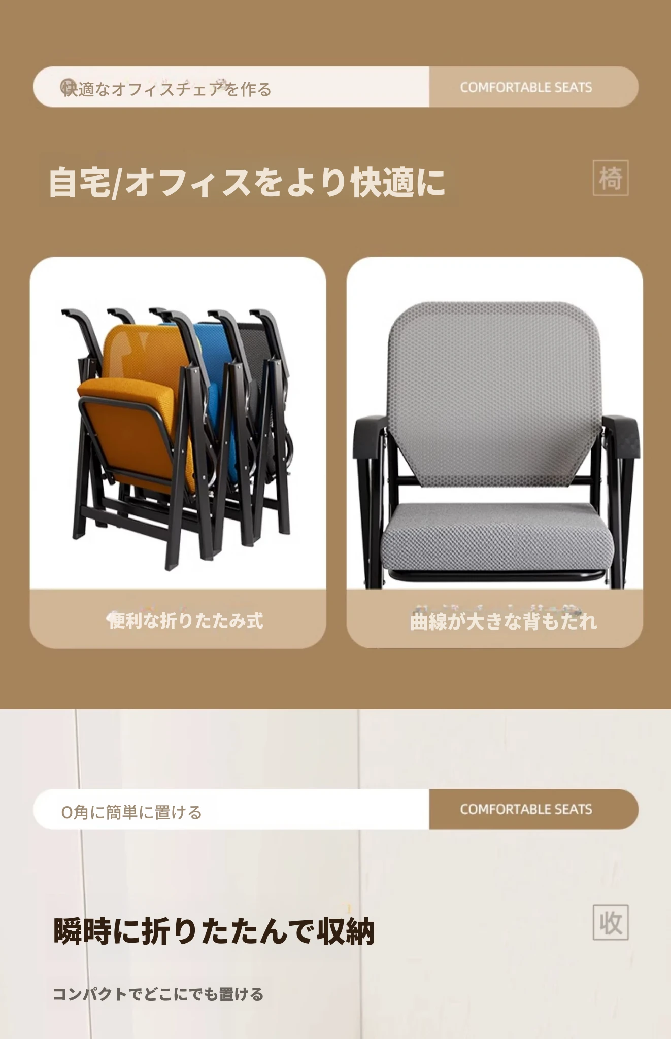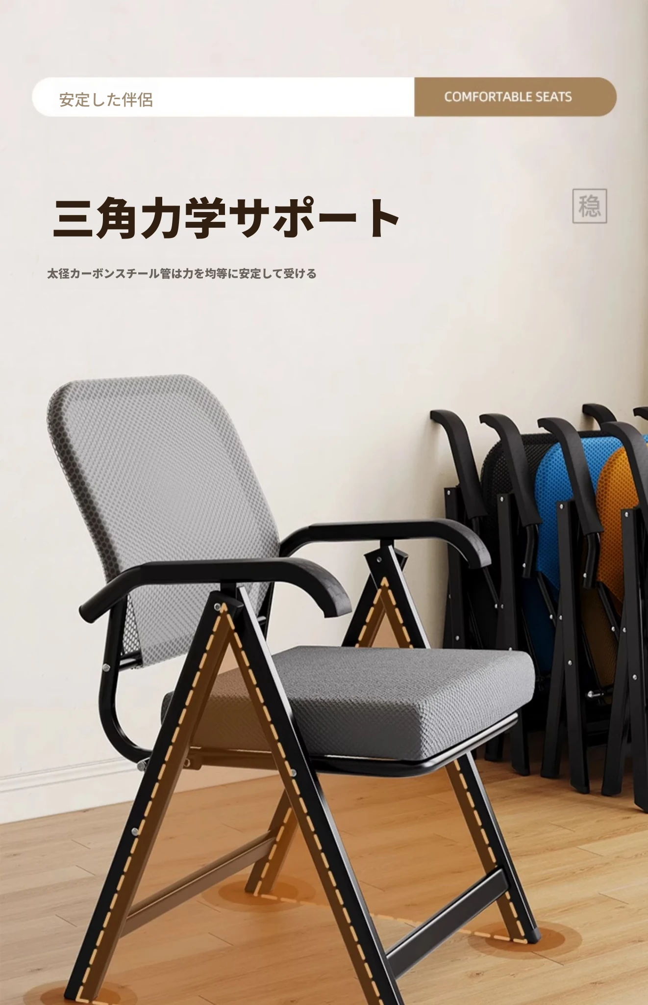 折りたたみオフィスチェア|会議・学習・研修に最適!快適な背もたれ付き|マージャンやレストランでも活躍する多機能パソコンチェア!収納も簡単でスペースを有効活用!