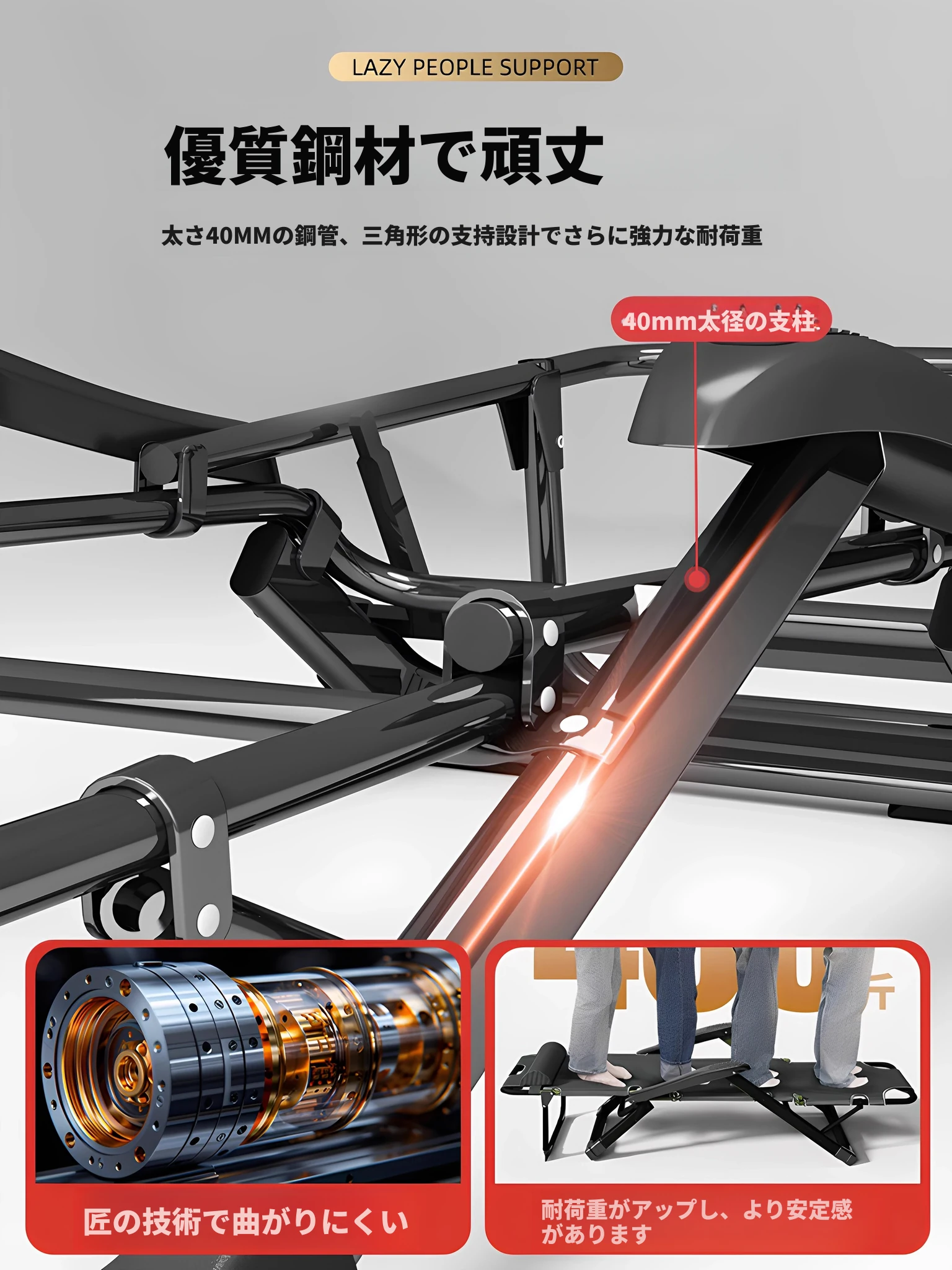 特幅66CM【特太方管】金剛ブラック(座っても寝ても自由)